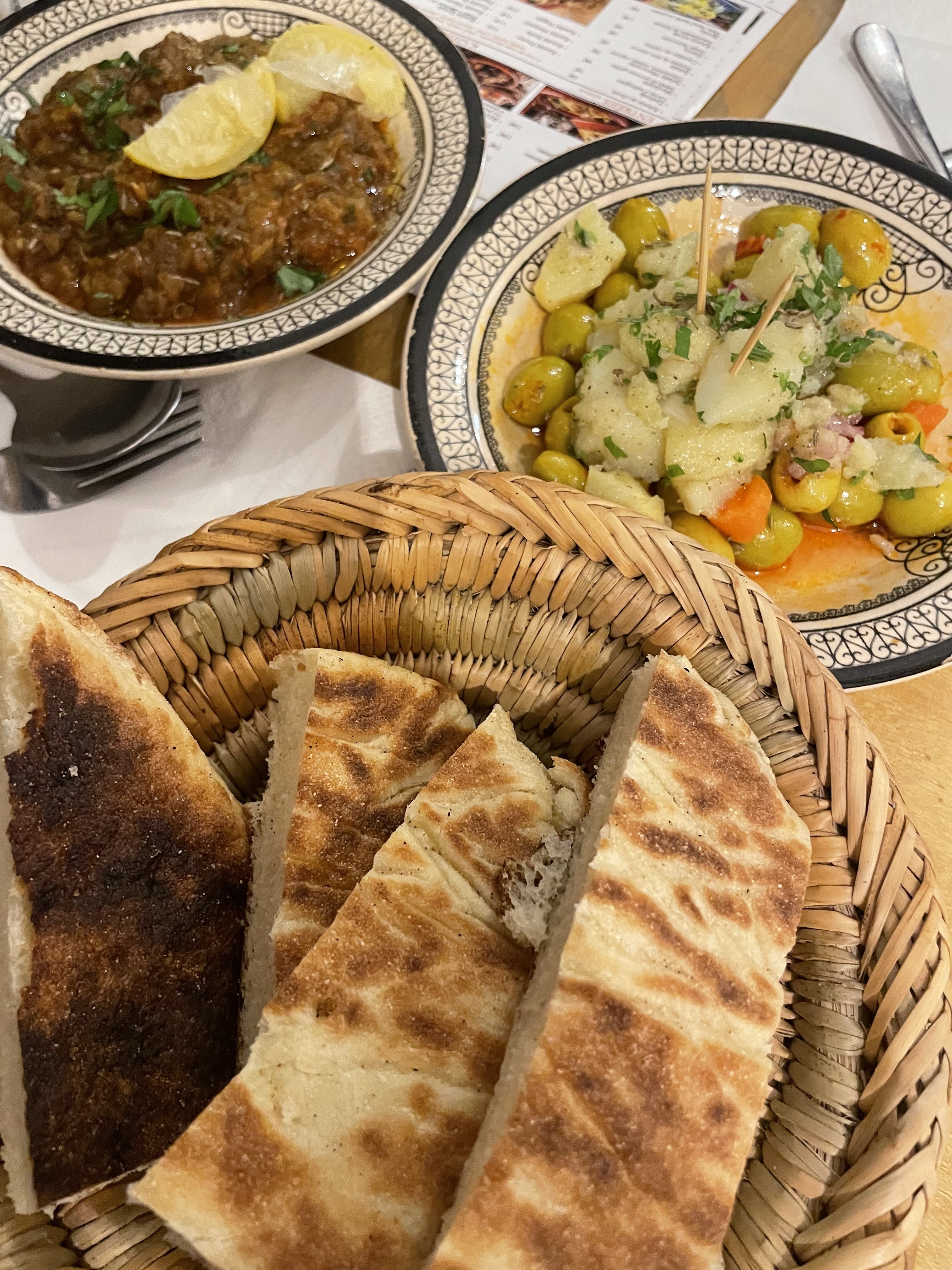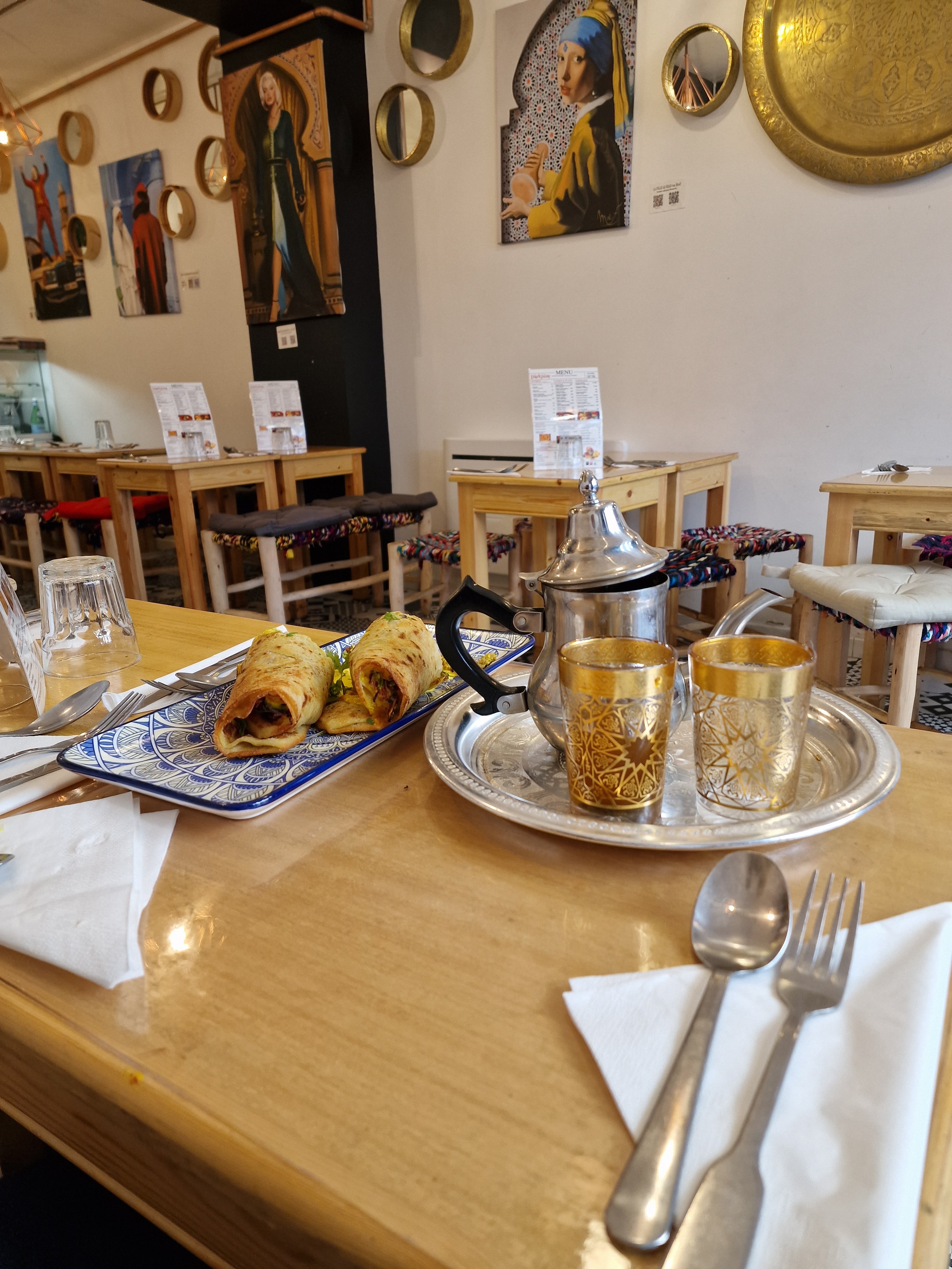 Nous sommes venu lundi soir , le resto est jolie les détails sont sympa , le serveur également , mais niveau repas .. il n’y avais ni hrera ni rfissa. Les brick étais vraiment pas bonne il on mis a l’intérieur de l’œuf pas cuit. Nous avons pris comme plat principal un tagine au poulet olive il y avais a peine de sauce le tagine visiblement étais trop cuit, et un couscous végétarien qui lui étais correct. Au vu des notes sur Google nous pensions vraiment que se serais délicieux dommage.