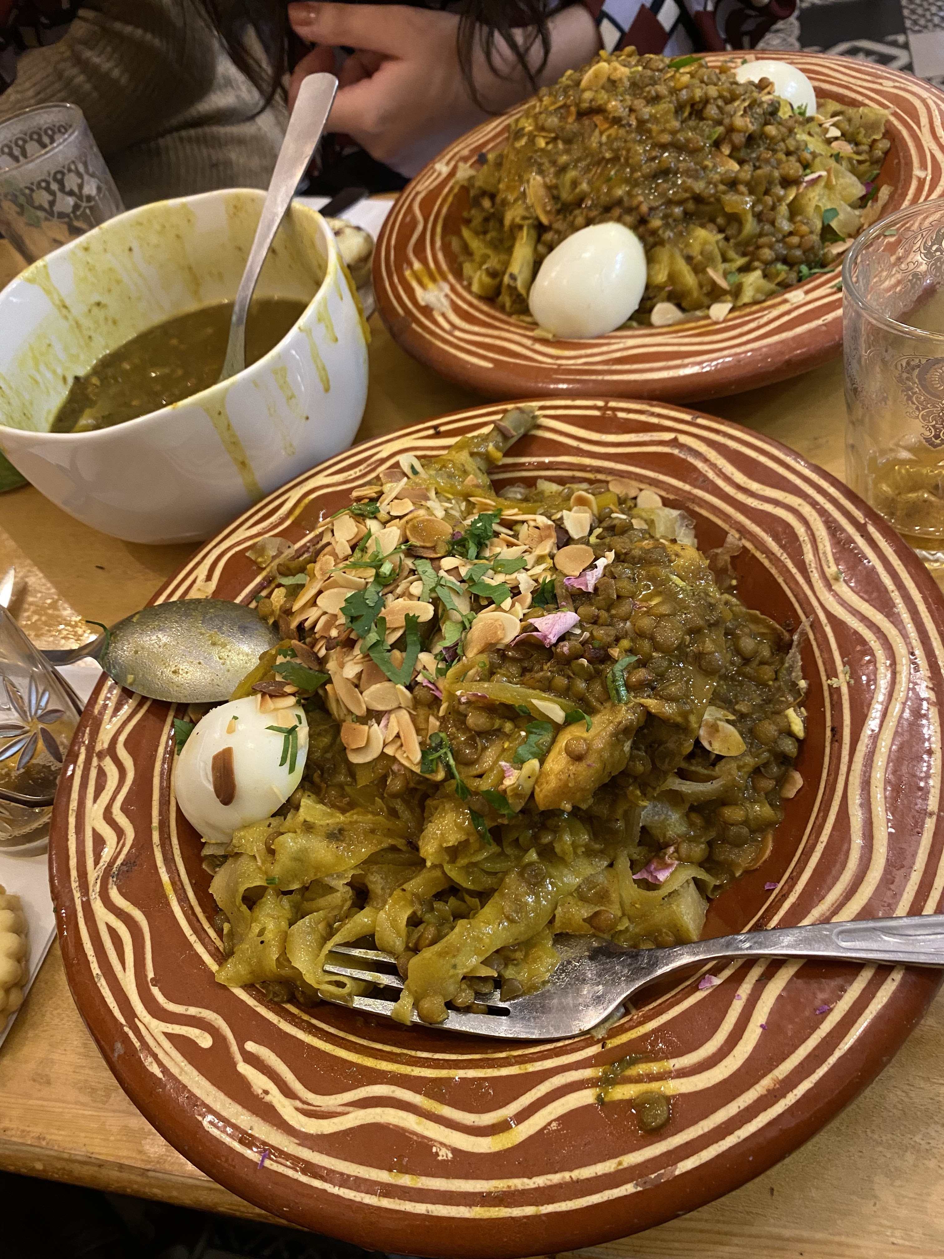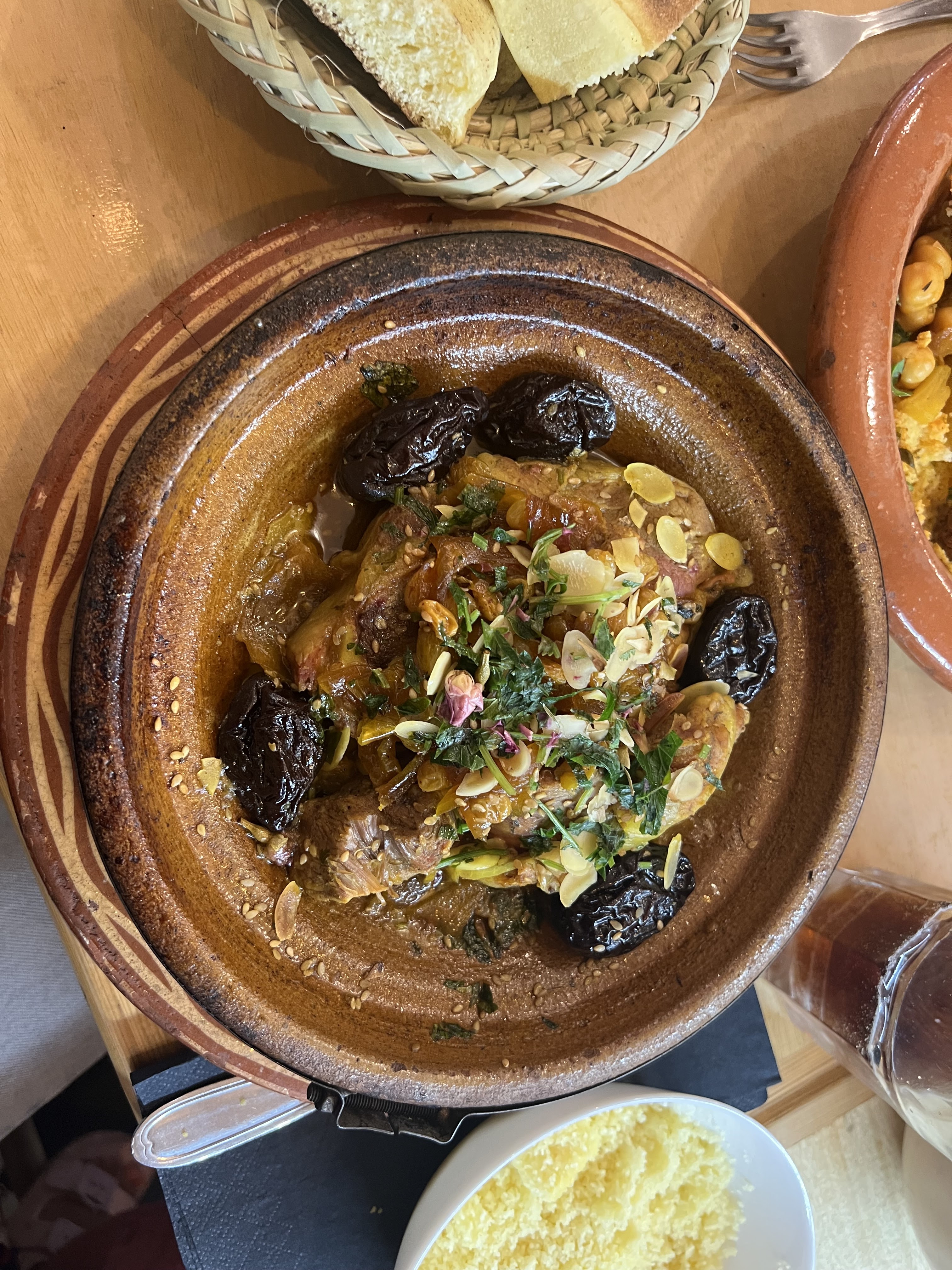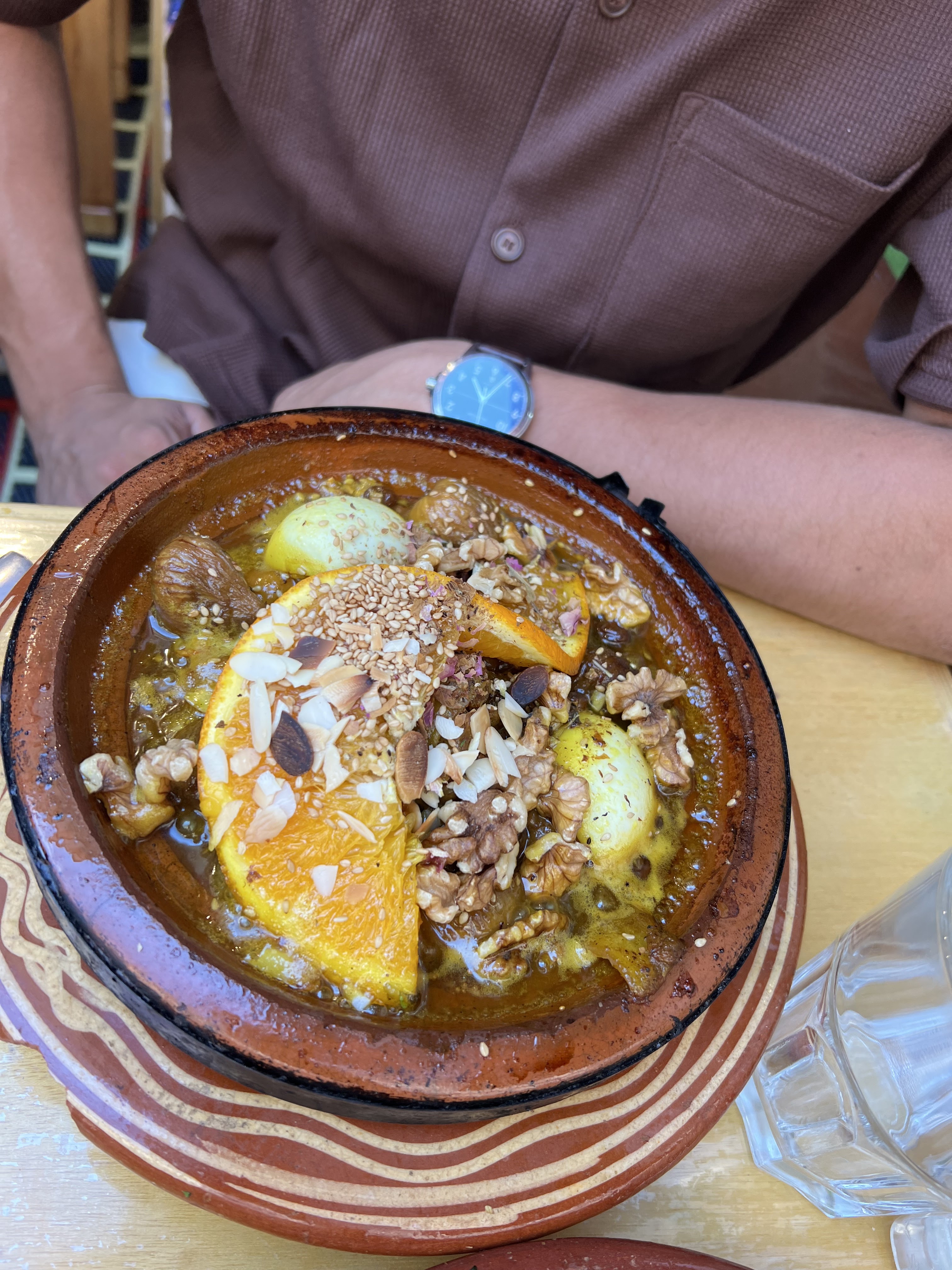 On voulait tester les plats incontournables de la maison, et donc une tanjia et la Mrouzia, Tanjia était bonne, le goût est là. Mais, la qualité de la viande n'est pas au rdv! Un morceau de bœuf sec, pas fondant! Pour la Mrouzia, très très très sucrée! (Je suis Marocaine, et sorry cela ne ressemble pas du tout à une Mrouzia). NE LA TESTEZ SURTOUT PAS. On a dû faire la file pour une bonne 20 mins, puis attendre presque une heure pour qu'on soit servis! Les serveurs font de leur mieux! Bref, c'est un resto HUGELY OVERRATED 🙃