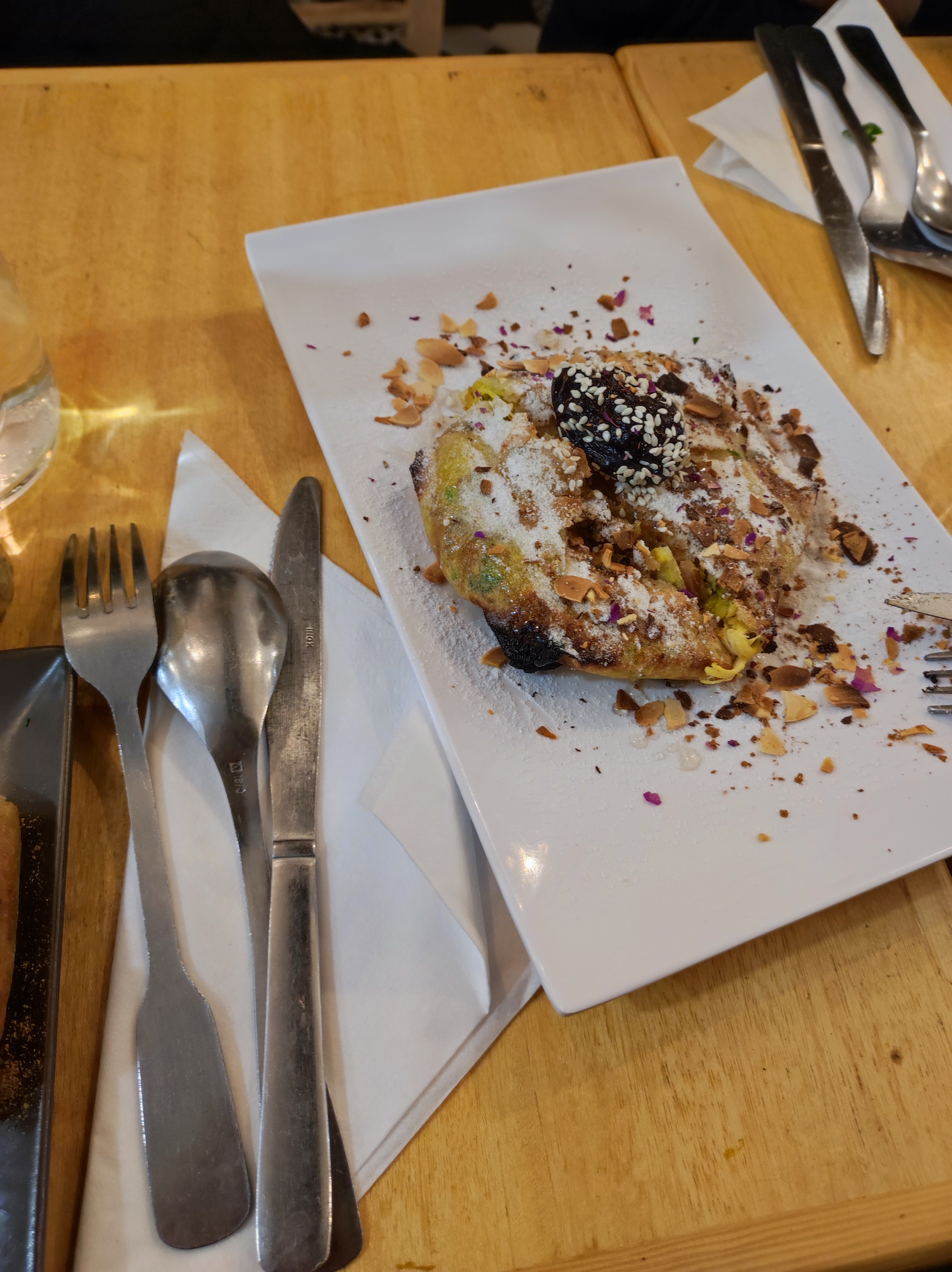 Délicieux ! Je suis sortie du restaurant avec la peau du ventre bien tendue ! Plats très généreux et avec beaucoup de goût et surtout agneau, veau et poulet excellent, pas du tout sec ! La crème brûlée au safran avait un goût de yaourt, j’ai beaucoup aimé mais ma copine pas vraiment mais sinon tout le reste est un sans faute ! Attention beaucoup plus de choix sur la carte sur place que sur le menu en ligne, les prix sont aussi légèrement plus élevés sur place (mais toujours un très bon rapport qualité/prix)