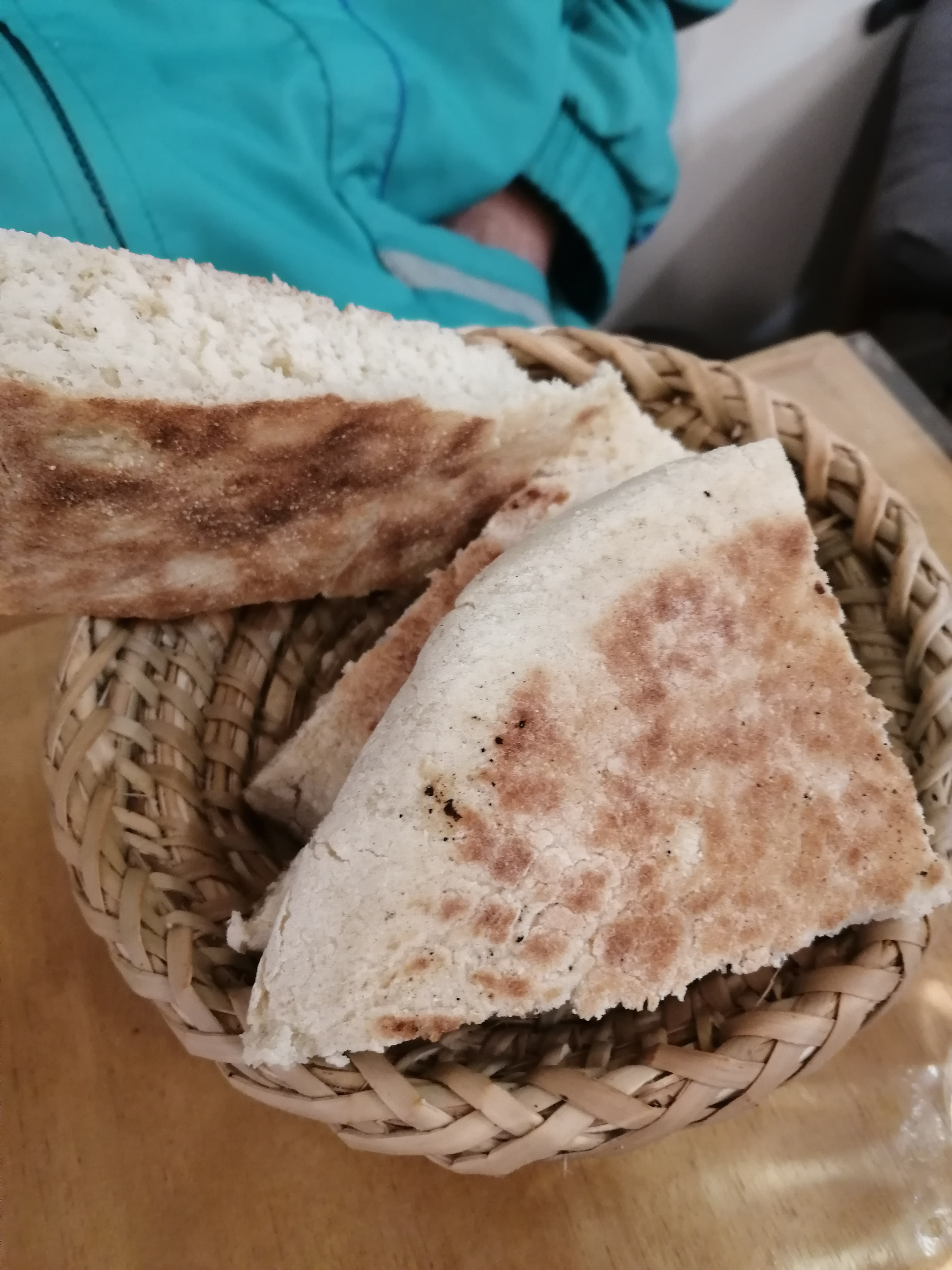 Pain rassis et froid, pastilla sèche de la veille, toute craquelé sans goût décevant