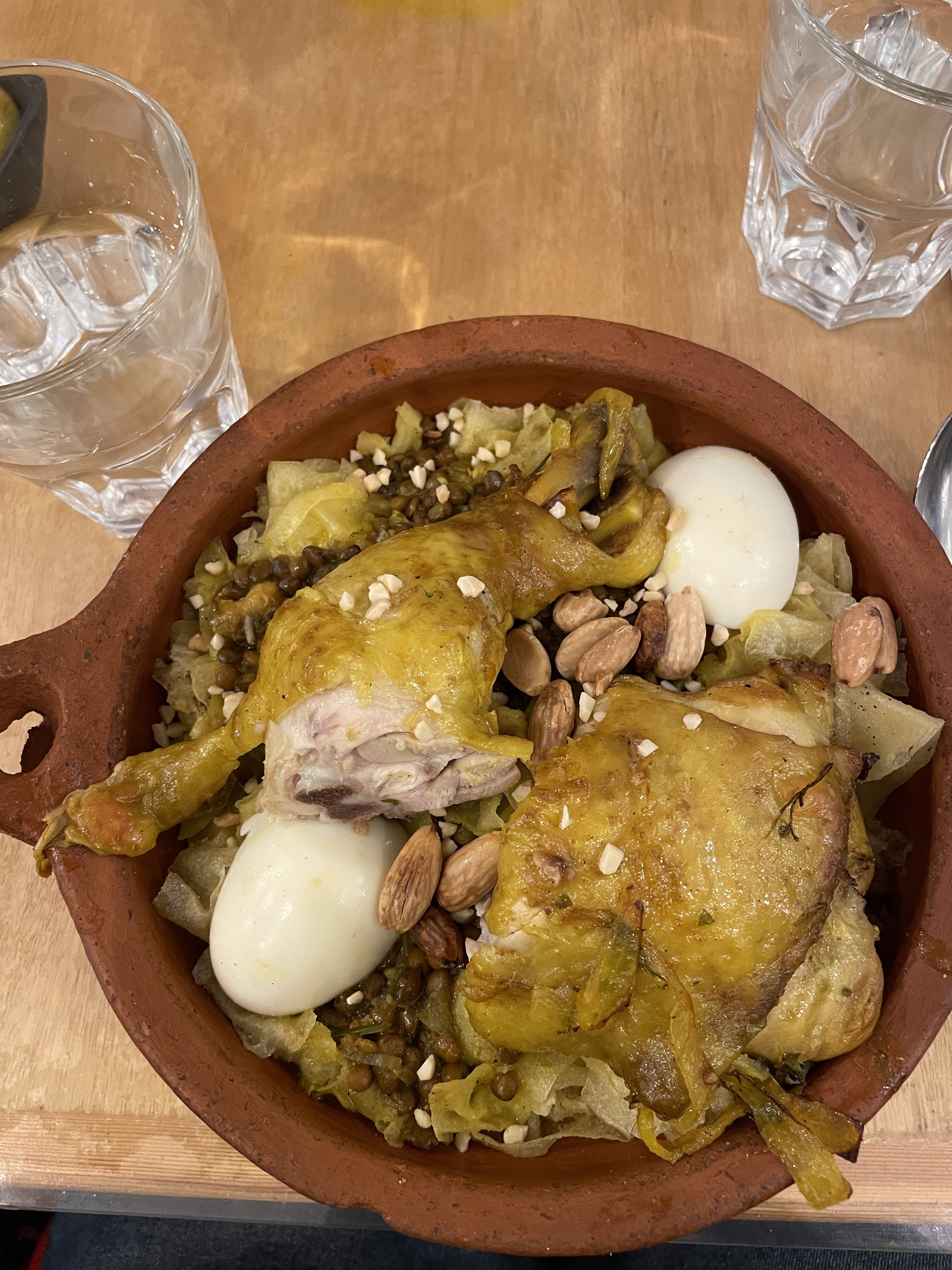 Leur rfissa est hyper bonne, la pastilla était sèche. Mon amie avait pris une tanjia elle n’a pas aimé. Mais la rfissa incroyable