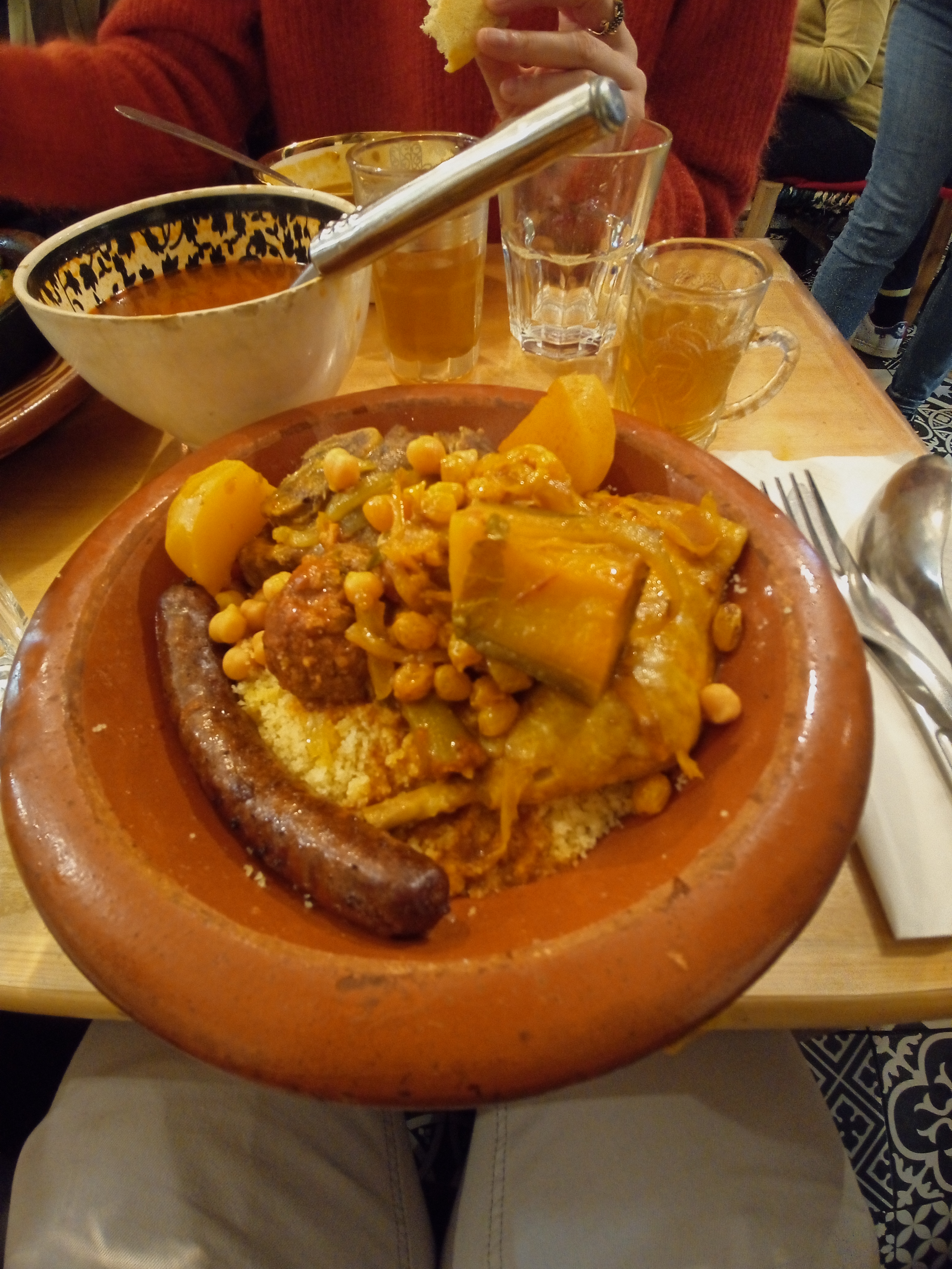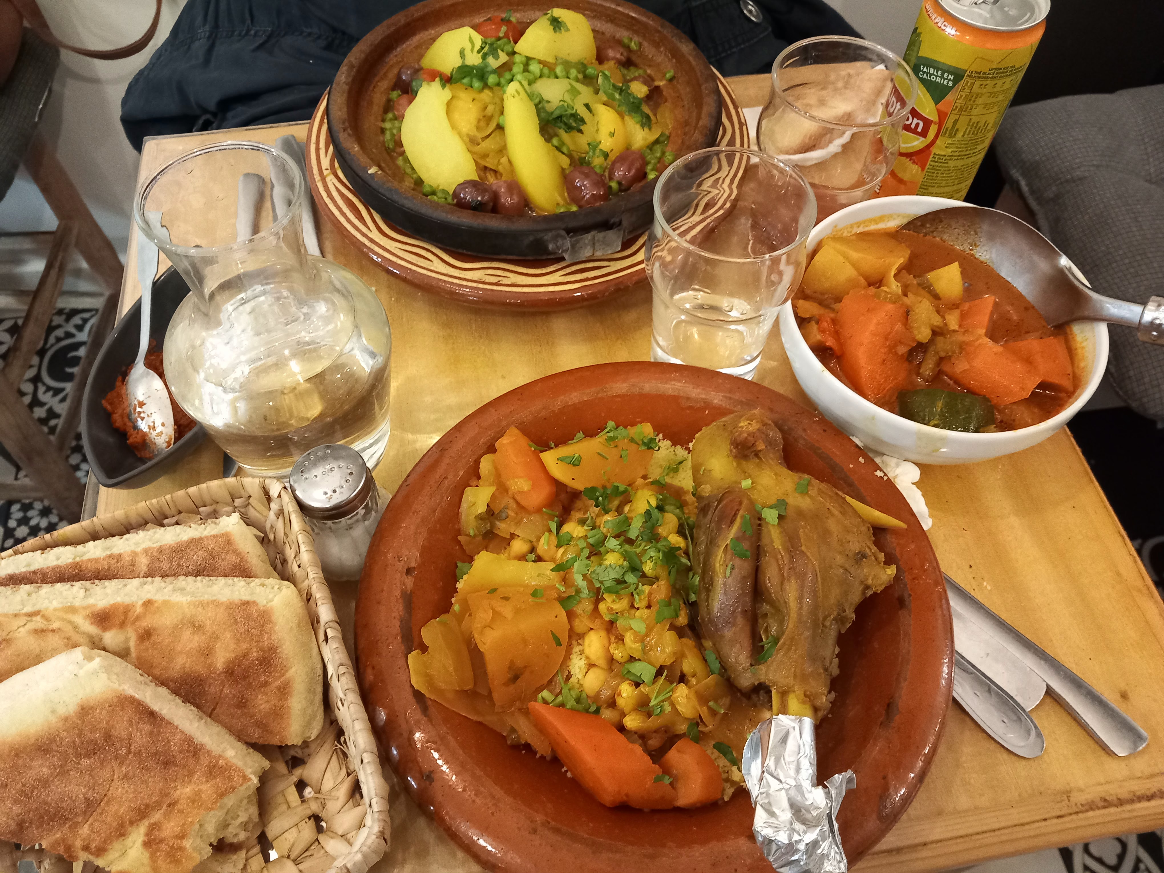 superbe soirée marocaine rue Daguerre après un séminaire à l'observatoire de Paris. tajine agneau amandes et pruneaux. délicieux et copieux.