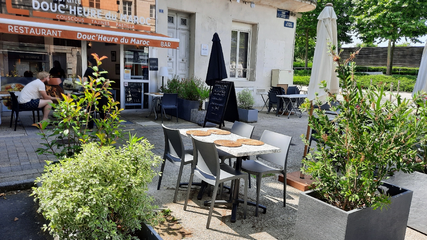 Nous sommes de Lyon, nous avons eu le plaisir de manger à Douc'Heure du Maroc. Tout était parfait ! Je tiens à remercier toute l'équipe pour cet accueil chaleureux. Les plats et les desserts était super bon et bien consistant. Prix plus que raisonnable. Nous reviendrons avec grand plaisir.