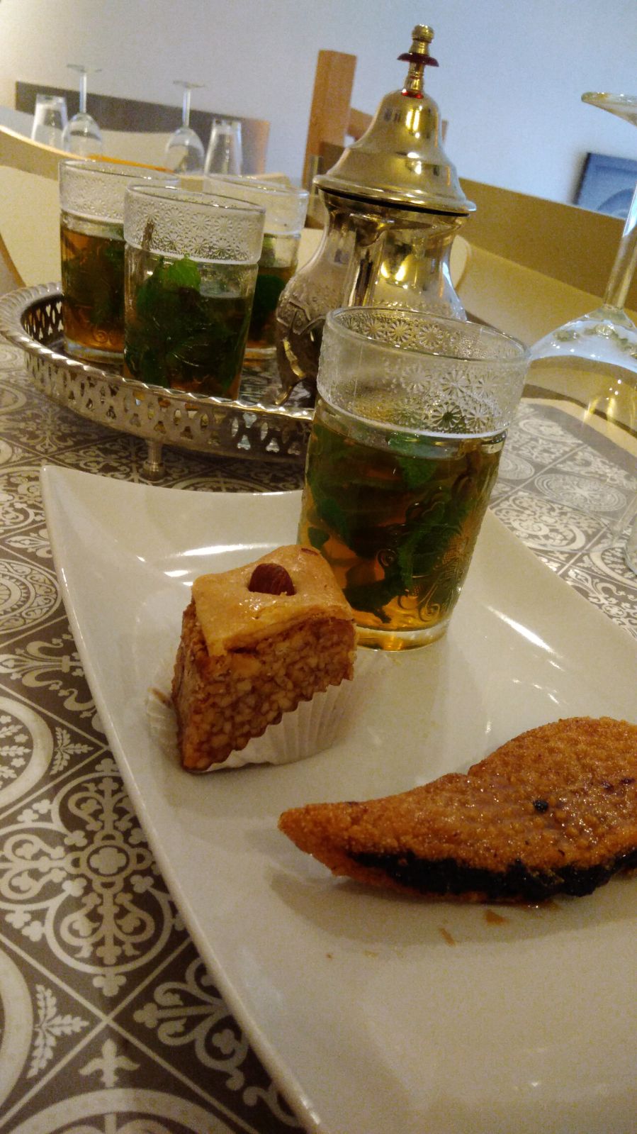 Très bon, la pastilla ne m'a pas déçu. Juste une remarque, le thé à la menthe n'était pas sucré, sûrement pour que chacun adapte lui même le sucre. Mais pour moi le thé à la menthe doit être sucré c'est la recette originale. Merci