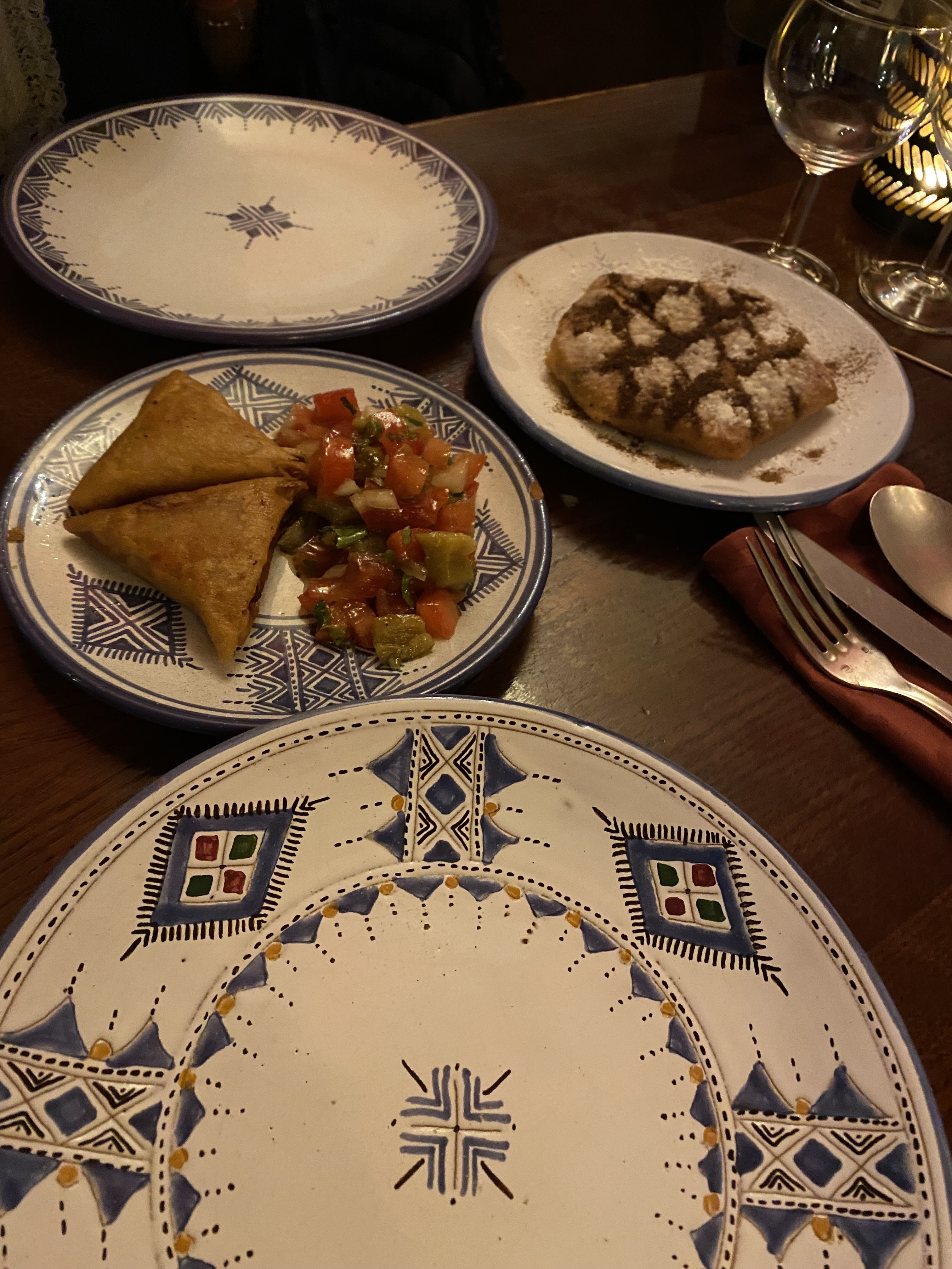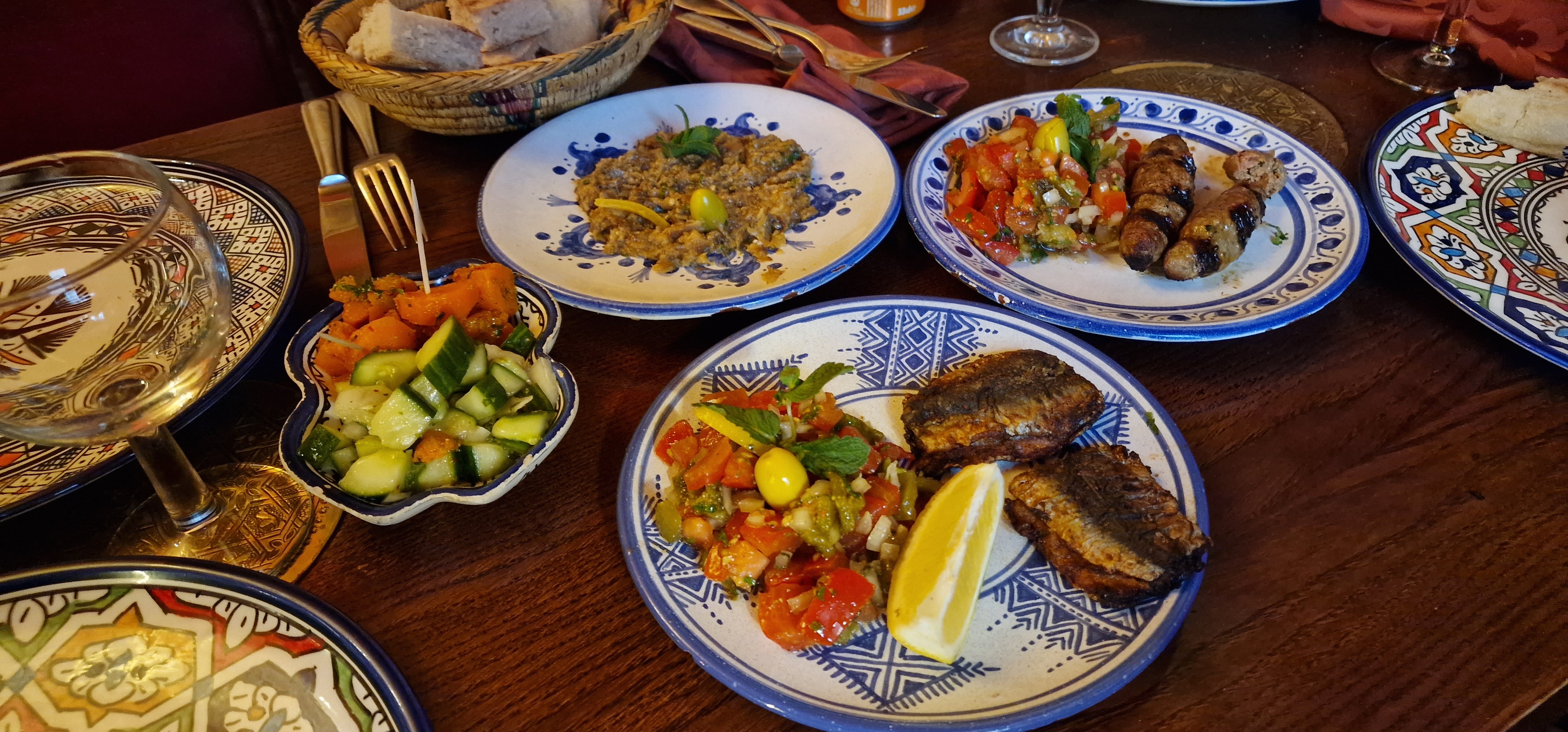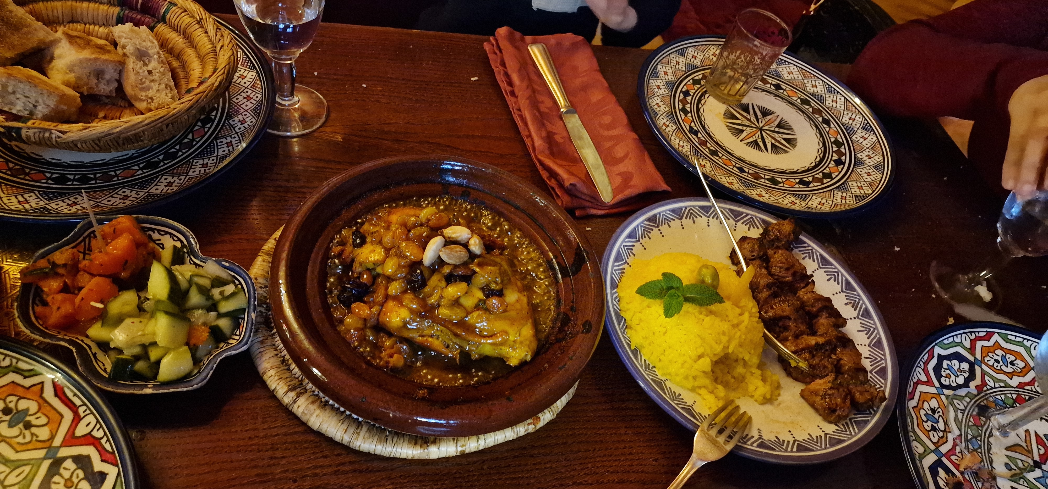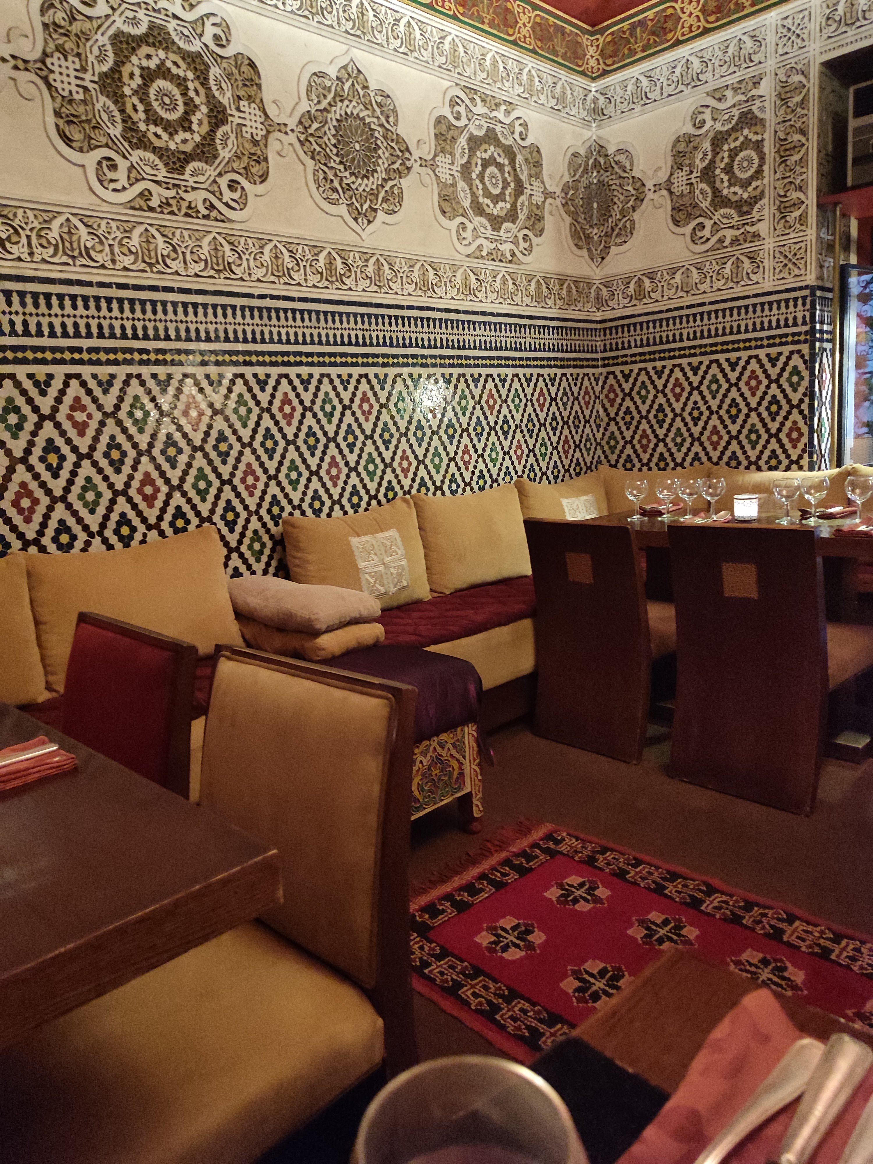 Pour un repas dépaysant, vous etes au bon endroit! On se sent au Maroc des le pas de la porte passé. La cuisine est bonne, la pastilla un peu sèche, les bricks, la salade marocaine et la harira sont très bonnes, les portions du tagine un peu light (manque de pomme de terre à mon goût de marocaine de Marrakech ou les tagines sont chargés en légumes). Le service est au point malgré le manque de patience de notre serveuse avec notre couple d'amis étrangers. Les prix sont un peu gonflés, surtout celui des pâtisseries marocaines: 10€ pour 4... (D'ou une étoile en moins)