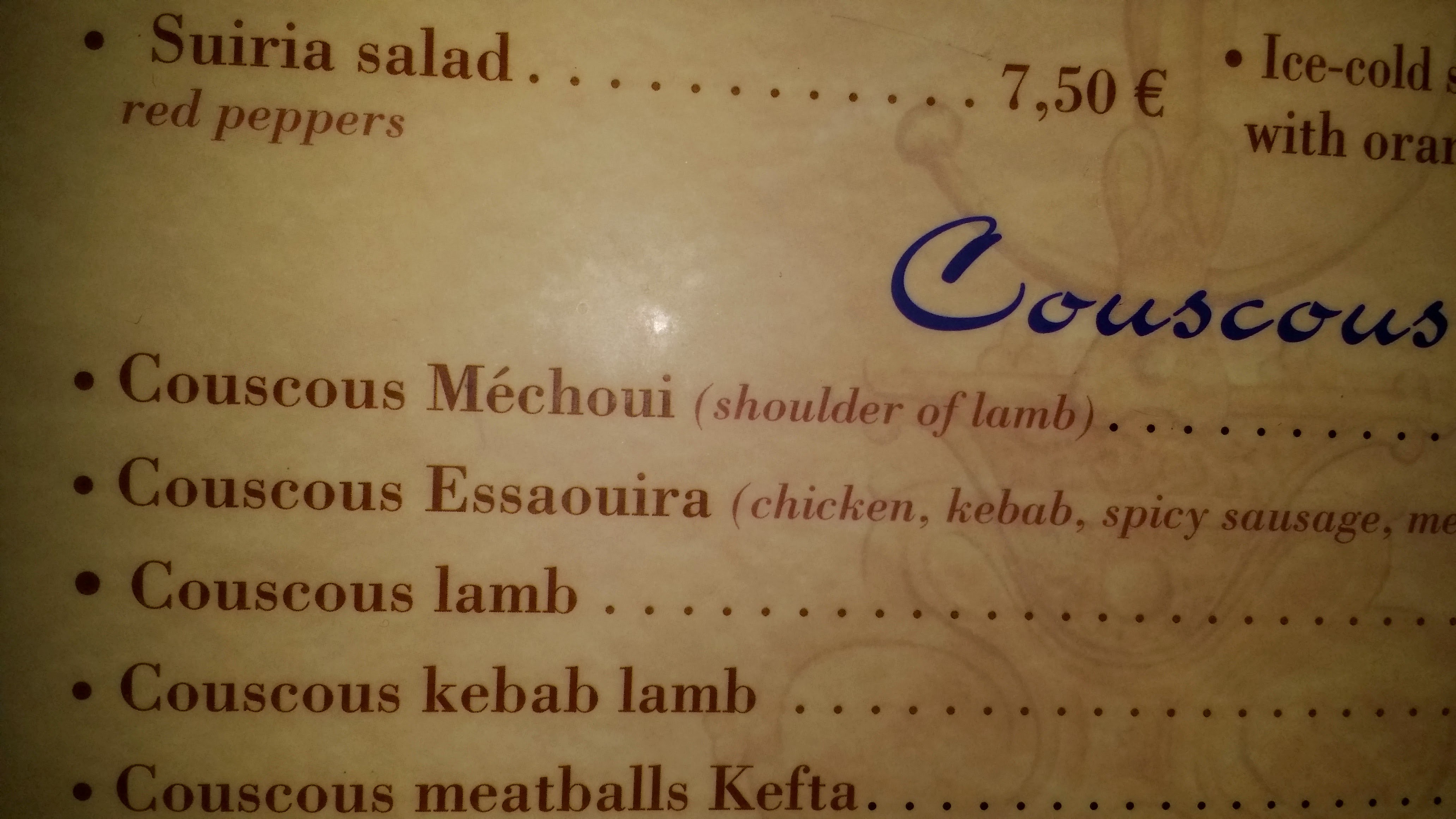 On voyage avec les couscous de chez Essaouira, meilleur restaurant Marocain de Paris, simple sans chichis. Du gout le personnel accueillant et des prix raisonnables. Je le recommande!!!