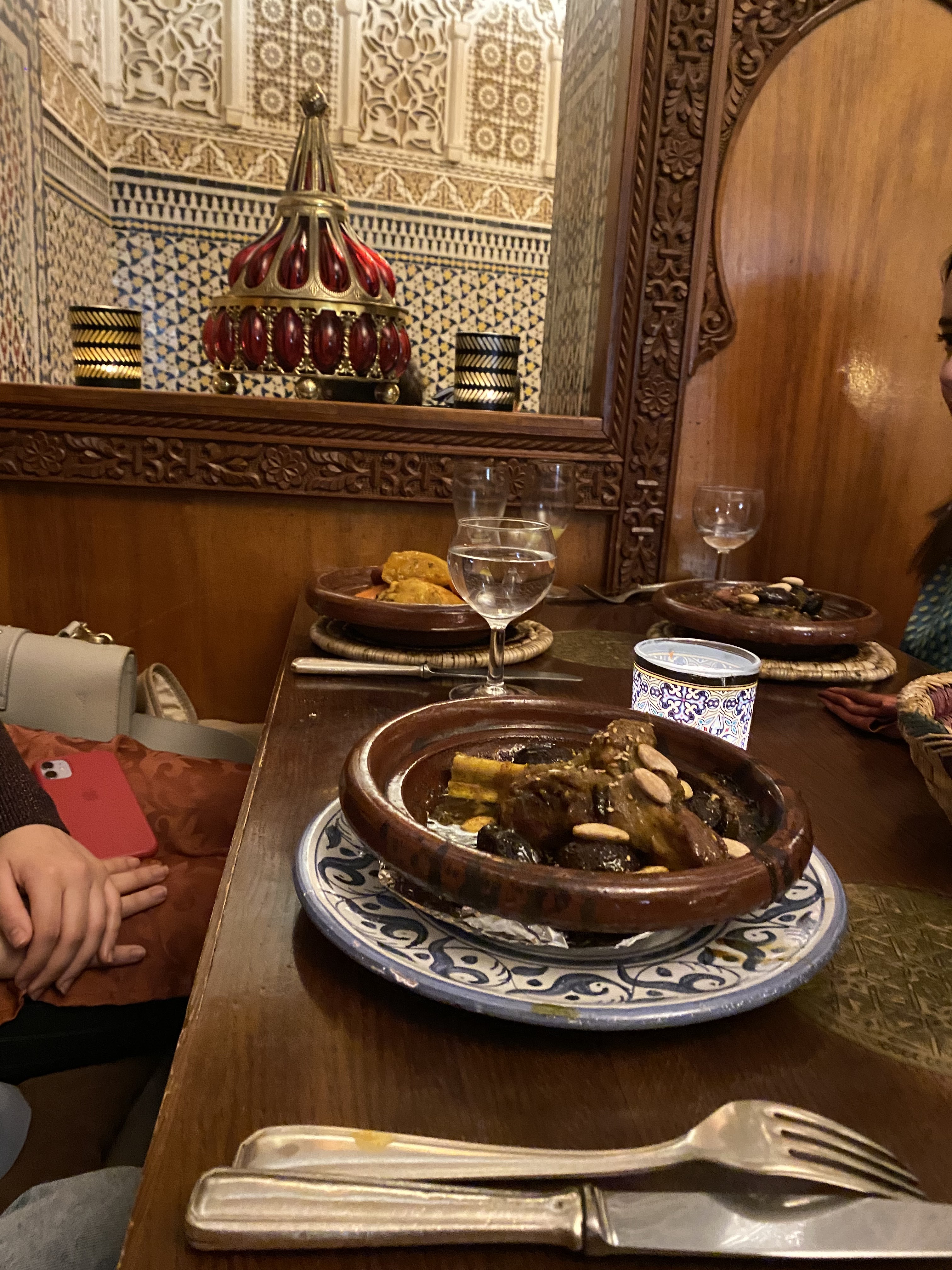 Je me suis régalée avec le tajine agneau & pruneaux. L’ambiance un peu tamisée est très agréable, avec une petite musique de fond. Bref super dîner, je recommande.