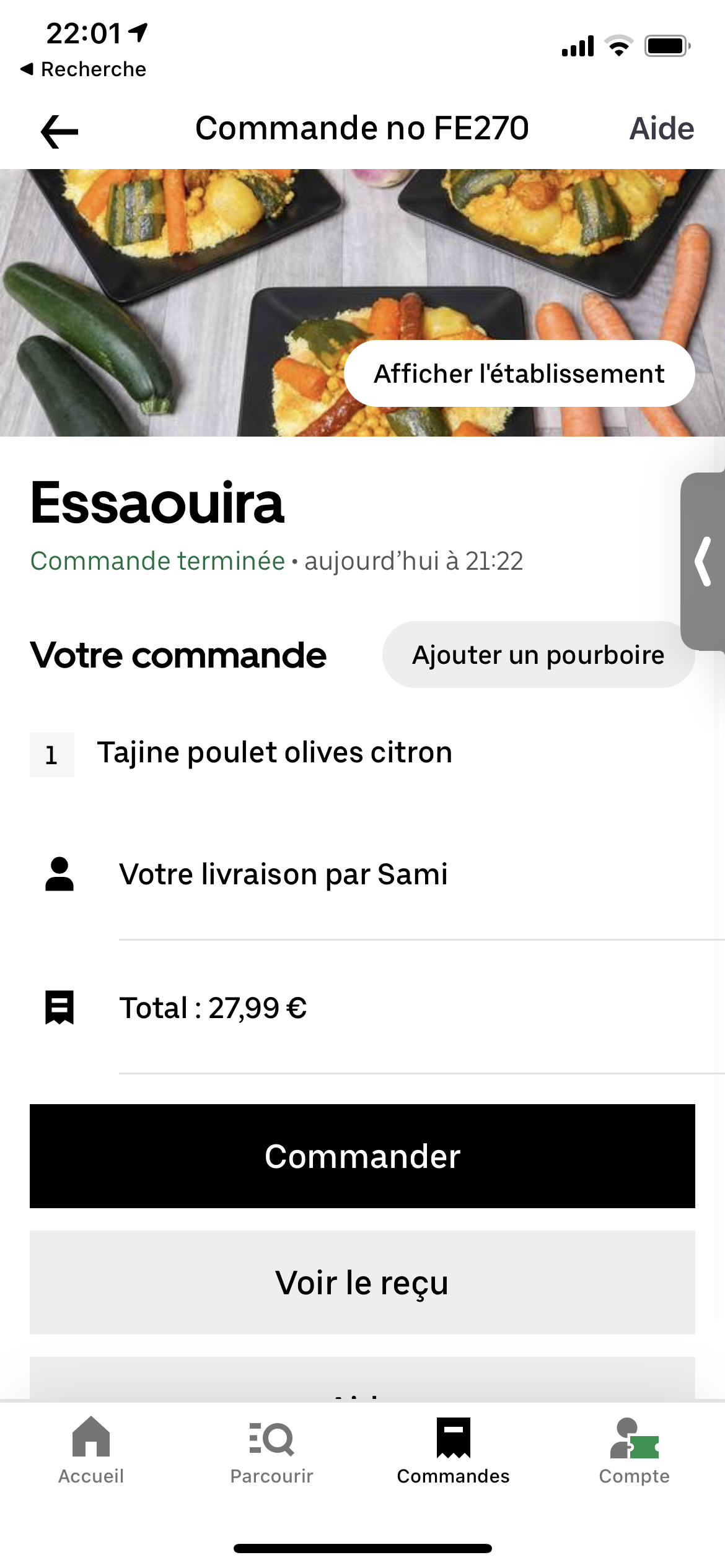 Honte à vous je viens de commander cette bouillie via Uber pour 27€ !! J’aurais honte à votre place ! Pas un couvert, pas de pain, pas de serviette et du poulet crue et pas Une olives ! Vous êtes malhonnêtes ! J’espère que mon avis sera lu et je déconseille votre restaurant