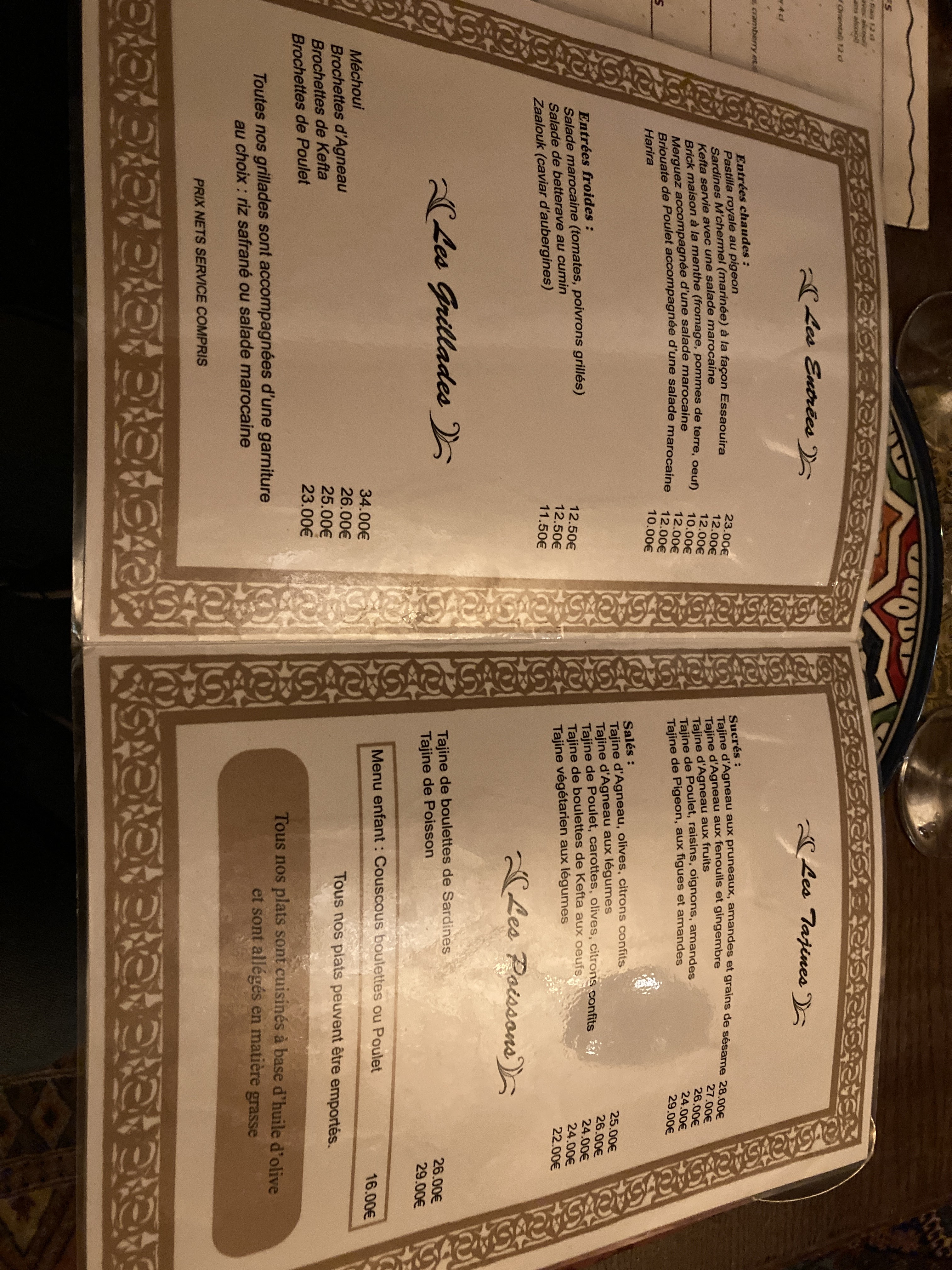 Nous avons passé un week-end sur Paris et avons réservé une table. Une envie de voyager au Maroc et nous n’avons pas été déçus. C’est excellent tajine délicieuse bien servi et prix raisonnable… merci pour ce bon moment