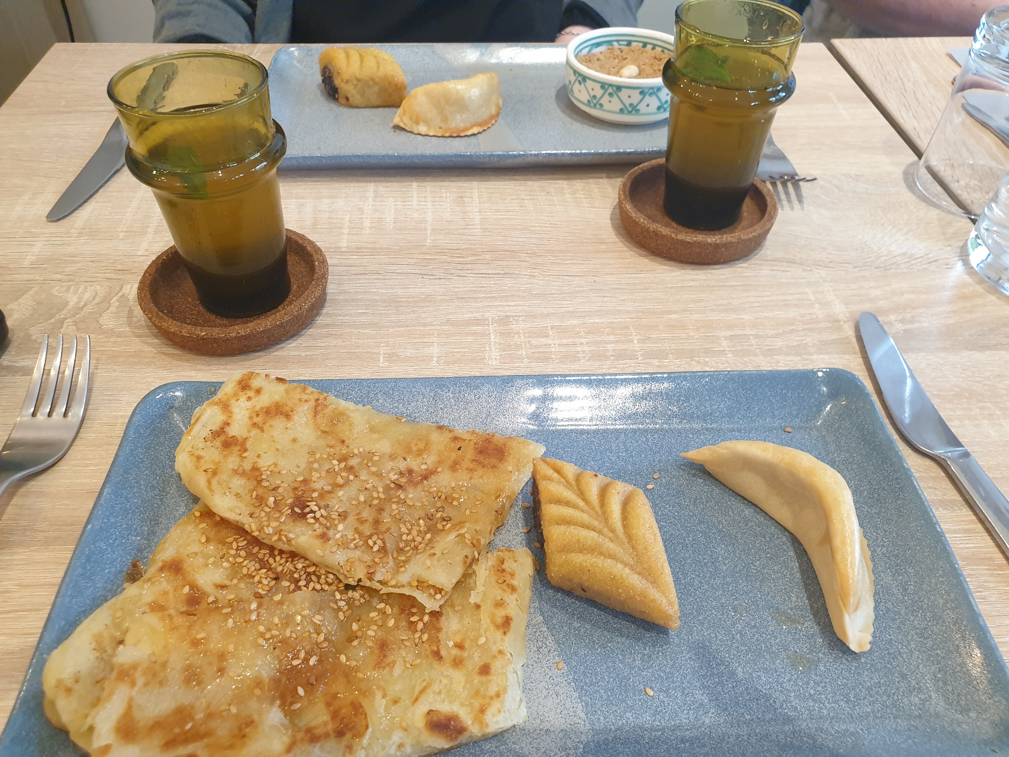 Restaurant correct, assez bon, ambiance pas très chaleureuse, on dirait plus un resto parisien que marocain malgré la déco et la musique mais c'était pas désagréable non plus. Cadre un peu léger et froid, pas de tapis, tables riquiquis, déco kitch... Nous avons goûté le brunch matinal : bonne soupe, bon thé, mais pas les meilleurs msemmens que j'ai goûtés, et oeufs à viande séchée tout secs (collés au fond du plat). Prix très élevé en revanche 60€ pour deux personnes. Prix d'un repas complet pour un p'tit dej....ça fait cher. Service aimable et discret, mais pas aussi chaleureux qu'au Maroc ! À tester, si vous avez envie d'un bon p'tit dej marocain, mais c'est pas l'idéal.