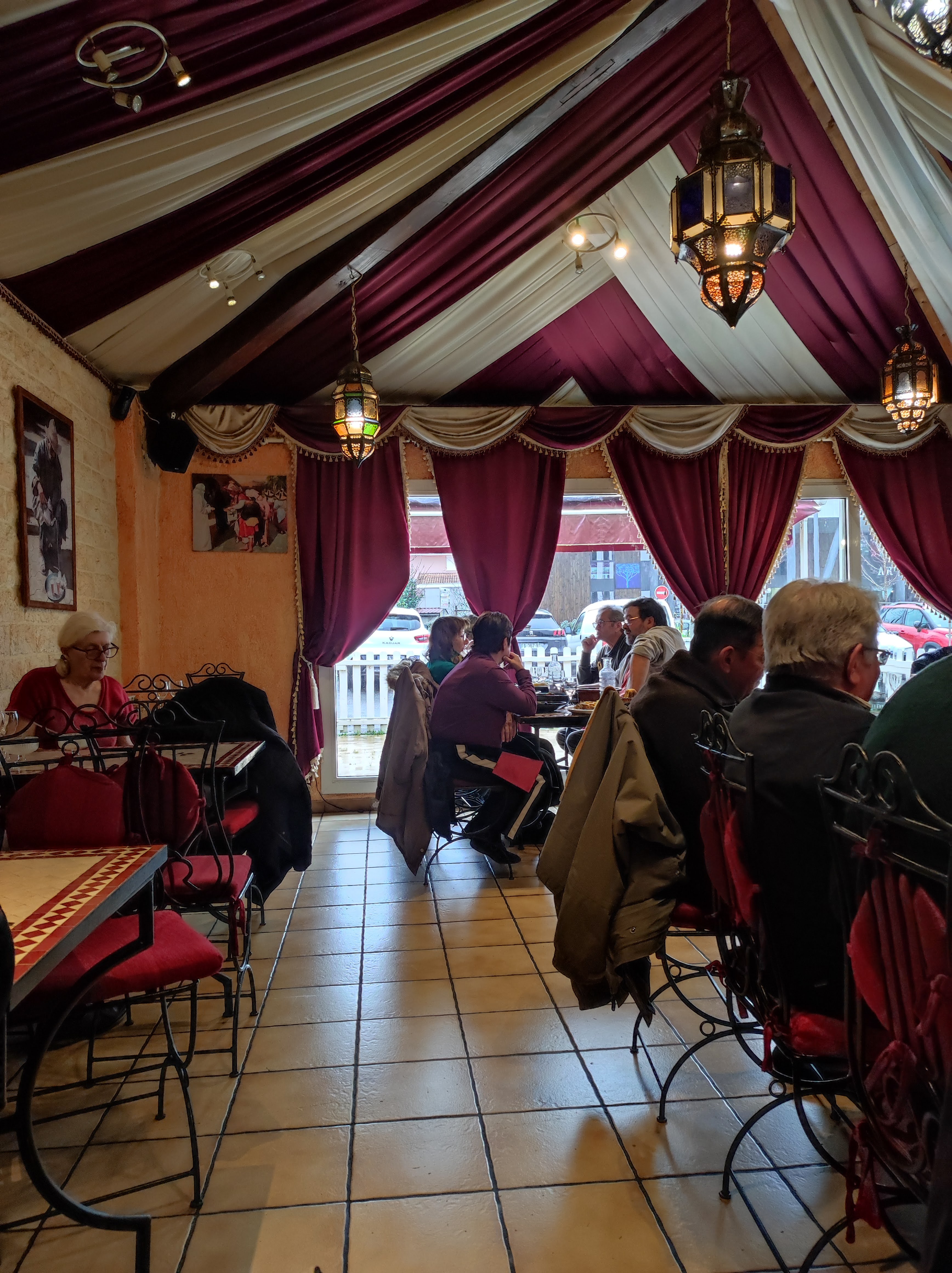 Merci a l'argana pour le repas d'hier soir. Nous avons été diner a deux pour essayer ce restaurant sur conseil d'une amie. Les plats sont vraiment copieux. Le viande me semble bonne contrairement a ce que j'ai pu lire de deux ou trois commentaires. La semoule me semble plutôt moelleuse et et légèrement parfumé. Le thé est très bon aussi, avec de la vraie menthe. A deux, avec 2 plat(gros) plats, deux boissons soft, le demi litre de thé et une assiette de pâtisseries marocaines on en a eu moins de 50€. Je pense que ça vaut le coût. Je suis bien content d'être venu et je reviendrai. Belle journée a vous