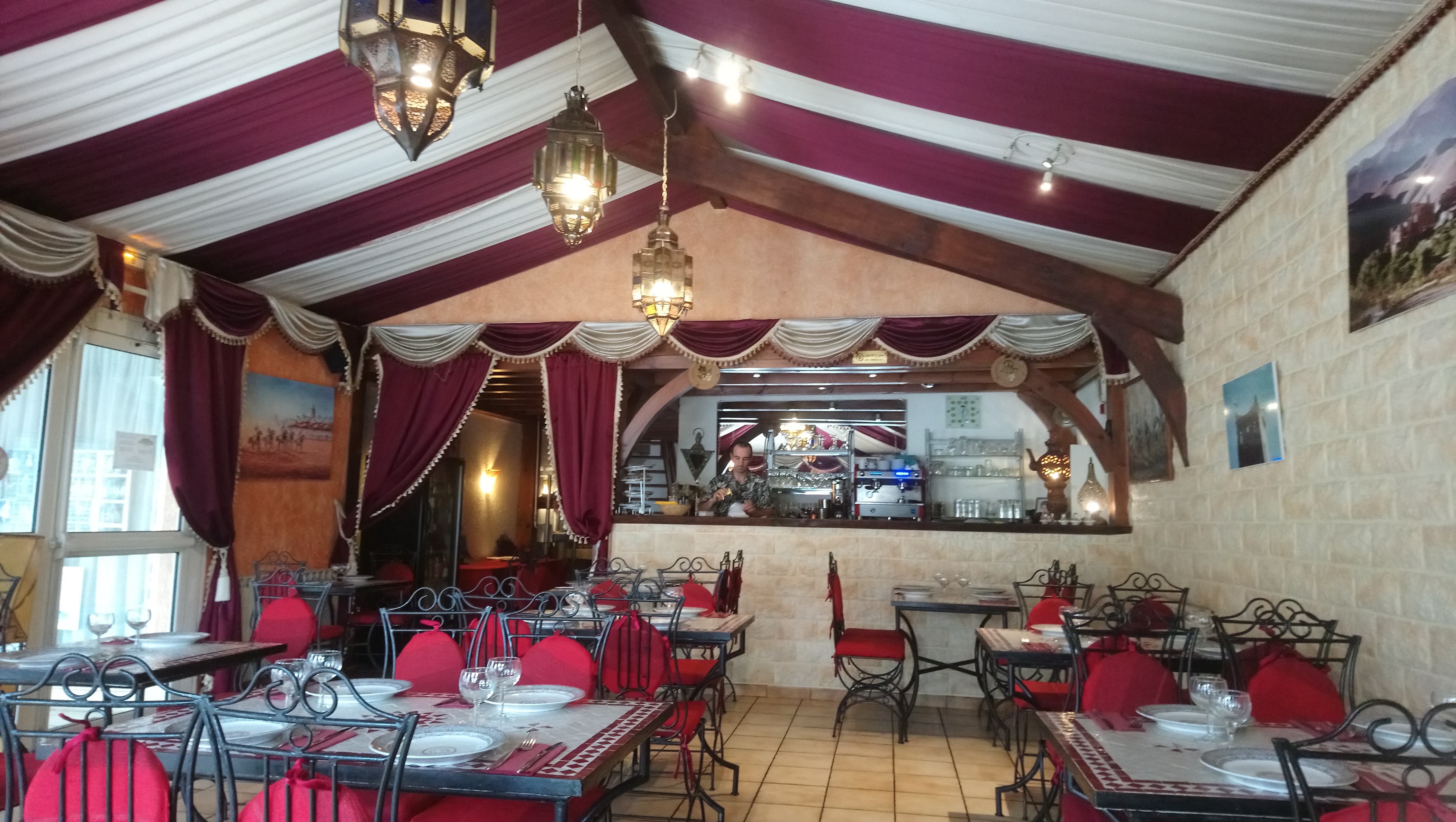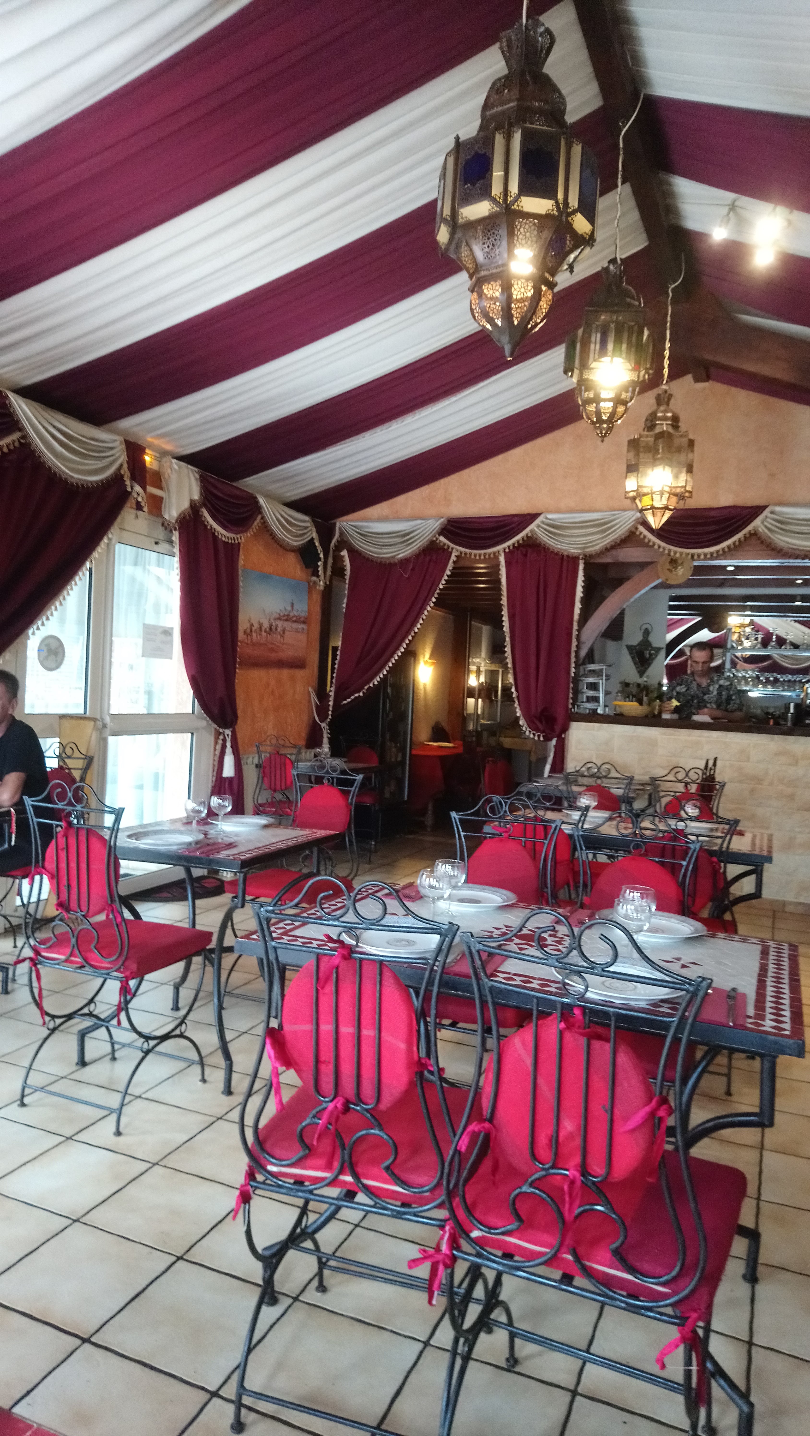Très belle déco marocaine. Plats excellents et copieux, un délice. Le sourire du patron en plus et ce serait 5 étoiles . A essayer et à conseiller.