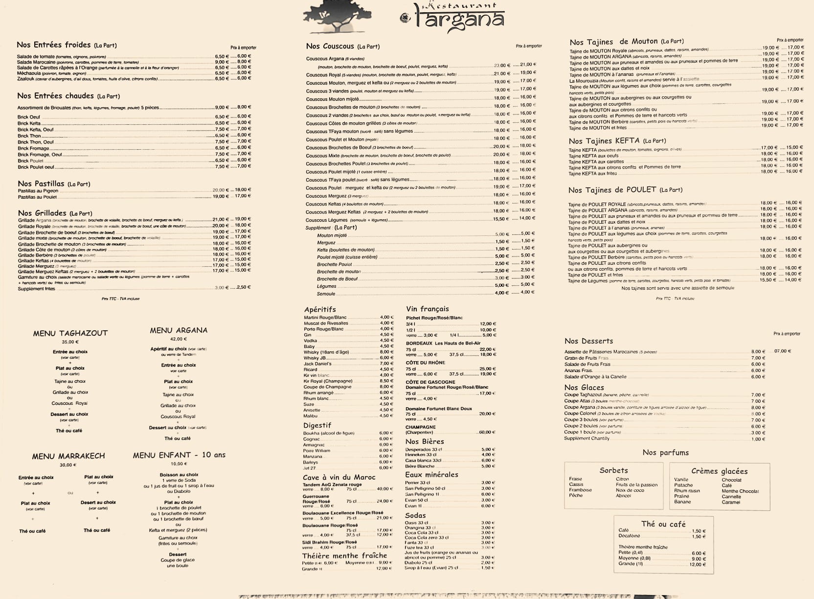 Nous avons testé le restaurant nommé L'ARGANA le jour de mon anniversaire. Très déçevant !! La cuisine n'a rien de marocaine. Nous avions pris ce jour un tajine aux pruneaux amandes et pommes de terre (absentes dans l'assiette) et un tajine de mouton, abricots amandes etc... . cuisine très grasse, sans saveur, et la viande de moyenne qualité, le tout servi avec de la semoule à peine travaillée ..... Le monsieur qui est à l'accueil n'est pas du tout agréable ni avenant. Le décor n'est pas terrible. Bref, une très mauvaise adresse. A ne pas recommander.