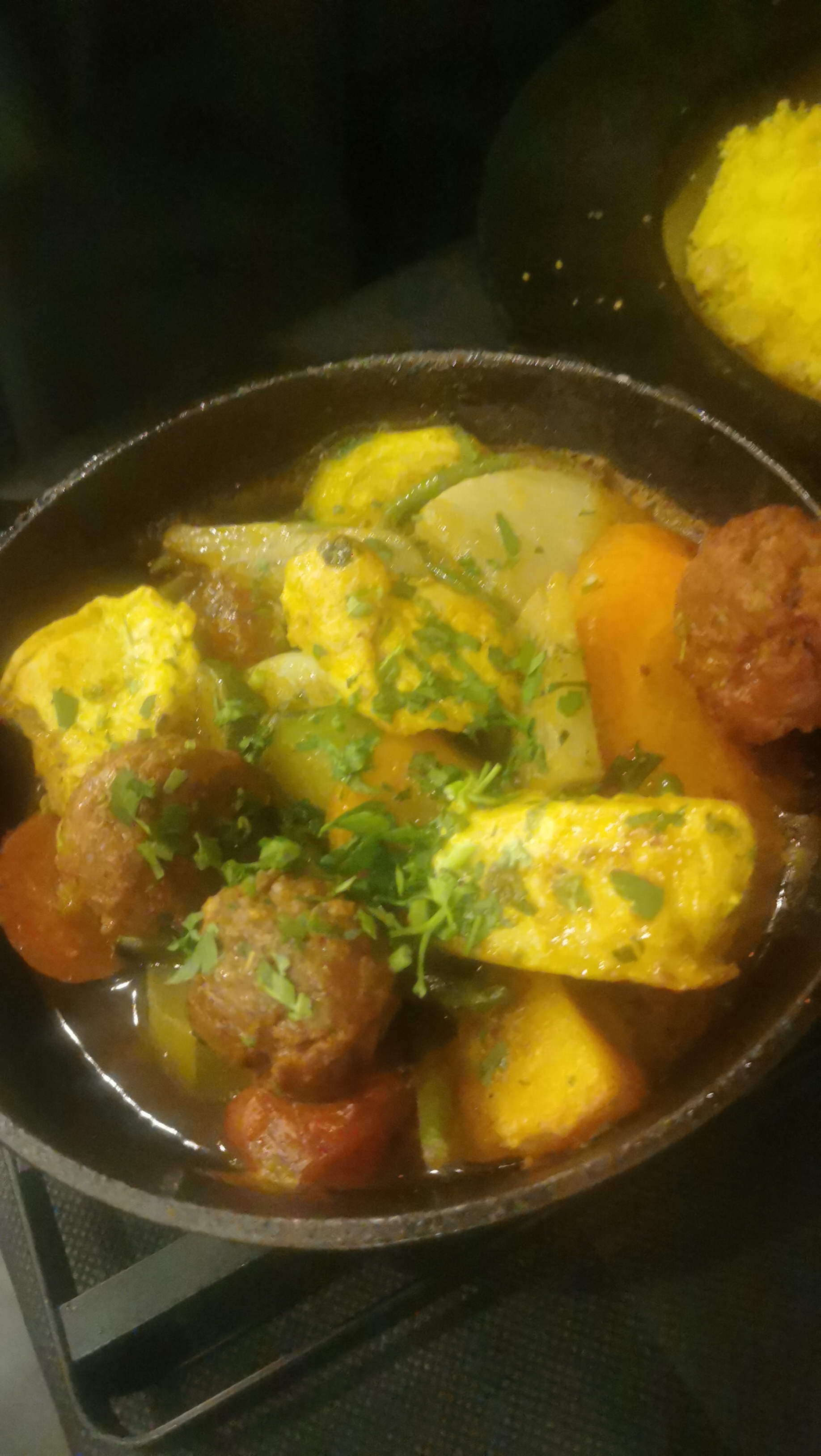 Succulent couscous, nous l avons pris à emporter, le tout prêt dans couscousiere, bouillon en plus ainsi que semoule on s'est régalé, plus qu à poser le tout sur la table😉