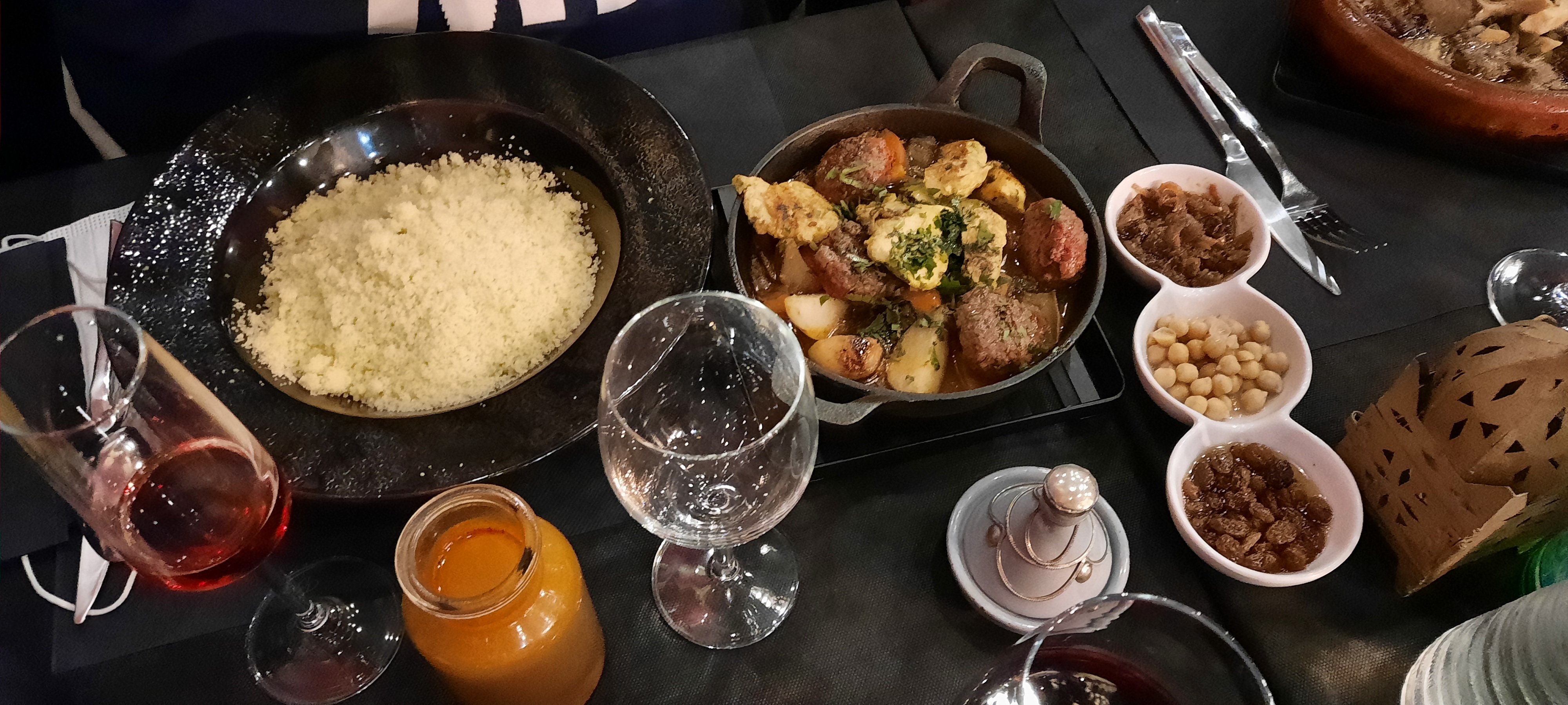 Nous avons passé un très bon moment avec vous ce soir. L’accueil et le service était très bien. Les plats excellents, cela faisait bien longtemps que je n’avais pas mangé un si bon couscous. Nous avions pris le royal et le 2 viandes 😋Les assiettes étaient copieuses, le thé gourmand à la hauteur de mes attentes. Nous reviendrons vous voir avec grand plaisir 🤩!