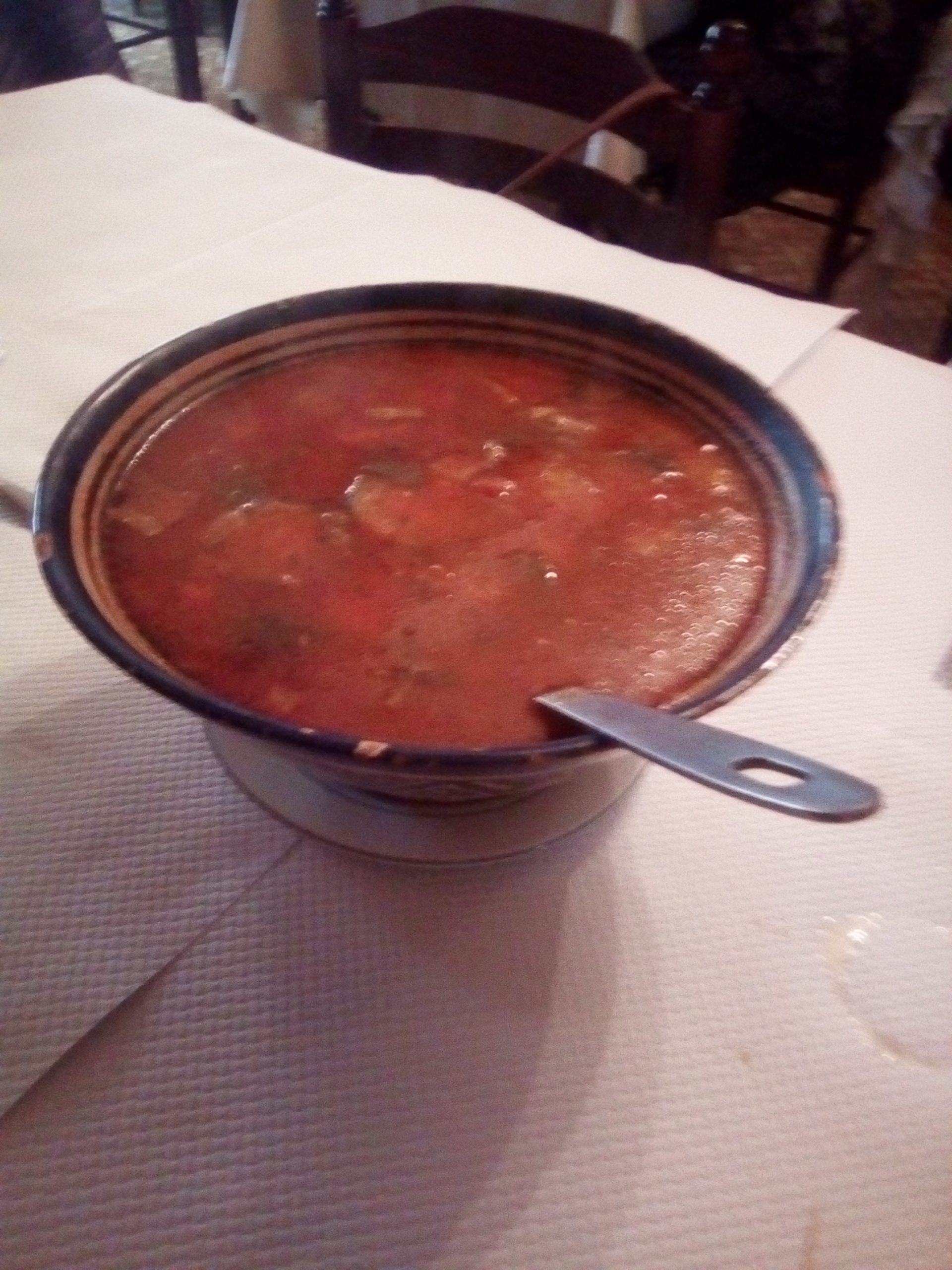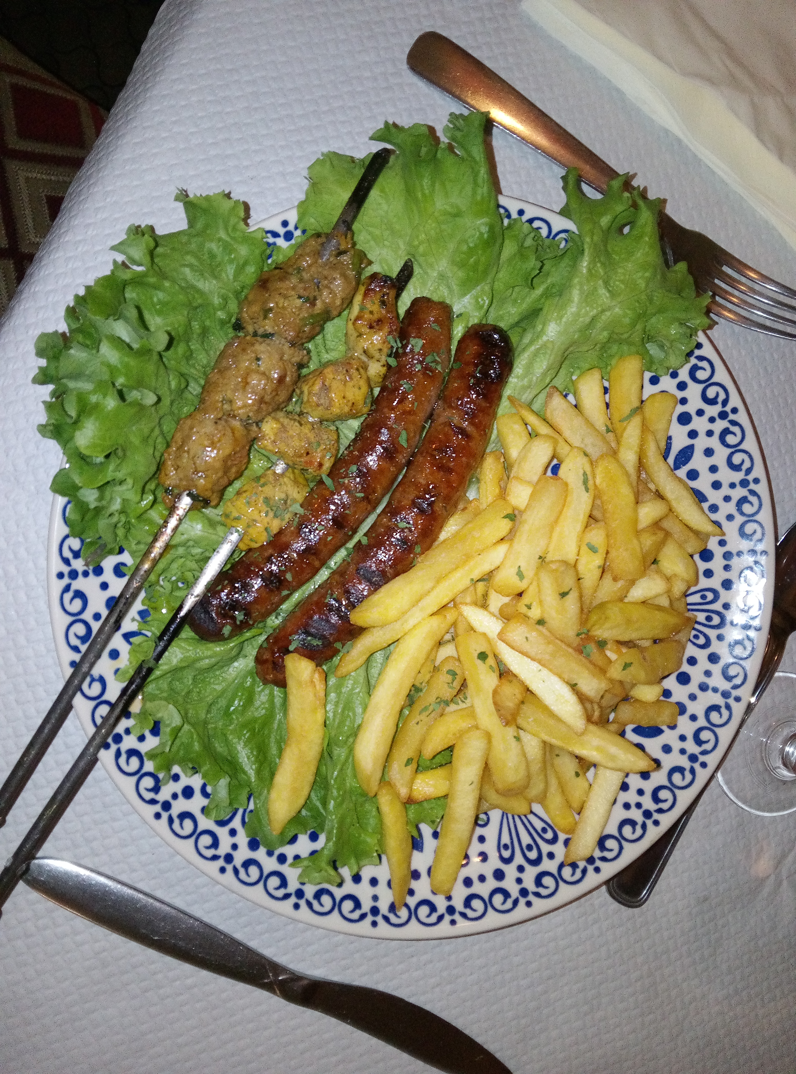 Bon repas, néanmoins notre enfant et moi même avons eu le temps de finir notre repas que mon mari n'était pas servi... pourtant merguez frites surgelées ce n'etait pas le plus long à préparer. Le serveur l'a oublié et ne s'est pas excusé ni de remise en caisse. Pas très commerçant mais nous n'avons rien dit. Le 2eme jeune serveur était sympathique. La soupe, la pastilla et la chakchouka très bonnes.