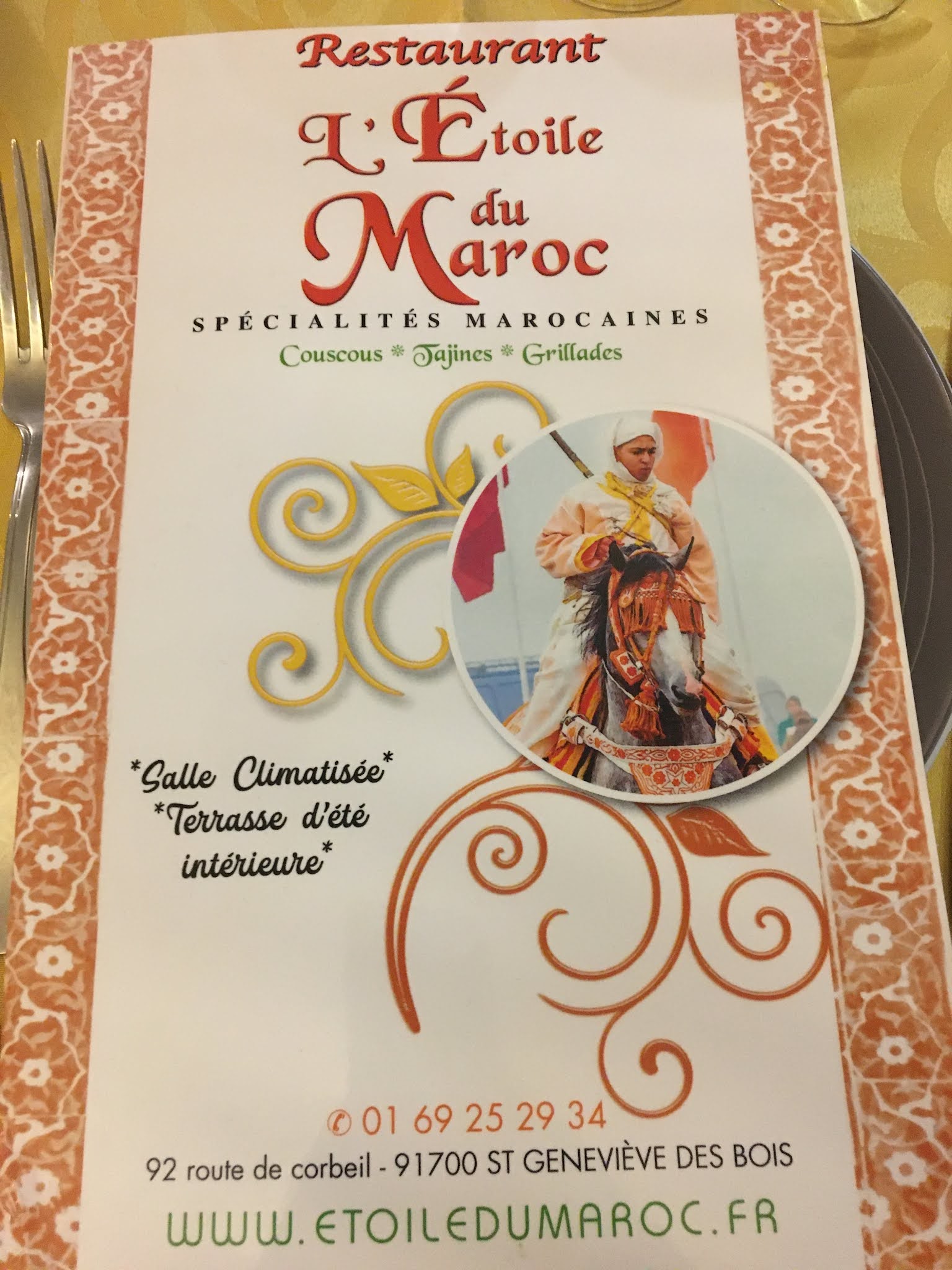 Super restaurant de gastronomie marocaine, j'ai adoré l'accueil, l'ambiance, le service rien à dire. Juste que le chekchouka n'était pas assez cuit et qu'il n'était pas servi avec du bon pain maroco. Après franchement, l'équipe est super sympa et au niveau quantité ils sont vraiment généreux,ont ressort avec le ventre bien plein. Merci beaucoup à l'étoile du maroc. 👍👍👍👍