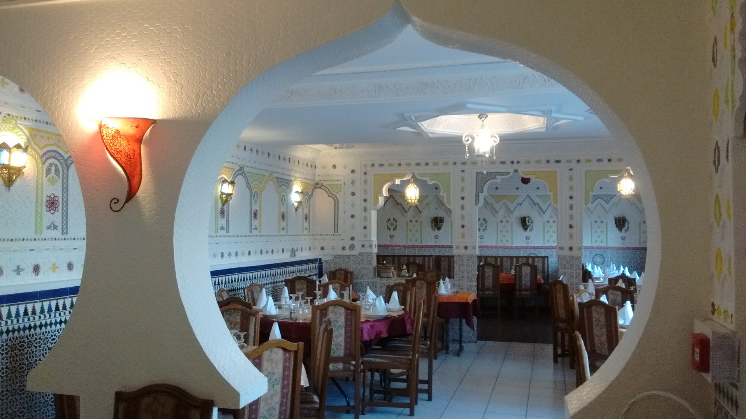 Après de nombreux passages devant ce restaurant par la route j'y suis finalement rentré pour la première fois avant-hier soir même. Le restaurant est très bien situé étant donc près de l'axe routier principal de la ville. Il est facile de s'y garer soit sur les quelques places situé devant l'établissement ou alors dans les environs. La décoration intérieur est très belle et permet de s'immerger dans une atmosphère de détente. La carte propose des plats variés (divers couscous et tajines notamment) à des prix abordables. Pour ma part j'ai alors commandé un couscous boulettes merguez en plats principal et en dessert des pâtisseries marocaines avant de finaliser ce repas avec un thé à la menthe marocain. Le coucous était tout simplement succulent, que ce soit la viande la semoule ou la sauce elle-même. Les pâtisseries marocaines quant à elle sont tout bonnement divinement succulentes! Je serais toujours surpris d'à quel point ces pâtisseries sont bonnes. Et quoi de mieux pour terminer un repas dans un restaurant marocain qu'un thé à le menthe préparé et servi à la façon marocaine? Faire un restaurant marocain sans terminer par ce thé est inimaginable pour moi, en un mot les deux sont INDISSOCIABLES! J'emploierais un autre terme encore bien plus fort pour décrire le service que j'ai reçu dans cette établissement : PERFECTION. Le jeune homme dénommé Noureddine qui m'a servi de mon arrivé jusqu'à mon départ a tout simplement était parfait! Il n'a eu de cesse de répondre à la moindre de mes demandes avec autant d'efficacité et de sympathie qu'il soit possible de le faire! Que ce soit les deux fois où j'ai demandé un Doggy Bag pour finir le reste plus tard (un pour le plat et un pour le dessert) ou encore en m'offrant de sa propre initiative à la toute fin en ayant discuter avec lui de tout et de rien un digestif frais et succulent. Je pèse mes mots quand j'avance que c'est le meilleur serveur qu'il m'ai été donné d'avoir au sein d'un restaurant jusqu'à présent! Je vous garantis que vous passerez une excellente soirée rien que par le service fourni par ce jeune homme. En définitive c'est un excellent restaurant où passez une très bonne soirée aussi bien seul qu'accompagné (pour ma part j'étais seul et je n'ai pourtant absolument pas passer une moins soirée pour autant, notamment grâce au service de qualité fourni par Nouredinne)! A ne pas manquer donc!