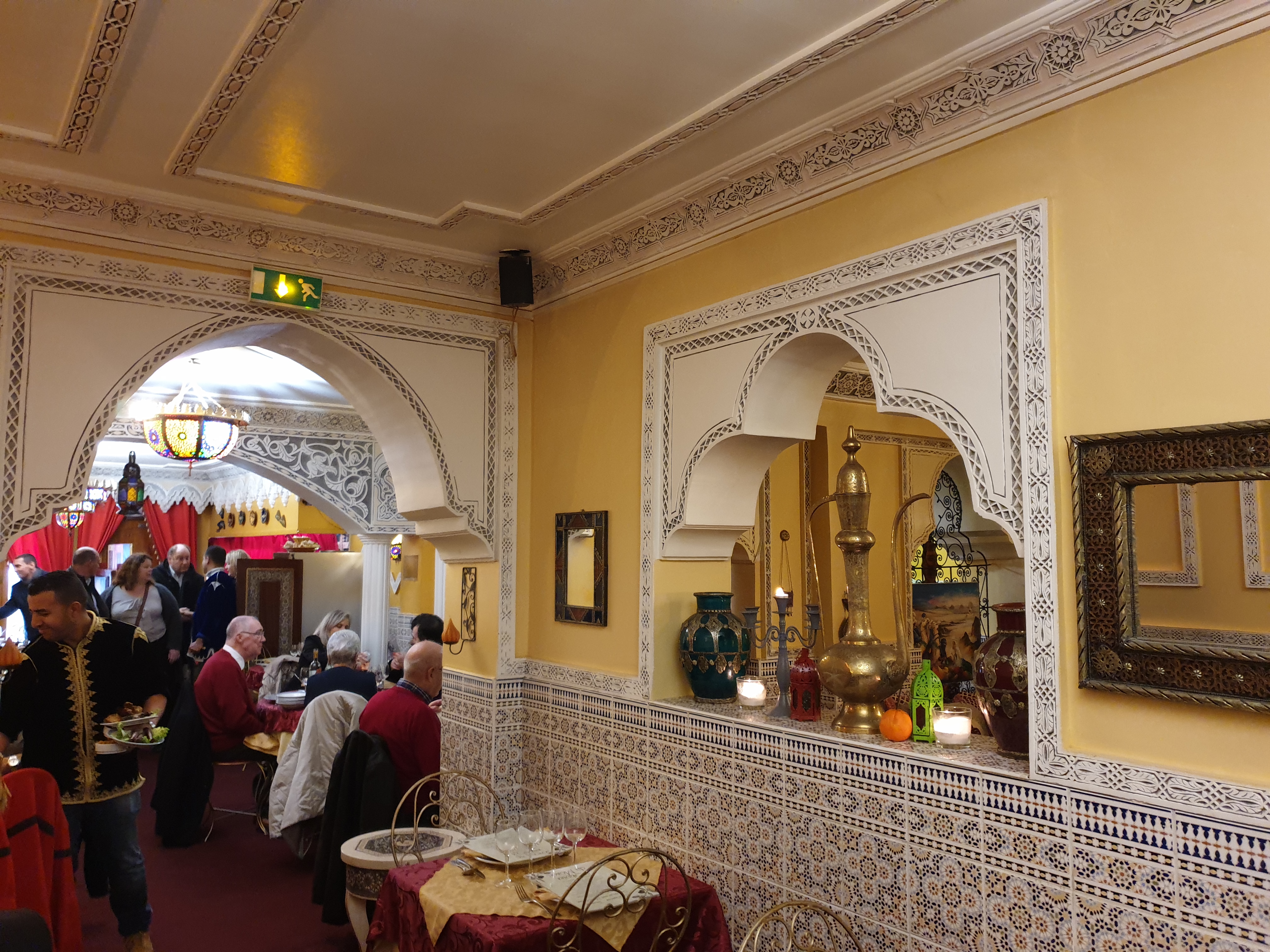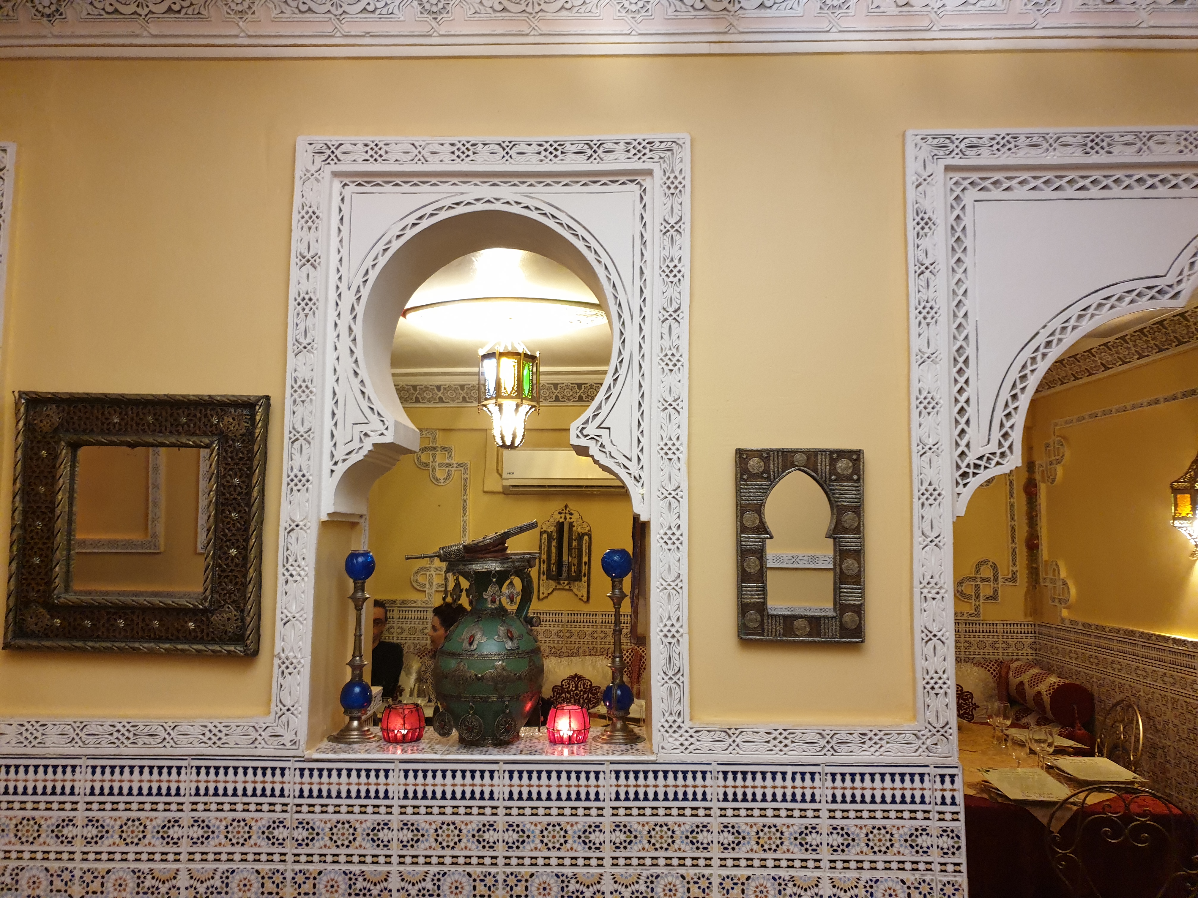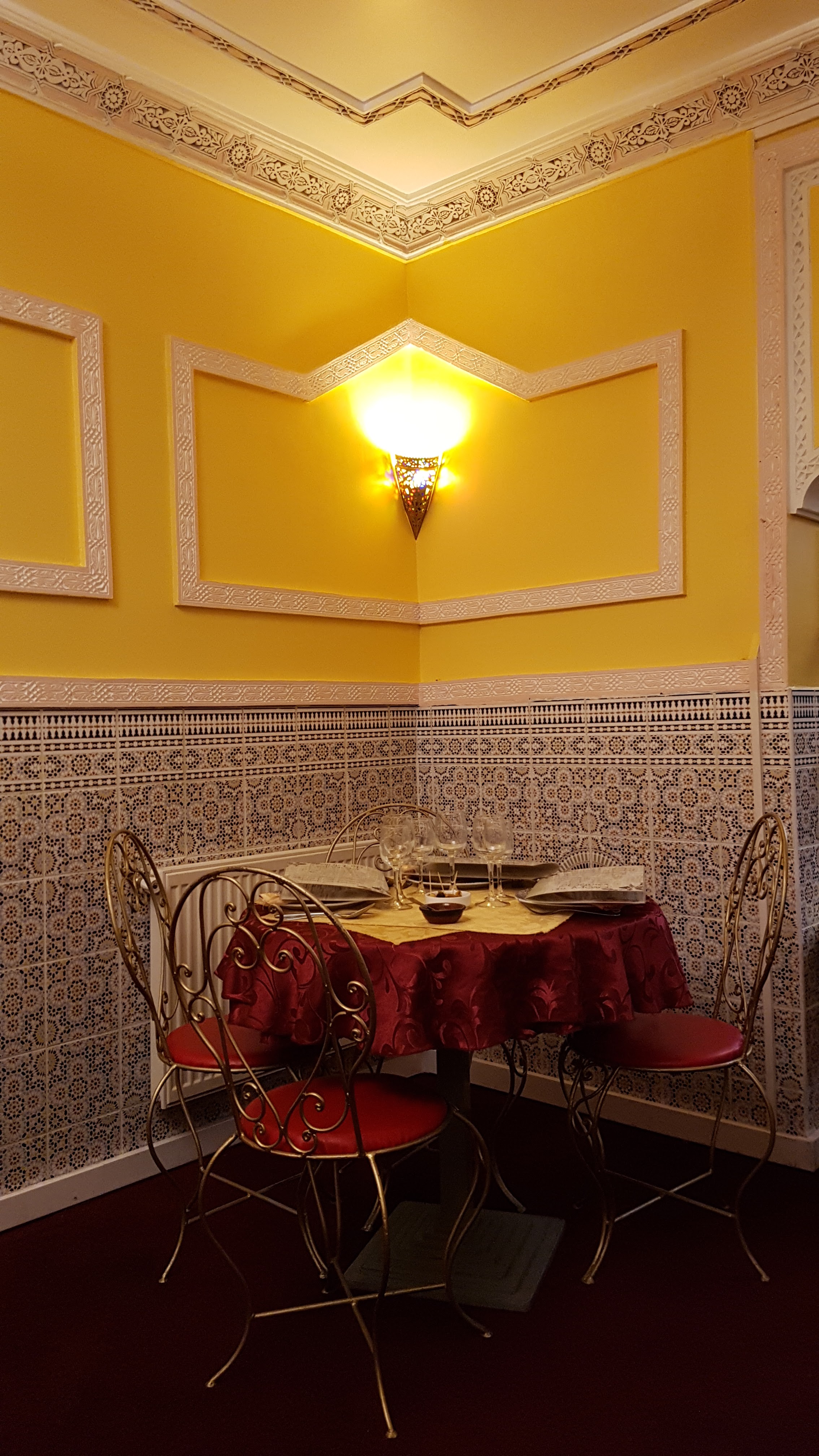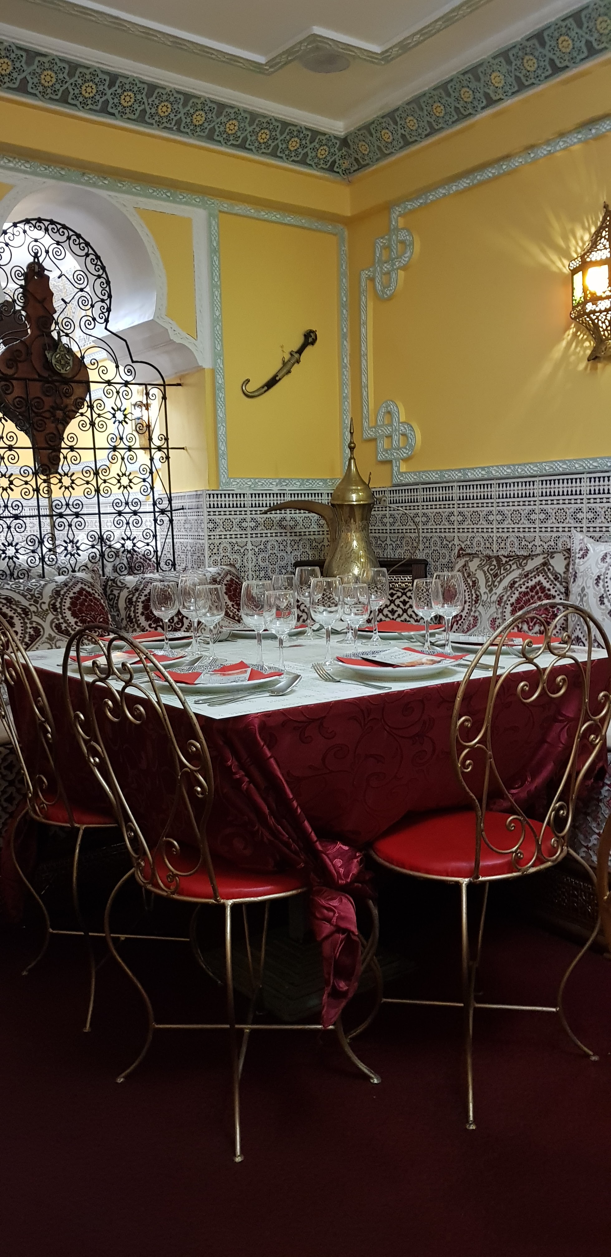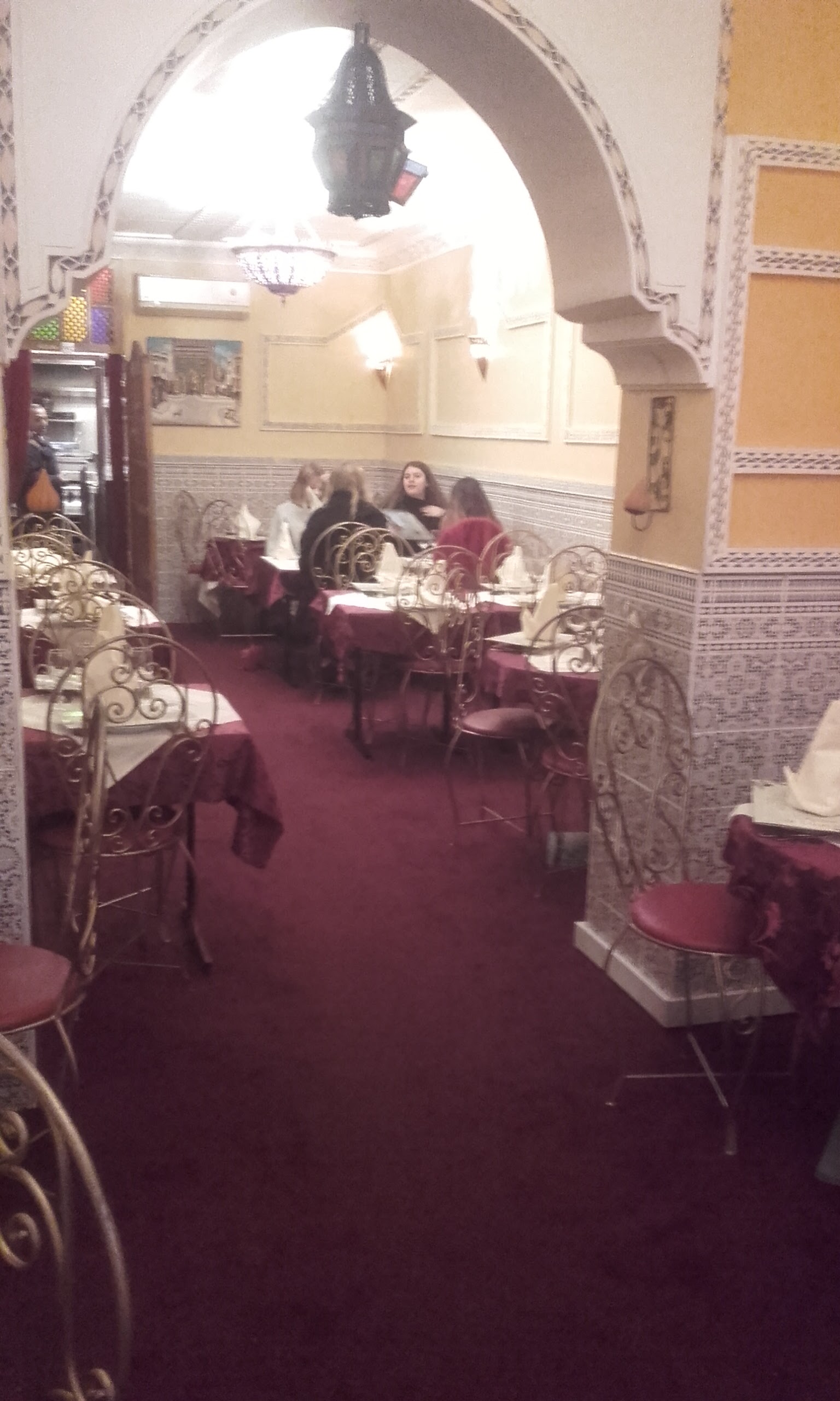 Excellent restaurant :) nous y avons mangé ce soir. Très bon accueil, les serveurs sont très agréables. Le lieux est très beau, entre tapisseries orientales, carrelage à motif, moulures à ornements et voûte. La nourriture y est excellente si vous aimez la bonne nourriture Marocaine. Nous avons pris un très bon tagine Kefta ainsi qu'un excellent couscous. En dessert vous avez beaucoup de choix, notamment au niveau des pâtisseries. Allez-y le restaurant vaut de s'arrêter :)