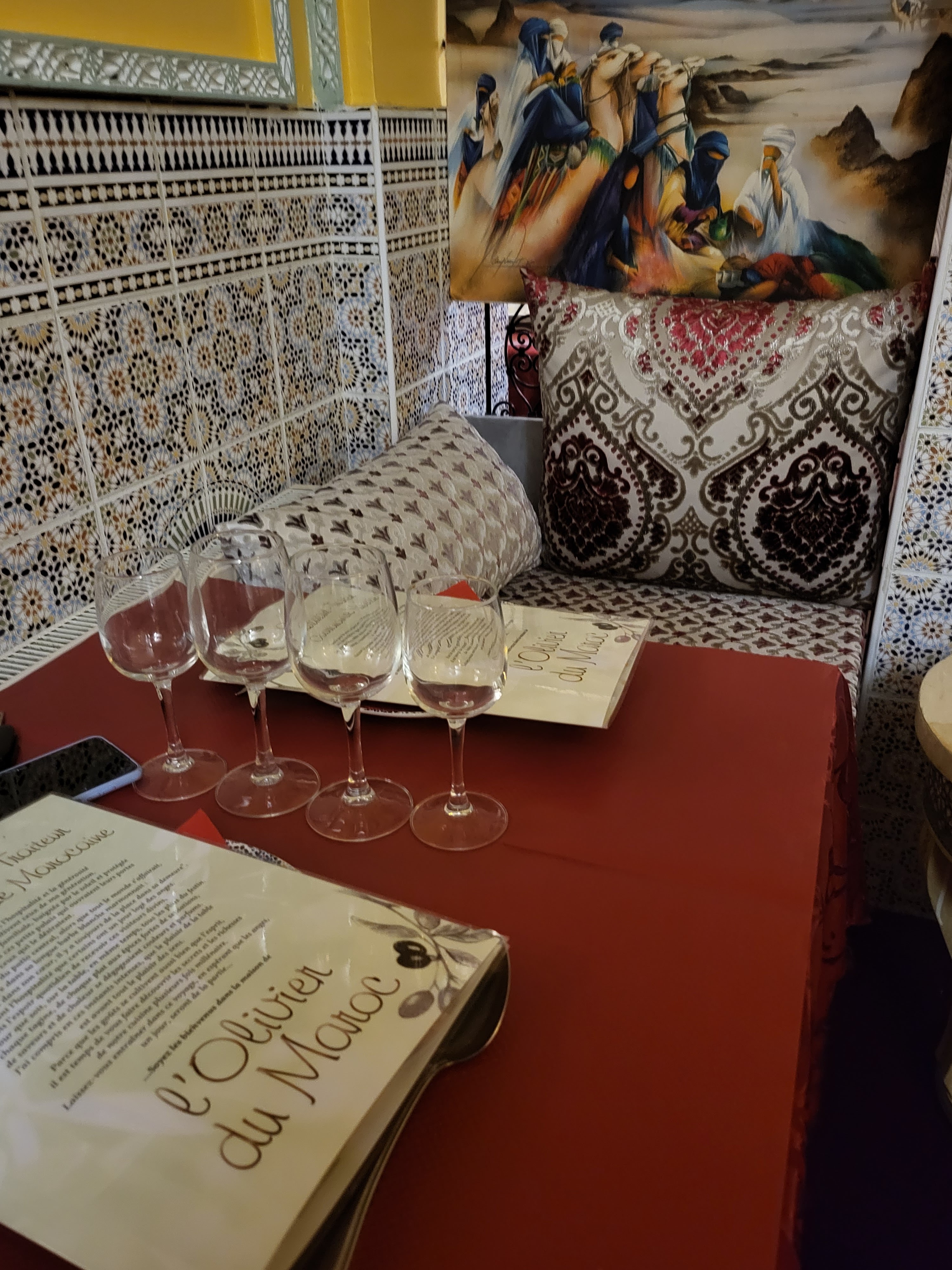 Excellent restaurant marocain je dirais « enfin « car nous en avons testé plusieurs dans l’Essonne et la plupart étaient médiocres . Nous avons pris le couscous l’olivier les viandes étaient très bonnes , souris d’agneau bien confite , brochettes très tendres , bouillon et semoule très copieux avec beaucoup de goût . Attention le restaurant était archi complet un jeudi midi donc pensez à réserver ! Nous y retournerons pour tester les tajines et pastillas
