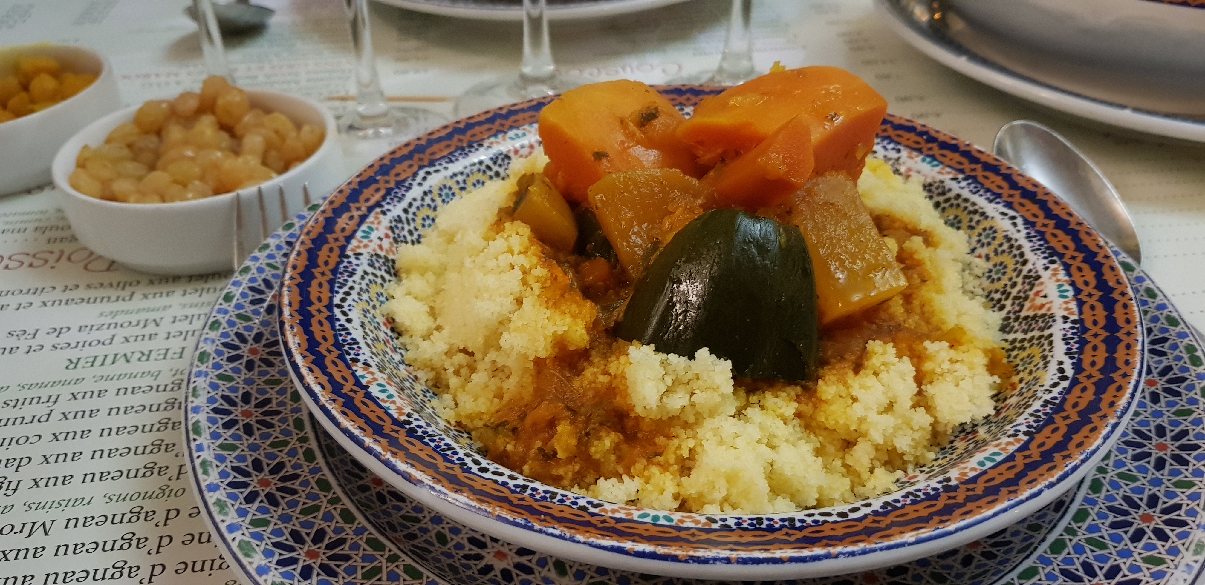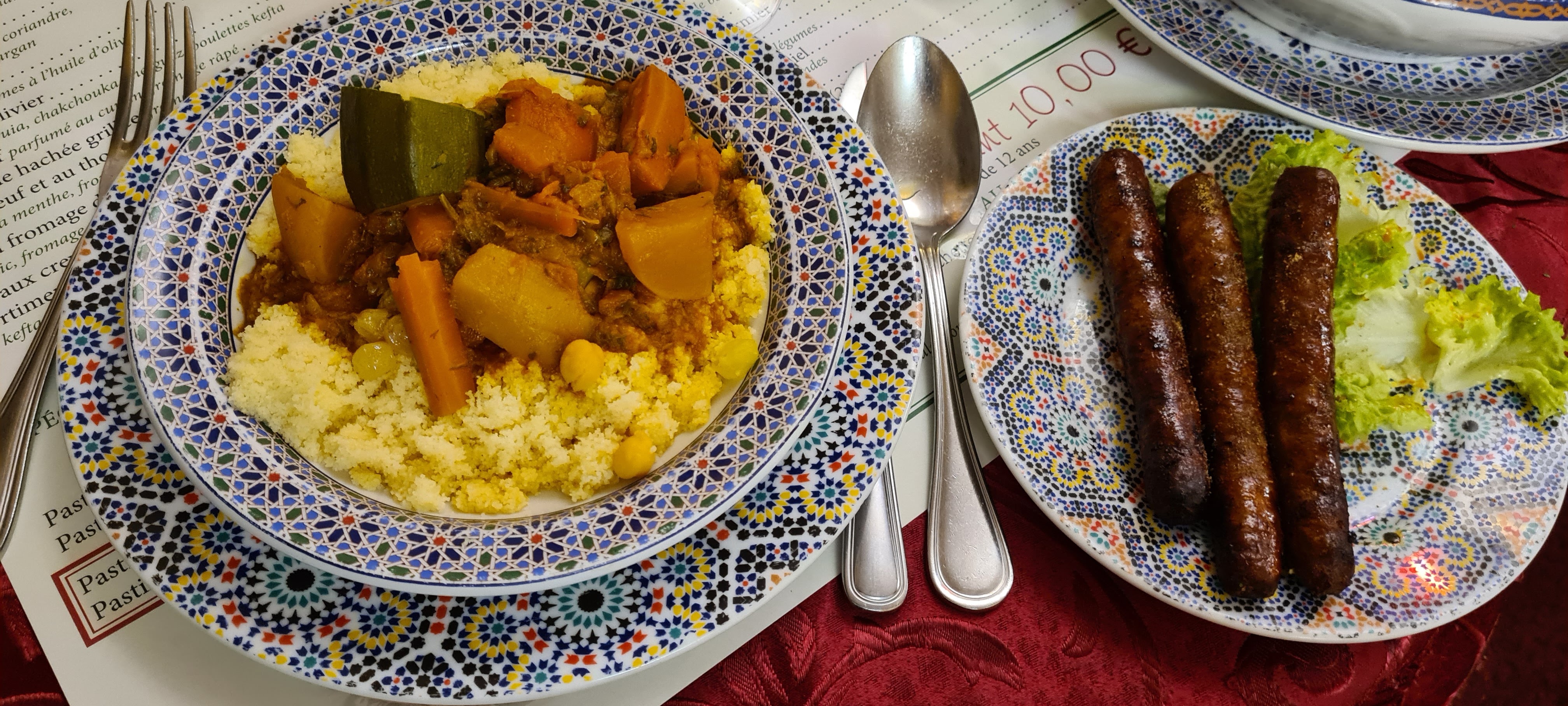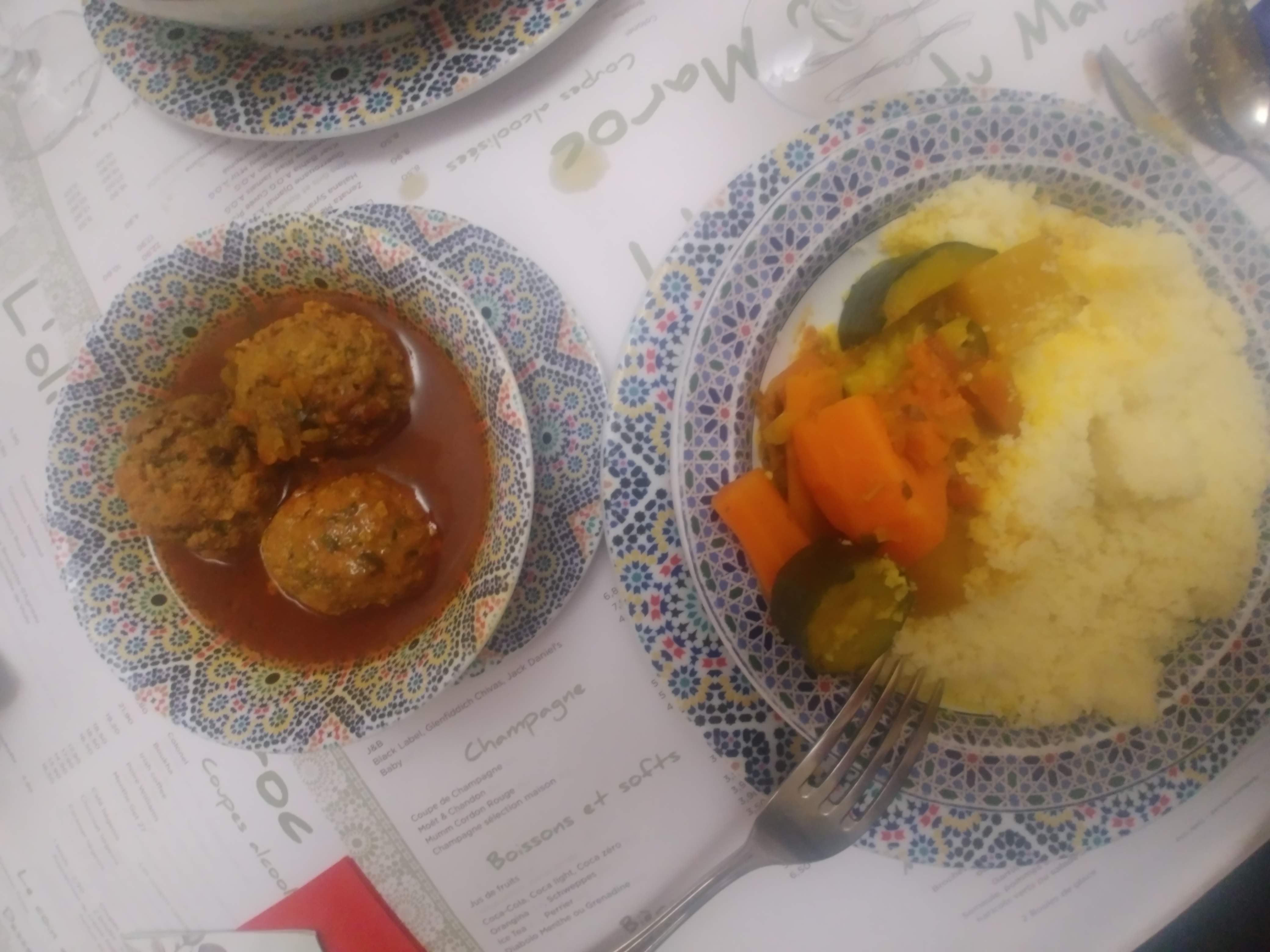 Desolee. J'ai ete hyper decue. J'etais avec des gens qui s' connaissent reellement en couscous et tagines et ils ont trouve la nouriture degeu. Pas mediocre mais franchement mauvaise. Conclusion, jamais plus. Tres cher pour ce que c'est et grand manque de qualite. Cela dit les restaurateurs et serveurs sont tres sympas mais ca ne suffit pas helas.