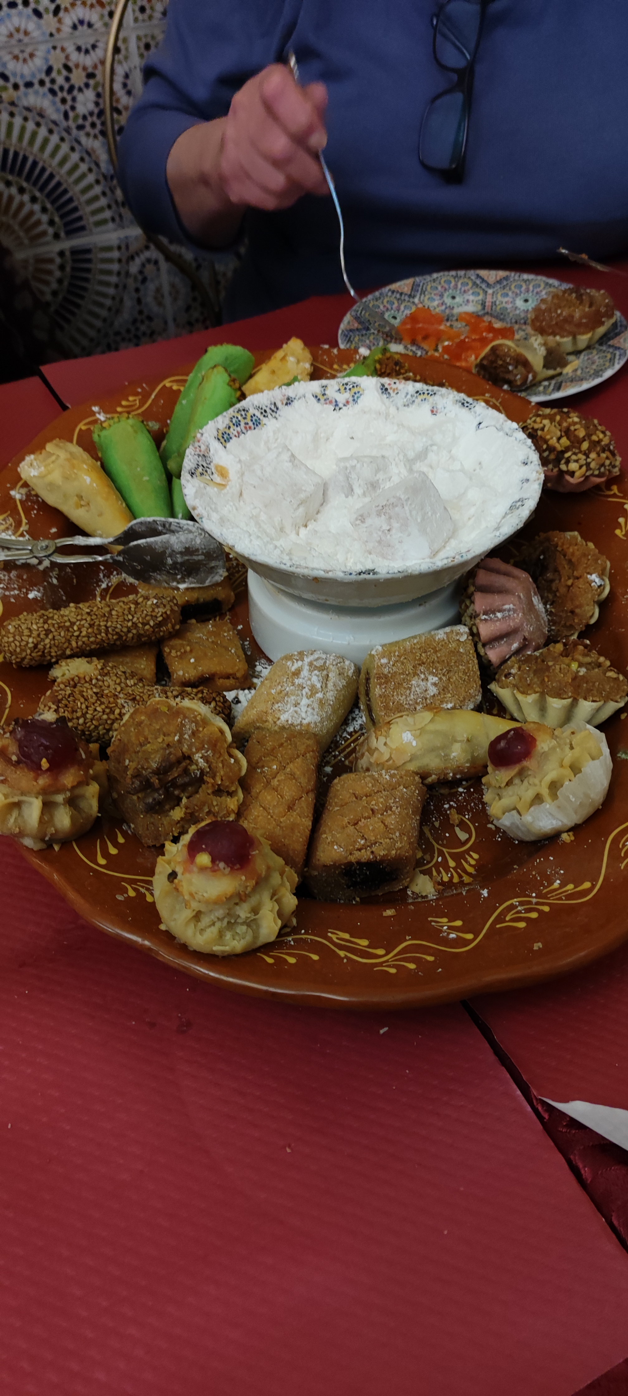 Très bon restaurant marocain en photo coucous royal et agneau au miel.. plateau de pâtisserie en dessert
