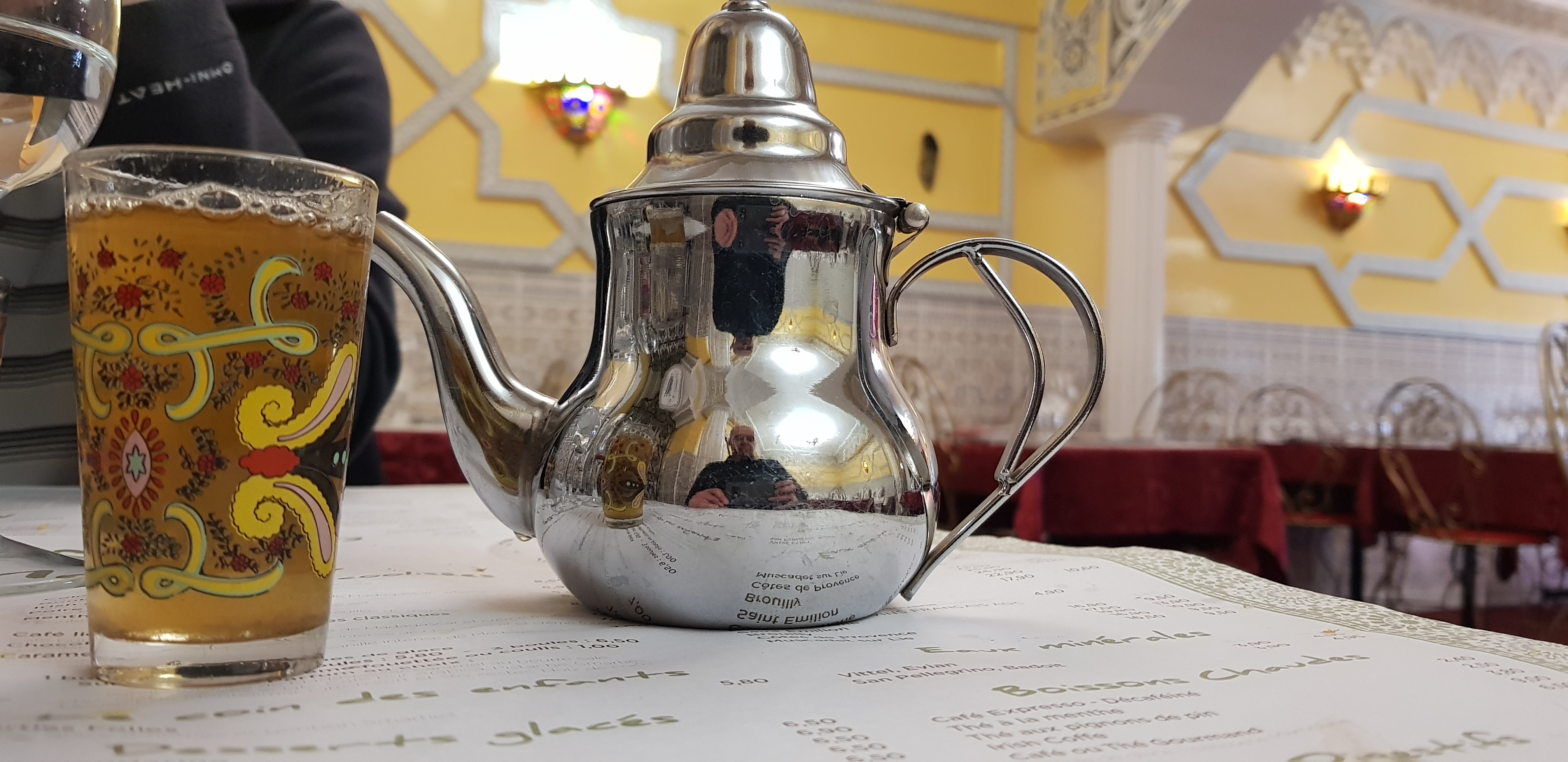 Restaurant et serveurs au top. Les prix sont raisonnables pour les plats. Les tajines sont a tomber tellement c'est bon. Le thé a la menthe un délice le seul bémol le prix des pâtisseries je trouve que 8€ pour 3 petite friandises c'est exagéré c'est pour cela que j'ai enlevé 1 étoile