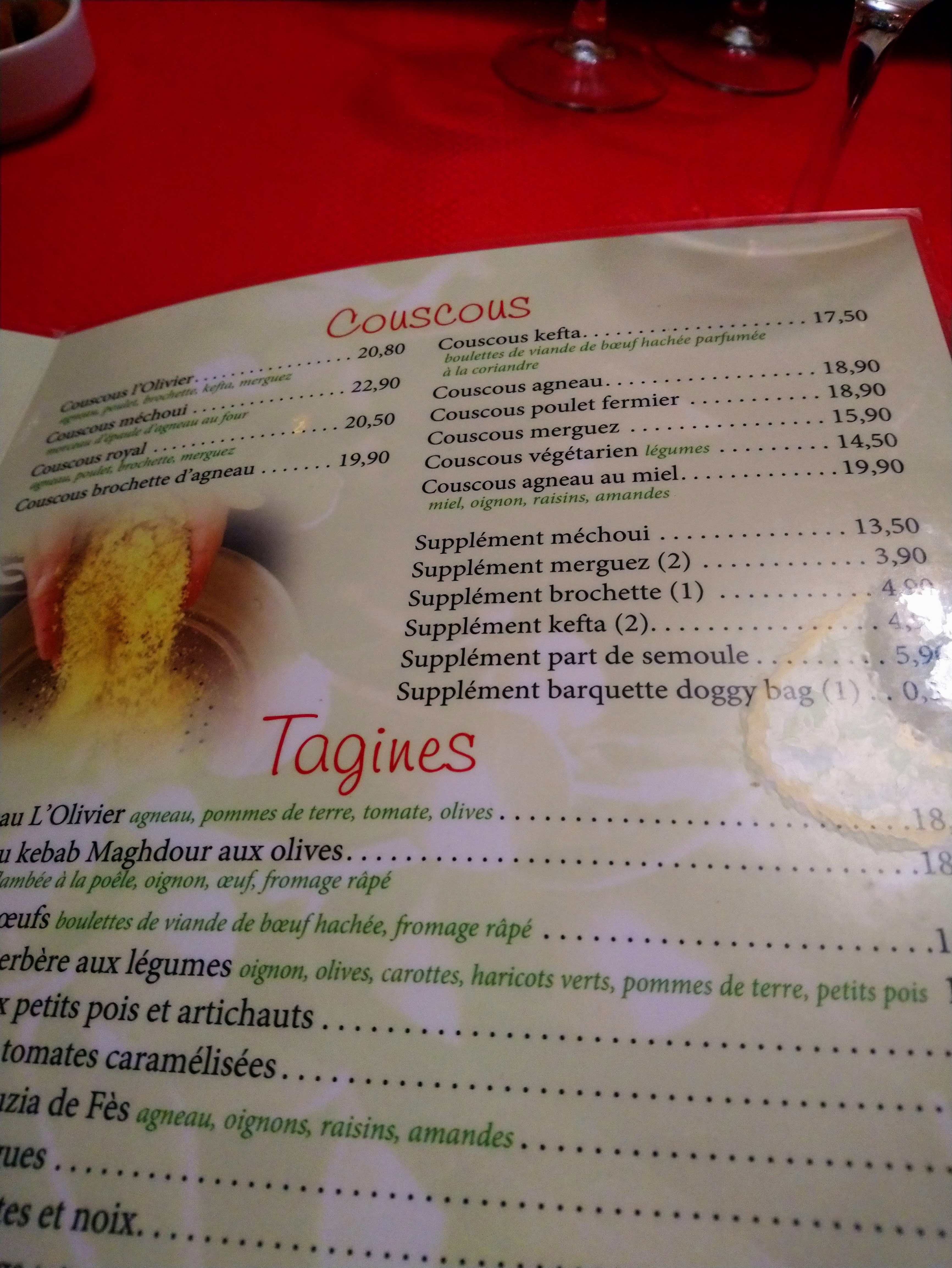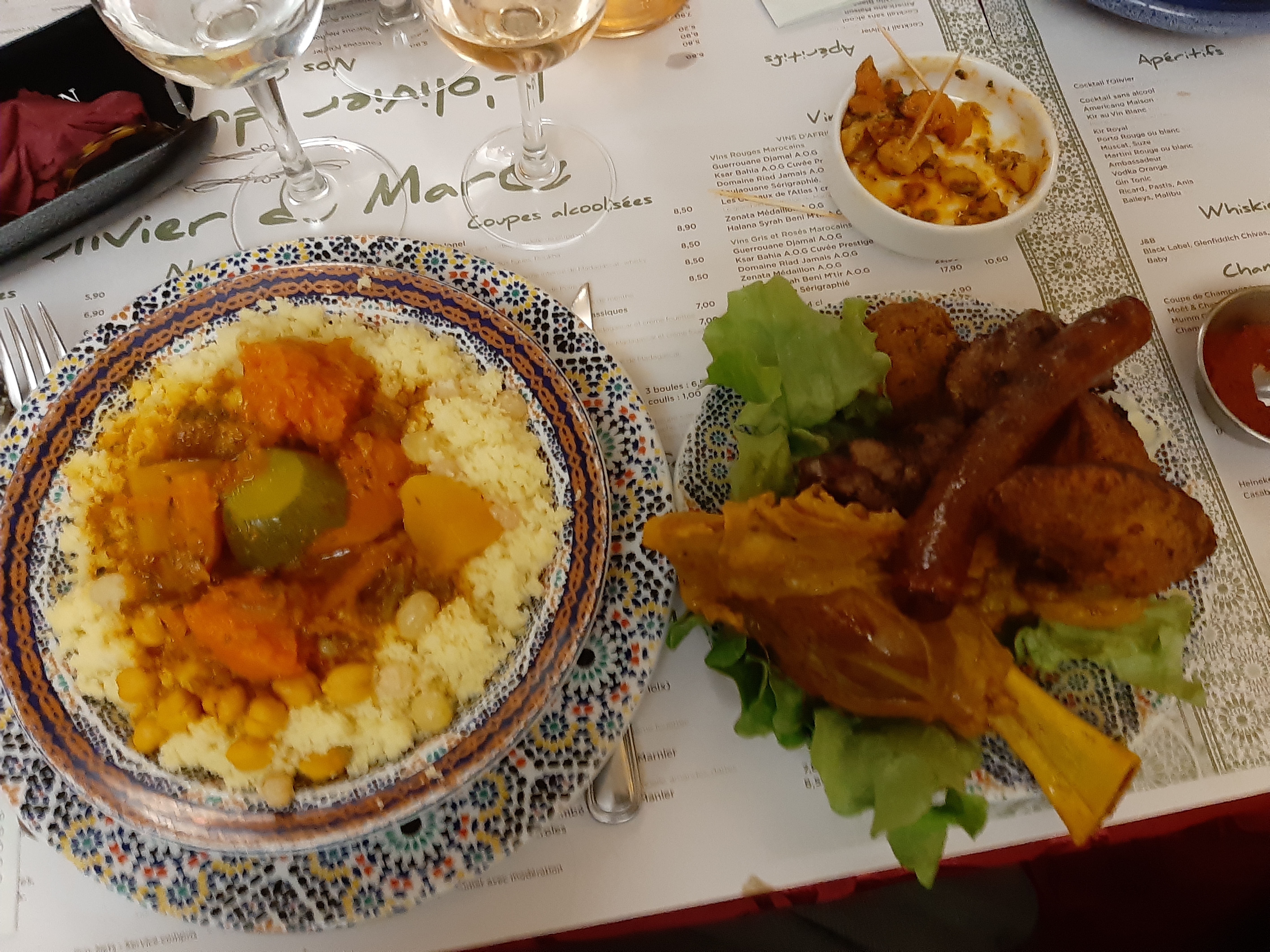Nous avons mangé à l'Olivier du Maroc. Le service est impeccable, le personnel est très aimable. Le couscous Méchoui est magnifique. Je recommande fortement.