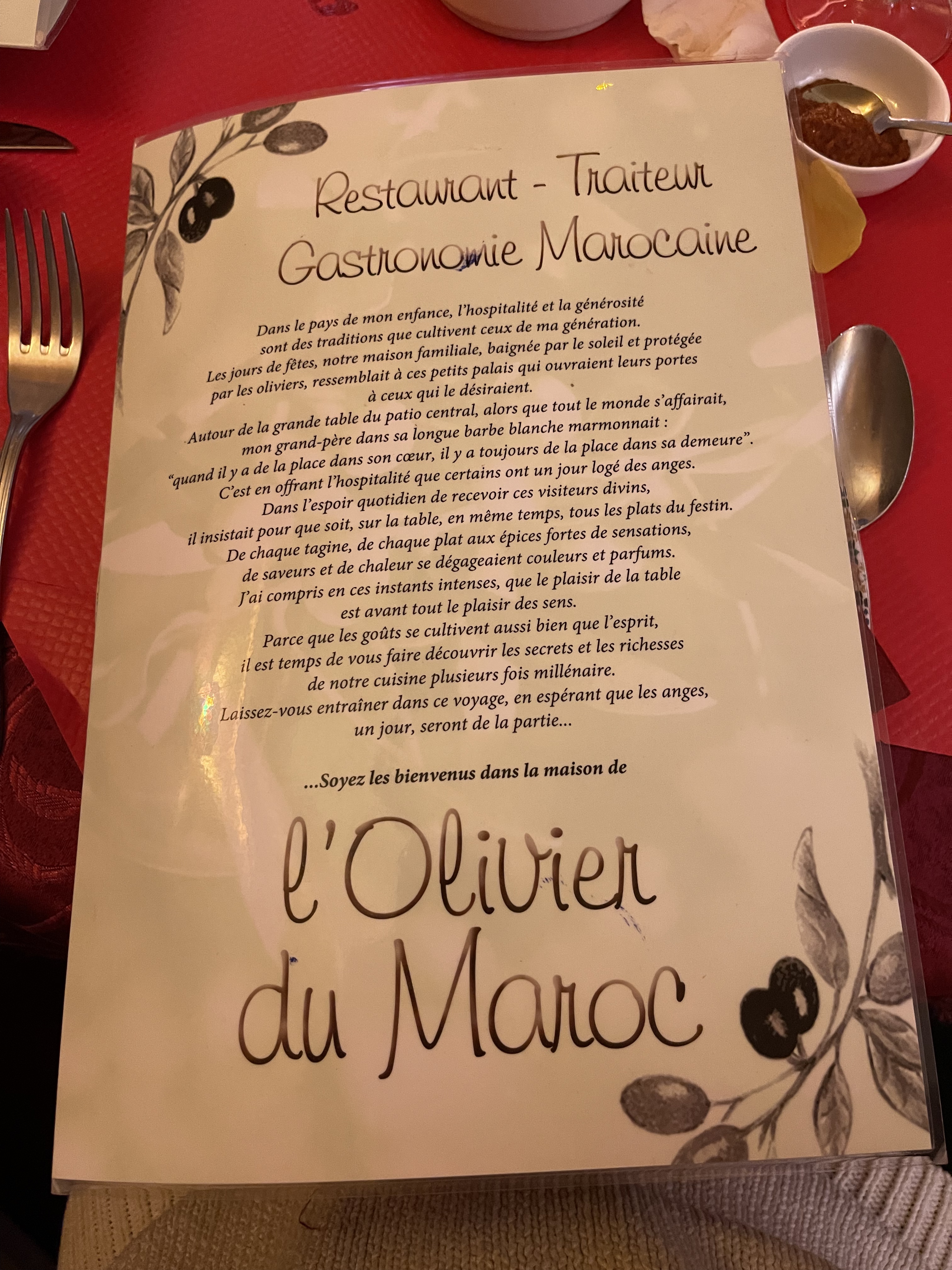 Bonjour, nous avons déjeuné le week-end dernier à L’Olivier du Maroc, à l’occasion d’un anniversaire. La salle est bien agencée, le personnel est aimable et les plats sont très bons. Du choix et de la qualité. Merci pour ce bon repas.