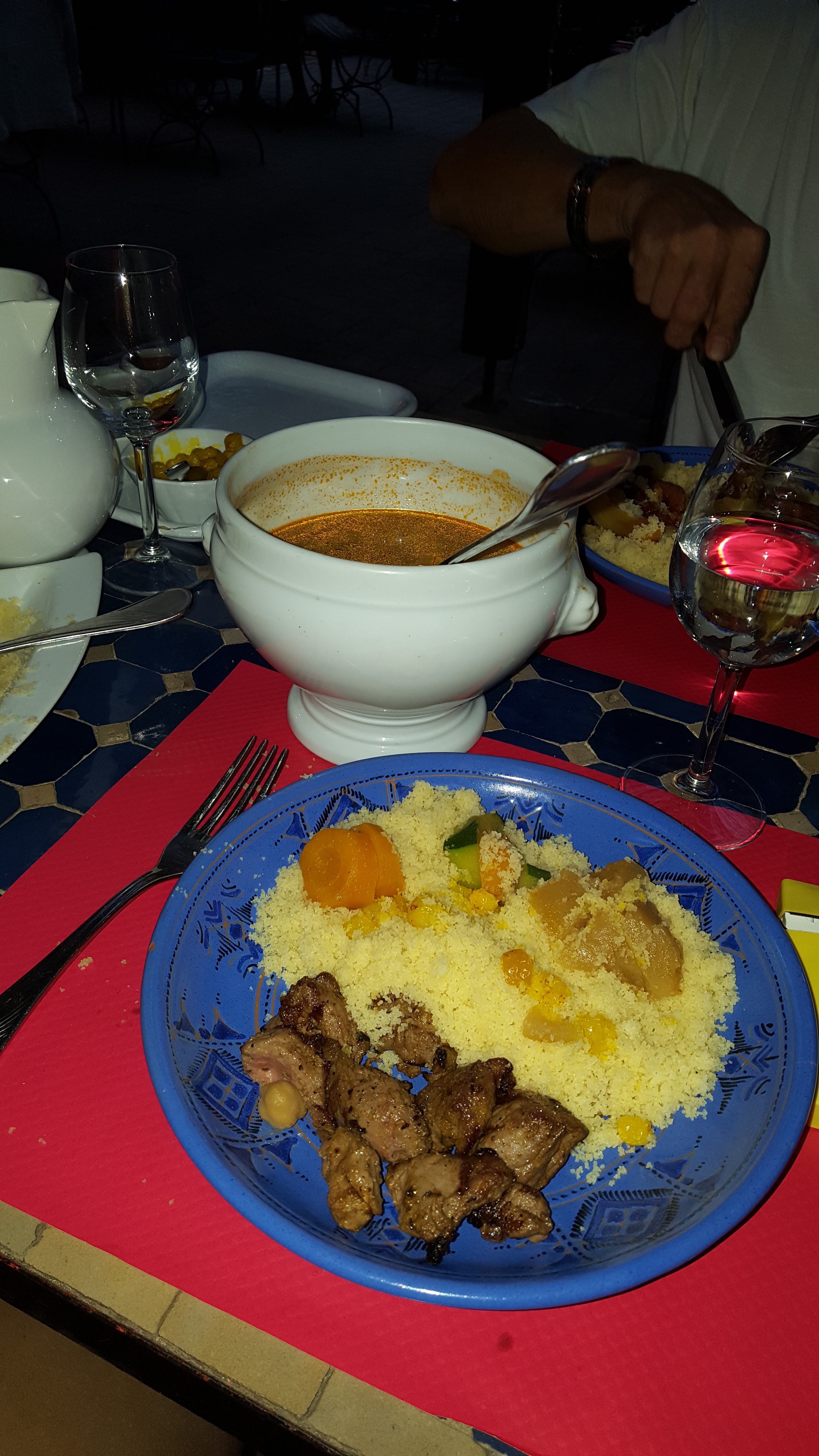 Dîner en terrasse couverte, coucous et tagine 👍