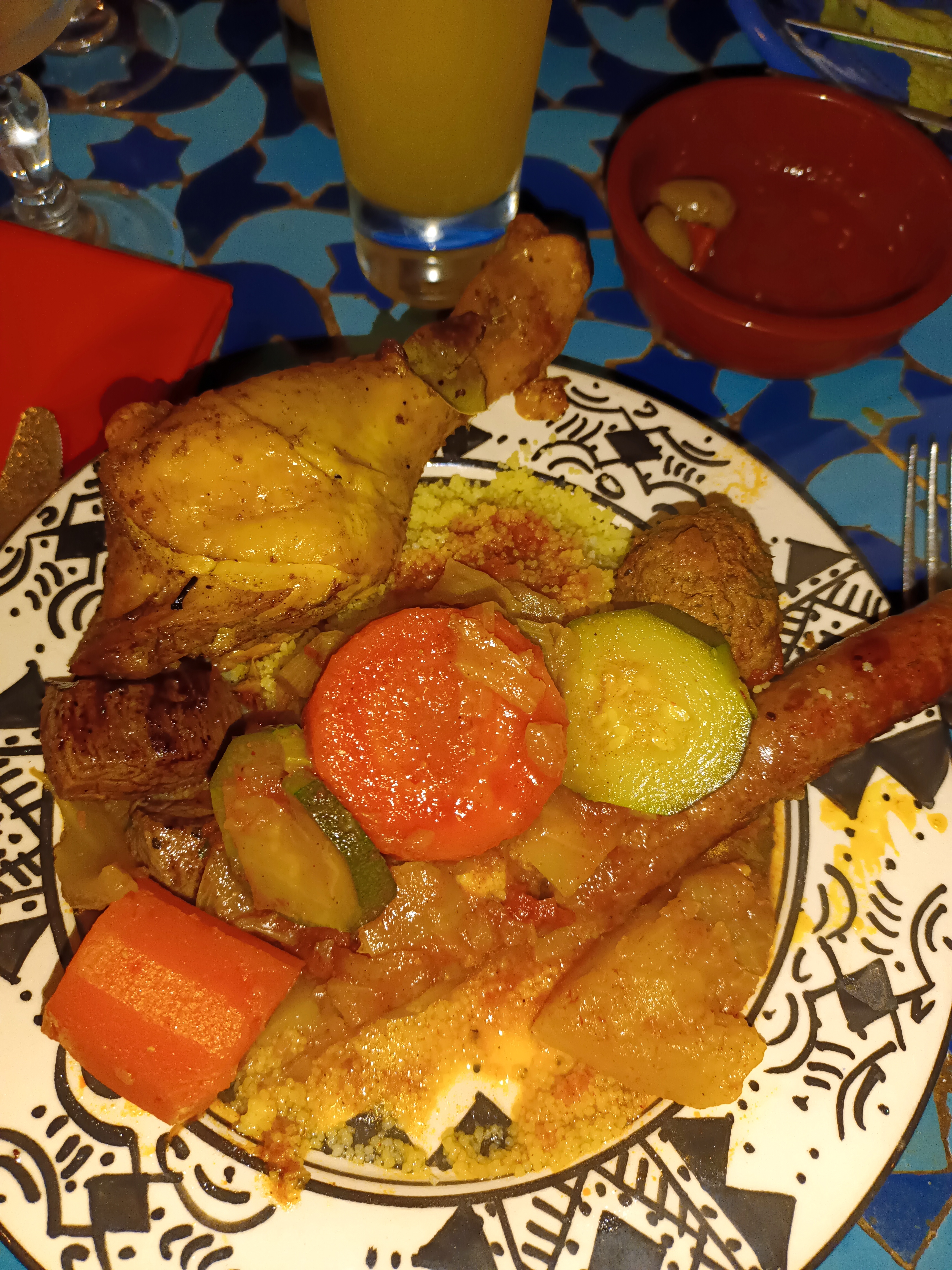 Ambiance sympathique. Tajine moyen...manque de légumes pour le couscous.