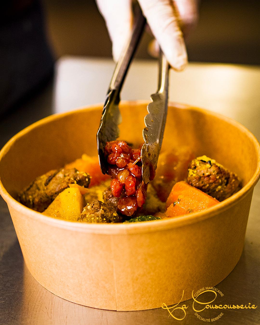 LES +++ : CLASSEMENT : . Le Meilleur Couscous de St Nazaire ! . Un accueil chaleureux, une personnalité bienveillante et profondément sensible à la relation client. Le Coeur chaleureux est l'ingrédient spécial des succulents couscous en box ! . LES LEGUMES : MADE IN FRANCE Une filière éco responsable et des producteurs locaux sont privilégiés. Les légumes sont fondants en bouche. Ils ont du goût... Les yeux se ferment à chaque bouchée. C'est divin. . AVEC OU SANS RAISINS SEC : Grosse polémique chez les puristes du Couscous. On peut donc choisir SANS ! Et savourer sont Couscous racé, relevé d'épices et de piments. C'est un dosage osé et très masculin. Ça passe et avec les légumes locaux, c'est simplement DE-LA-TUE-RIE. . UNE CARTE DE FIDELITE : Une Box Offerte après plusieurs passages. . LE THE A LA MENTHE : Au Top ! . LES PATISSERIES : Raffinés. NOTA : Celles/Ceux qui recherchent de la quantité comme dans une cantoche des Chantiers ou un buffet à volonté, franchement, passez votre chemin au lieu de laisser une vilaine note. Le goût et la qualité sont priorisés à la quantité pure. Le prix est vraiment raisonnable quand on recherche de la qualité avec en plus un ingrédient magique : le Coeur !