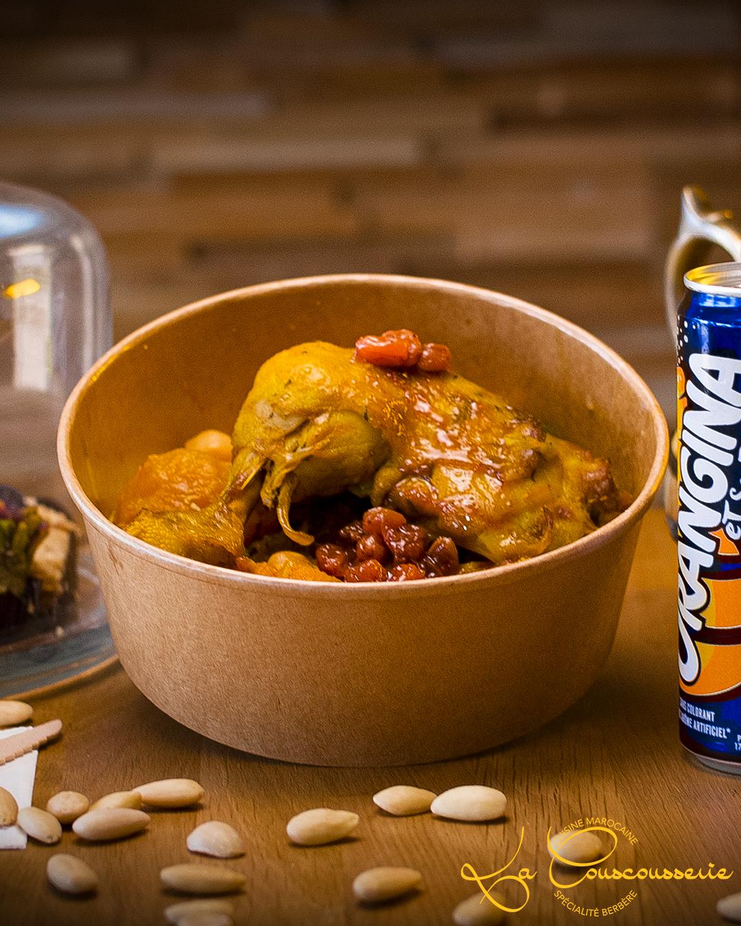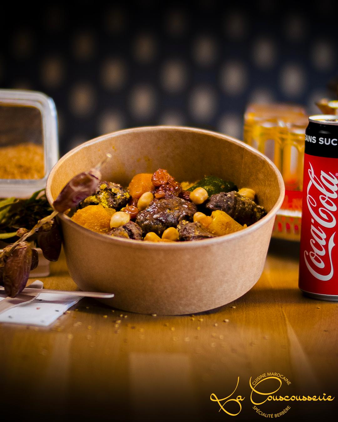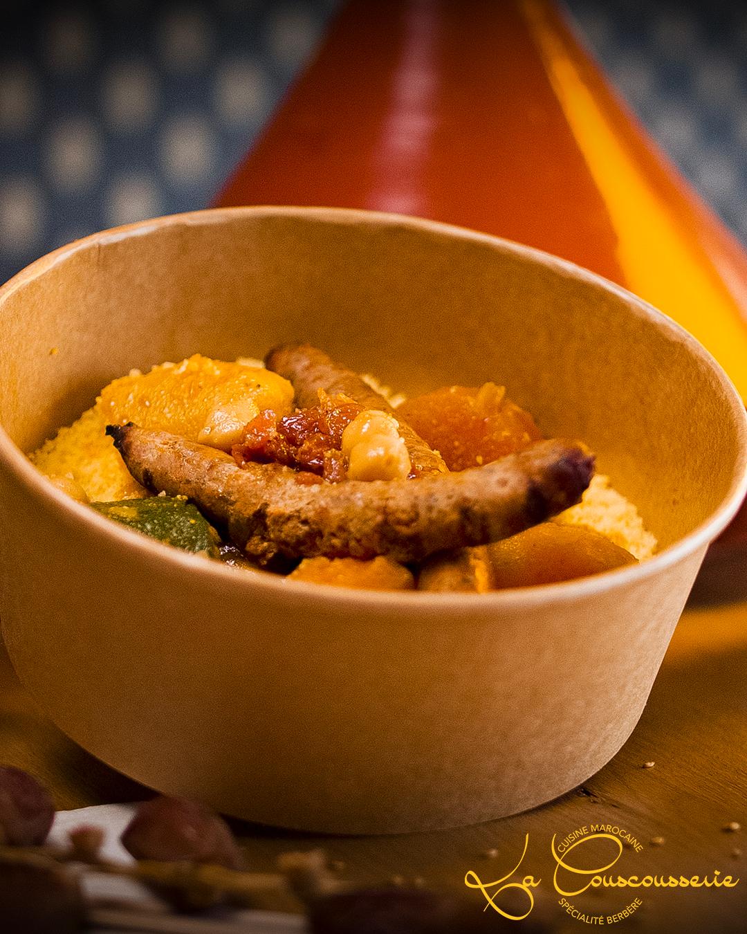 Excellent ! On a promis un avis positif si c’était bon et on vient de finir à l’instant, donc félicitations le gentil monsieur de la Couscousserie. La viande se détache sans difficulté, pas même besoin de couteau. La semoule est exquise. La sauce parfaite et la sauce harissa est idéalement dosée. C’est un vrai bonheur, même réchauffé pour ceux qui viennent de loin. En plus le monsieur est super sympa et généreux, donc vraiment, je n’exagère pas avec le cinq sur cinq. Bravo !