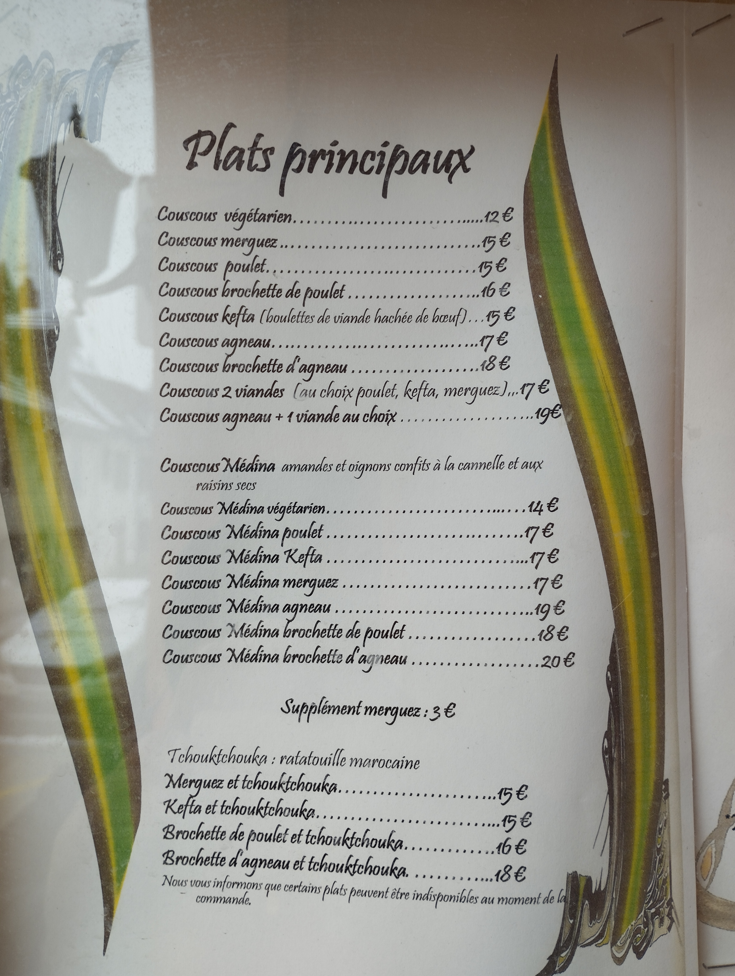 Je viens en vacances de Toulouse et je ne partirais pas sans manger un super bon couscous de la médina. Les légumes comme la viande sont frais, goûteux. Je recommande ce restaurant vivement