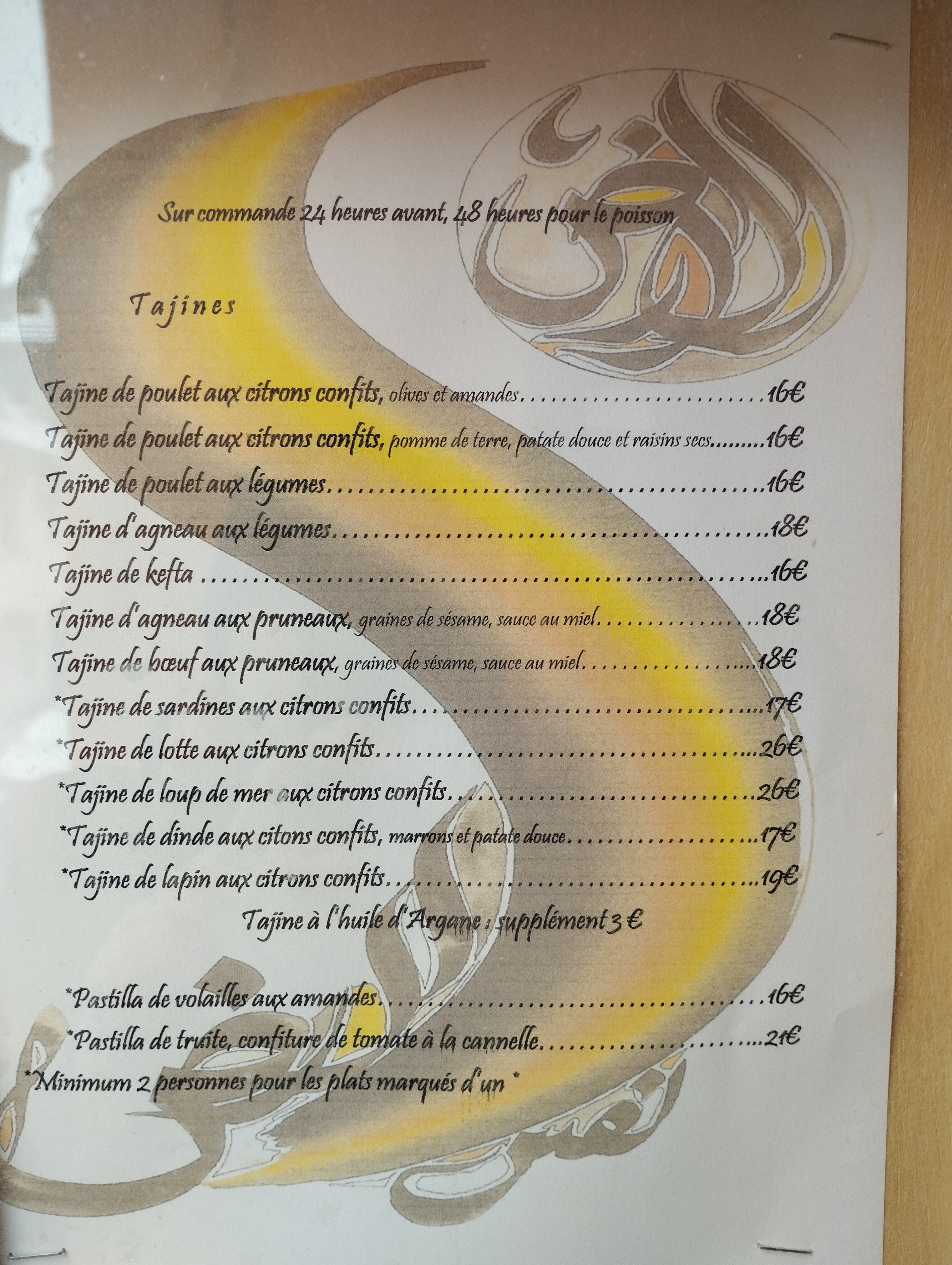 Restaurant marocain, cuisine traditionnelle. Bon service ,ambiance conviviale saveurs typiques marocaine.pour les tajines faut réserver à l'avance