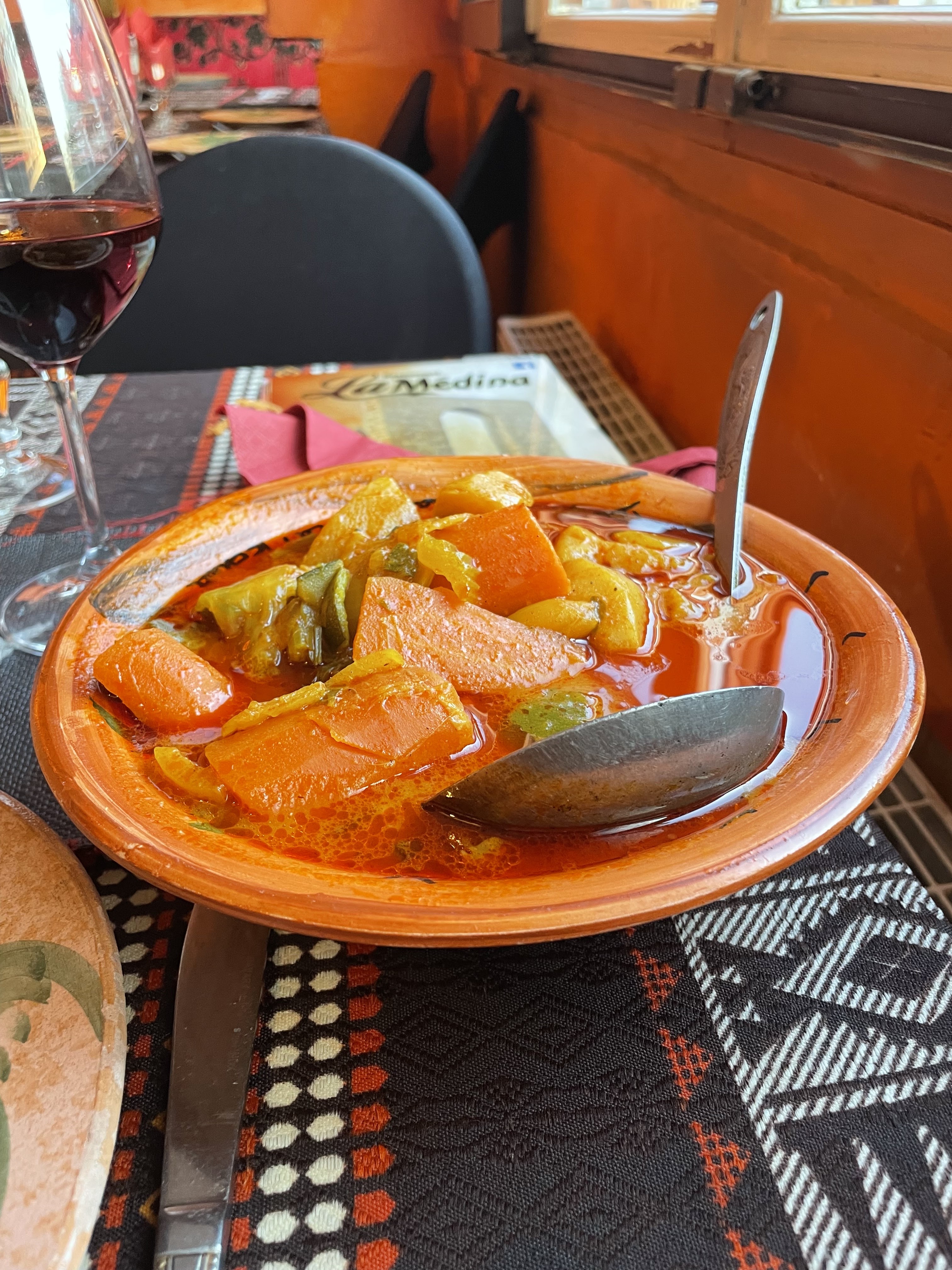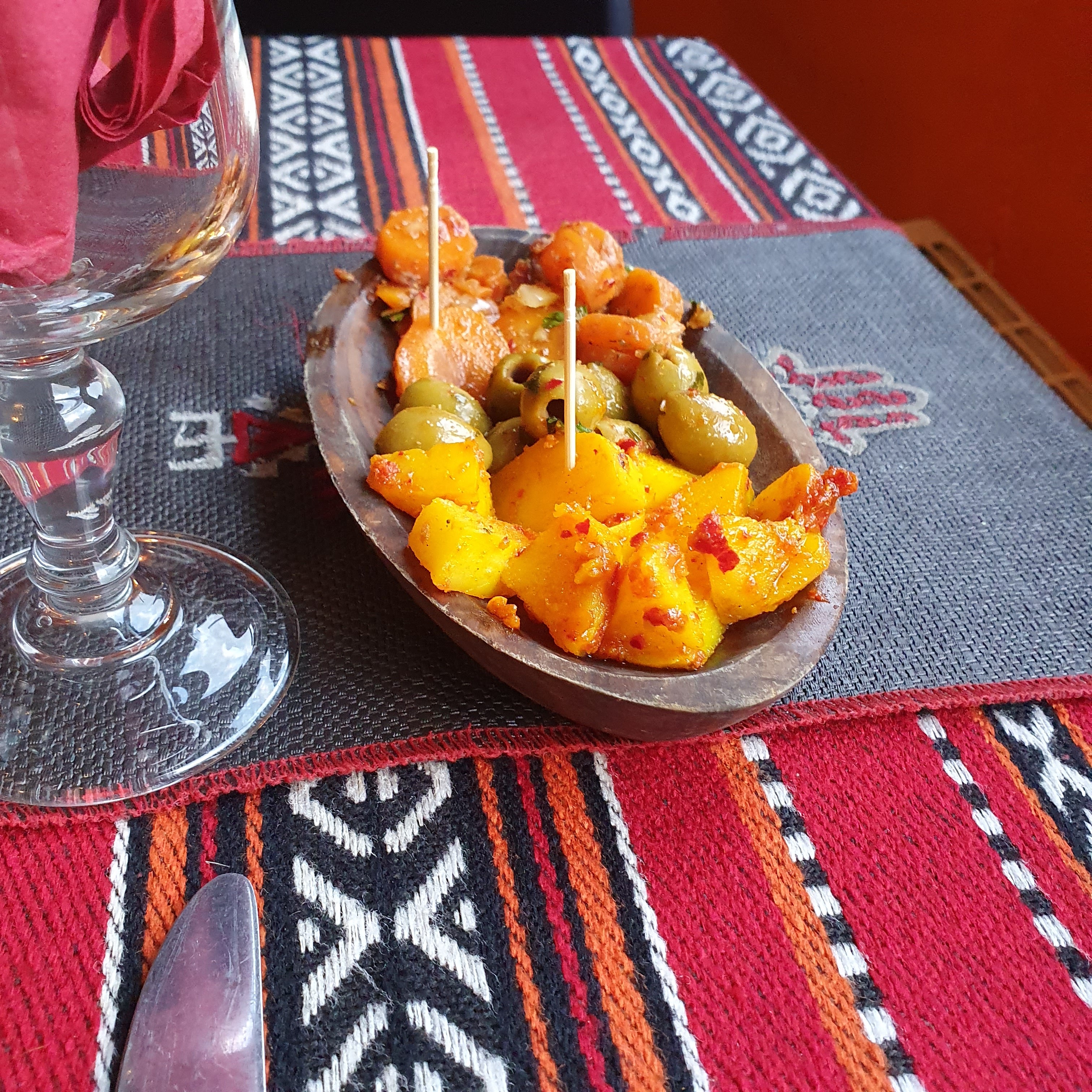Bonjour, Je conseille vivement ce restaurant, La carte des vins et des apéritifs sont complets. Ce restaurant propose essentiellement des couscous, des tajines et bien d’autres choses à découvrir. Personnellement j’ai pris un couscous brochettes, c’était succulent, en abondance, de gros morceaux de légumes, deux brochettes, un trio d’accompagnement ( pois chiches raisin piment). Semoule . À noter également qu’en amuse-bouche il est proposé un trio avec des olives des pommes de terre et des carottes marinées (gratuitement ) Pour le dessert j’ai craqué pour des oranges à la cannelle, c’était très rafraîchissant. Un thé est proposé à la fin du repas gracieusement offert par la maison. Un excellent rapport qualité/prix. Accueil et ambiance chaleureuse.