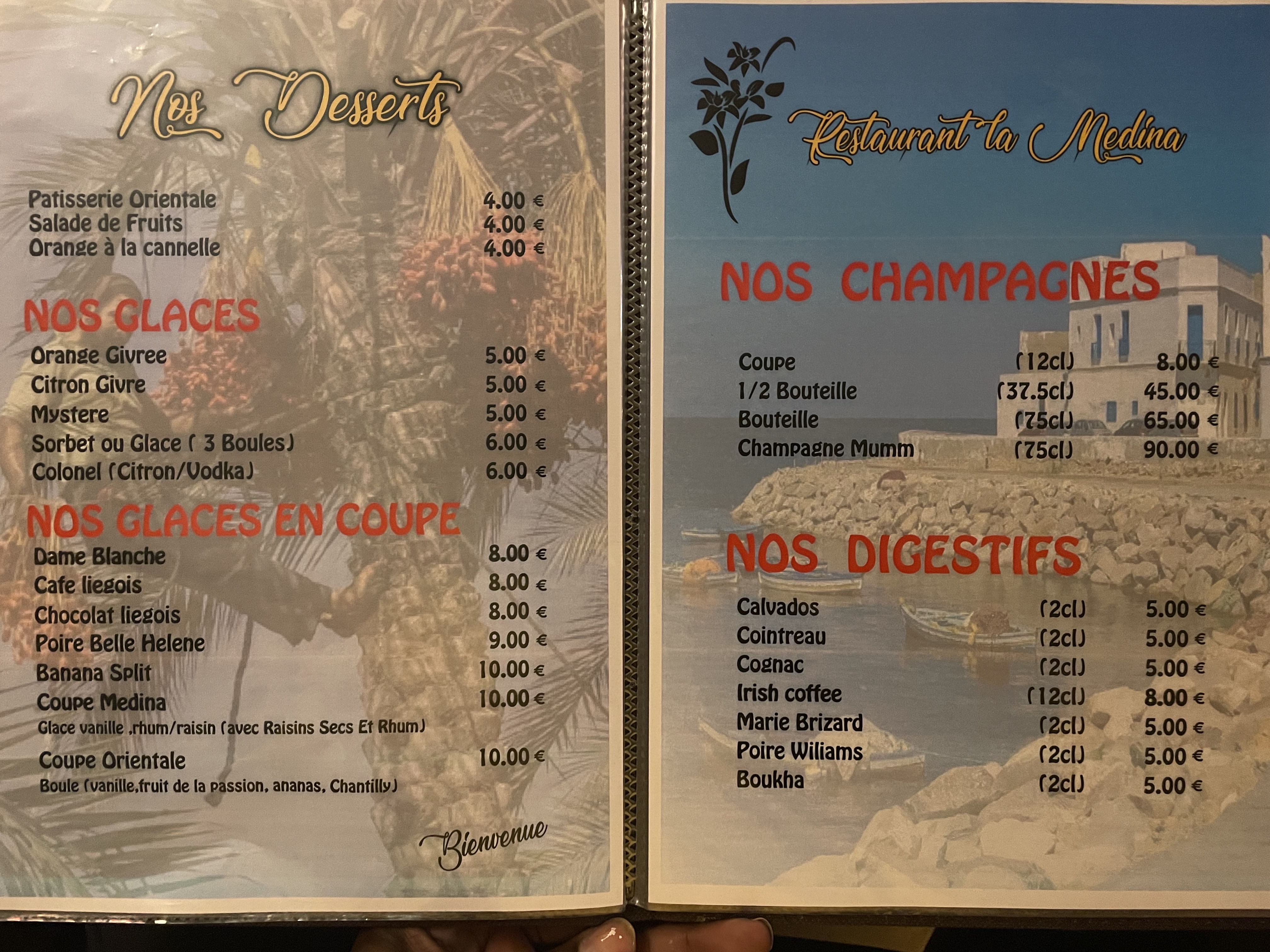 La médina un restaurant que nous avons l'habitude de fréquenter tant soi peu par le choix des repas qui sont excellents que part leur gentillesse .Ben est sa femme sont très souriant , à l'écoute, très agréable .merci pour ces bons moments passez dans ce.merveilleux restaurant .je le conseille à 10000 milles pour cent