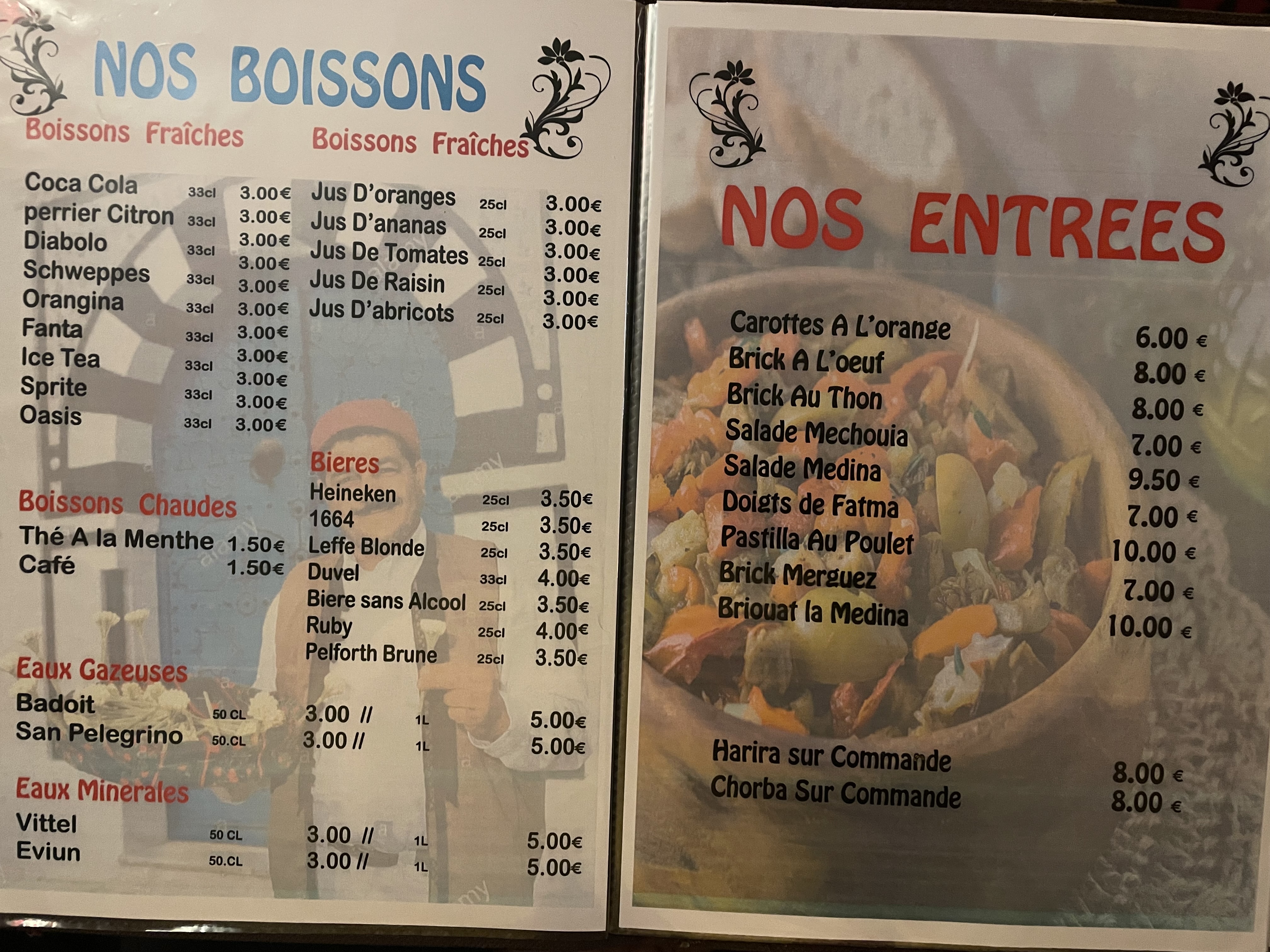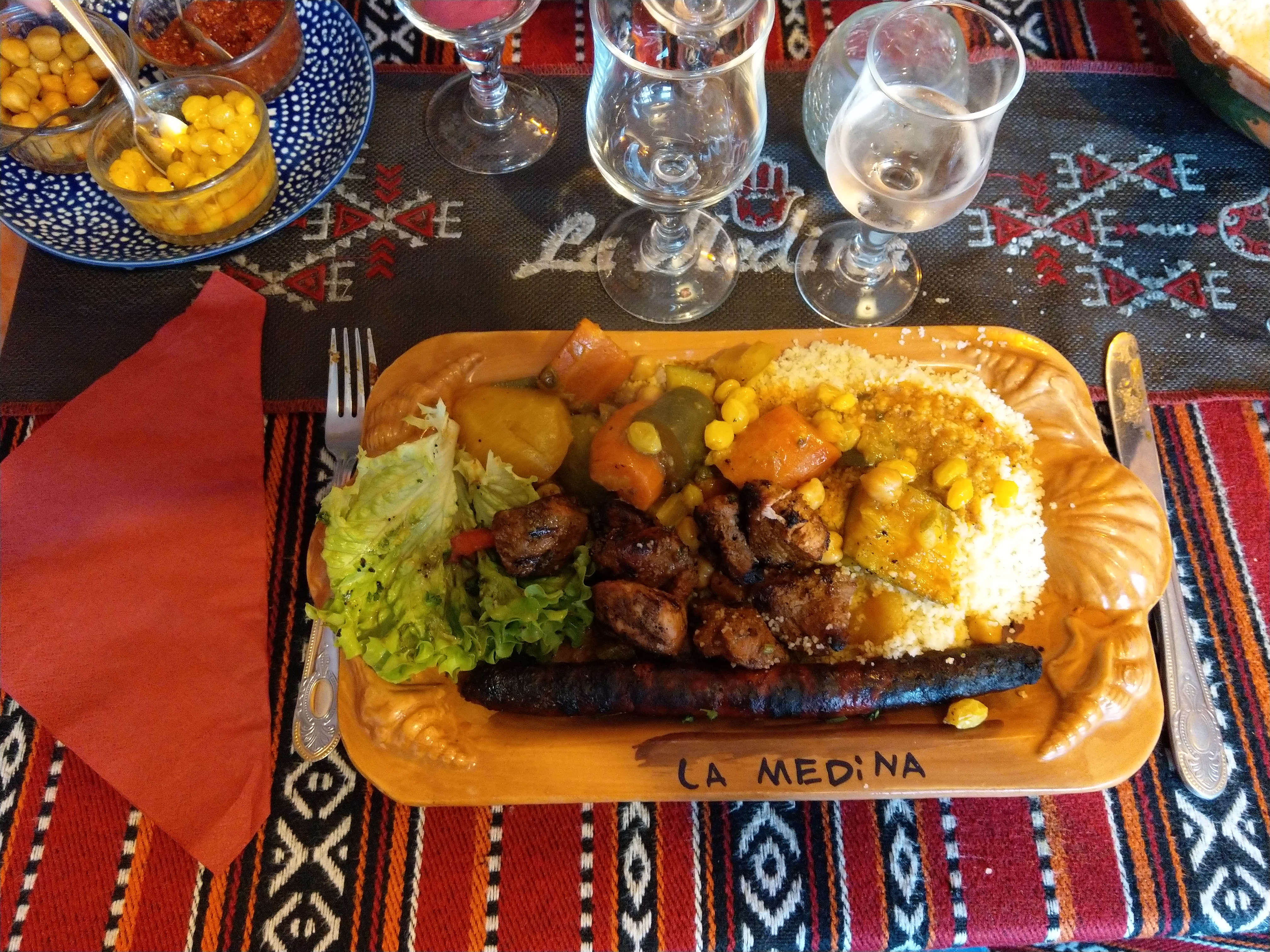 La Médina est un restaurant d'apparence simpliste, mais une fois rentré l'ambiance et le personnel sympathique nous laisse penser qu'il s'agit d'une bonne adresse. La nourriture l'a confirmé puisque je me suis régalé, je recommande.