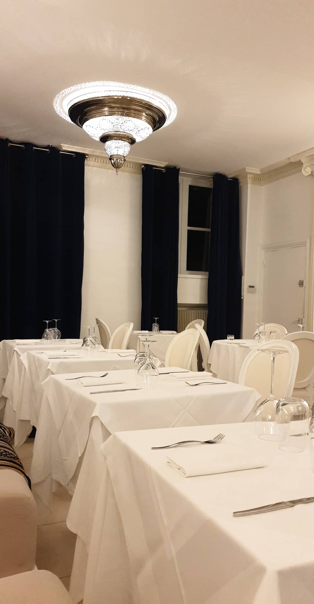 Cadre moderne un peu froid. Des assiettes pour le couscous style gastro , gros creux au milieu , des bords très large. Résultat: la semoule dans le creux de l’assiette avec les légumes dessus. Pas de place pour la cuisse de poulet ou les merguez qui sont sur les bords de l’assiette. Il est impossible de les couper sur le bord de l’assiette au risque de faire basculer l’assiette. Plat de couscous merguez 16€90, supplément assiette de couscous 4€. Le bouillon pour 2 est dans un petit ramequin de 5cm de diamètre. Bouillon sans grande saveur. Je ne recommande pas l’endroit car trop minimaliste. On joue au gastro mais sans pouvoir y prétendre.