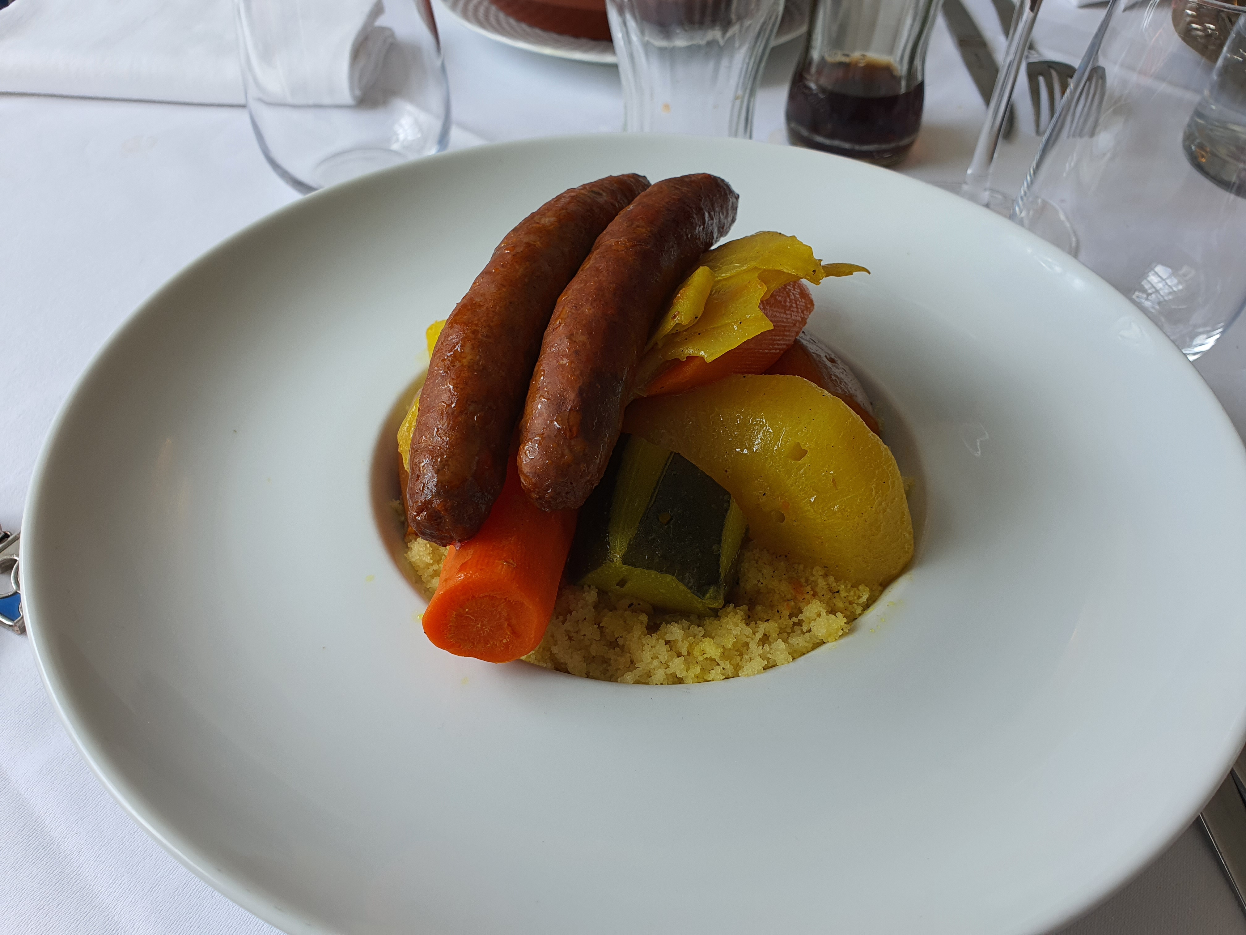 Nous avons pris le coucous royal, qui etait excellent avec des bons produits. Pour accompagner nous avons pris un boulaouane gris très fruité. Très bonne adresse. Nous avions notre compagnon Sam, notre chien très bien accueilli qui a pu se désaltérer.