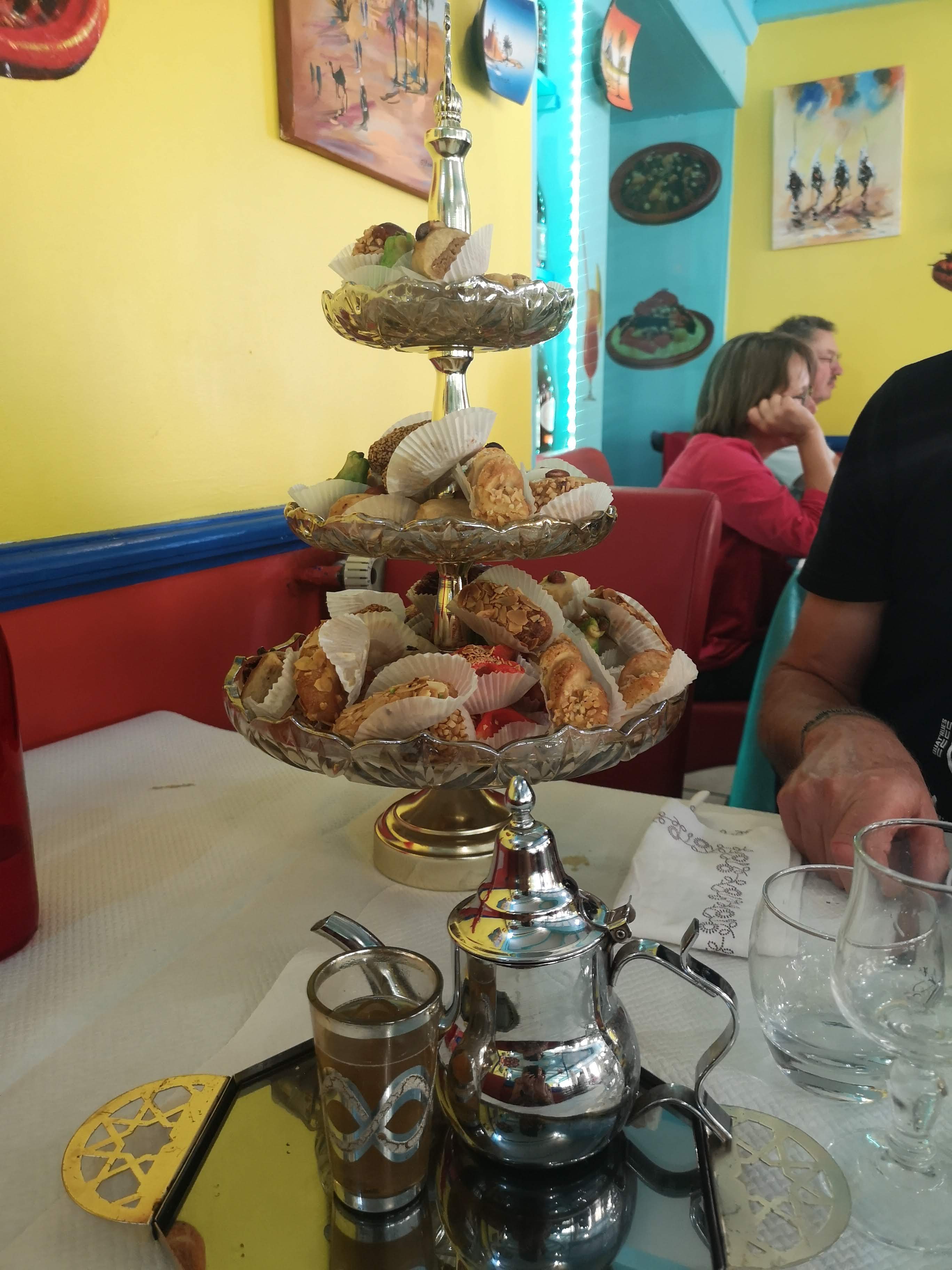 Les plats copieux comme là-bas, un service au top avec le serveur en habit traditionnel. Un thé à la menthe servi à l'ancienne. Nous recommandons