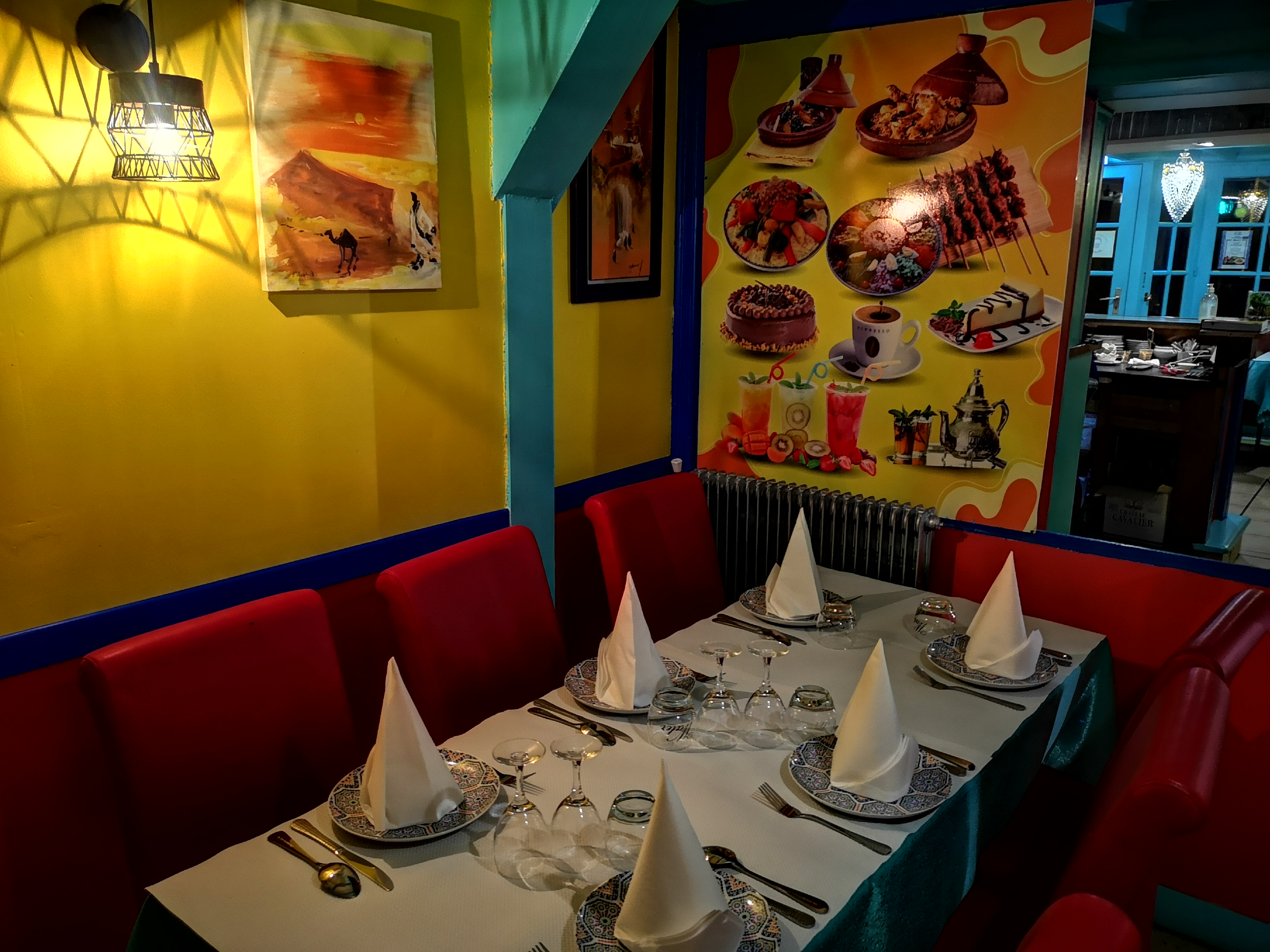 Que dire que ça fais tellement plaisir de savoir un vrai restaurant marocain avec un couscous délicieux et une tajine succulente Déco simple et joyeuse merci à ce monsieur pour sa gentillesse et au cuisinier !