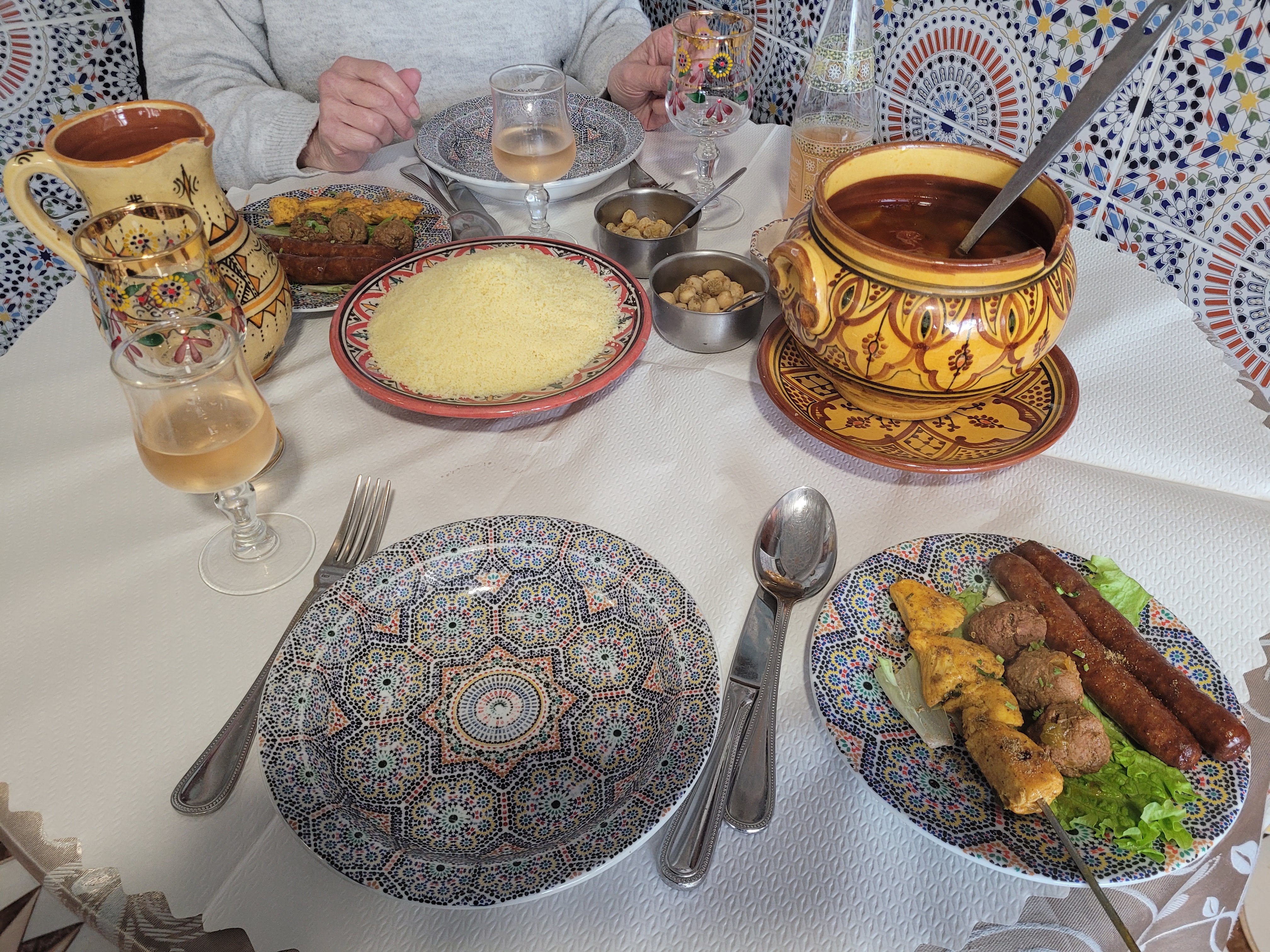 Accueil et service très aimable et discret. Excellents couscous royal et tagine Maison. Plats copieux. Prix très raisonnables. Déco agreable. Très belles pâtisseries , délicieuses .!!! Une experience bien sympathique ... A refaire!