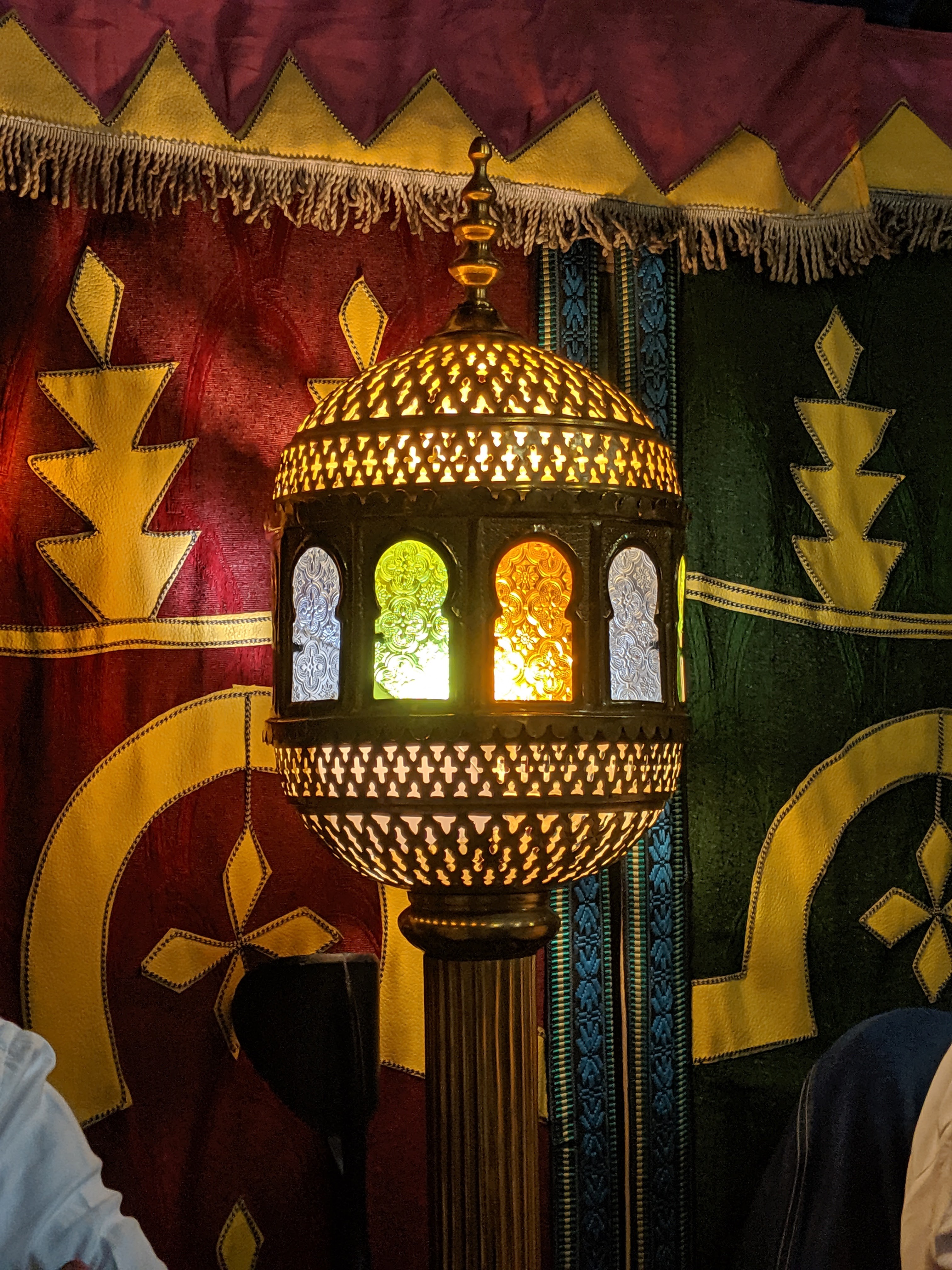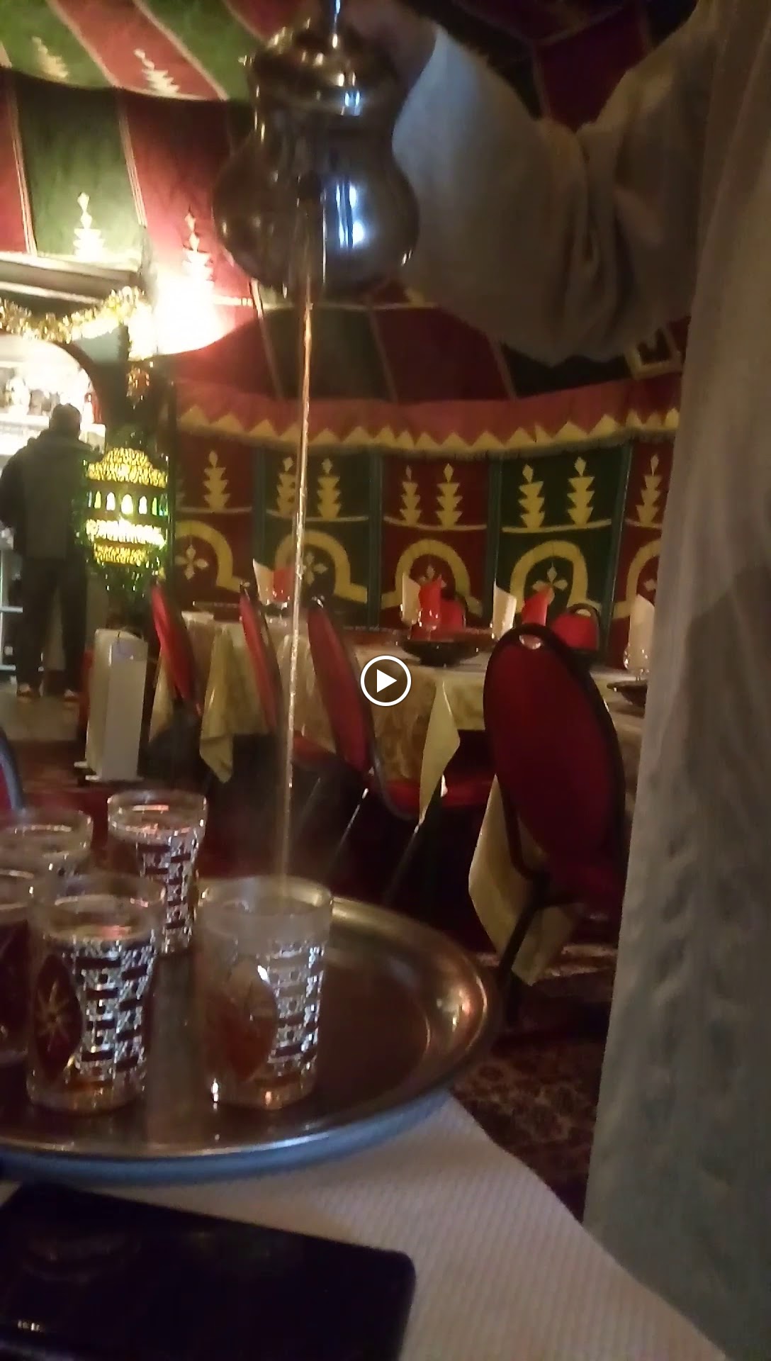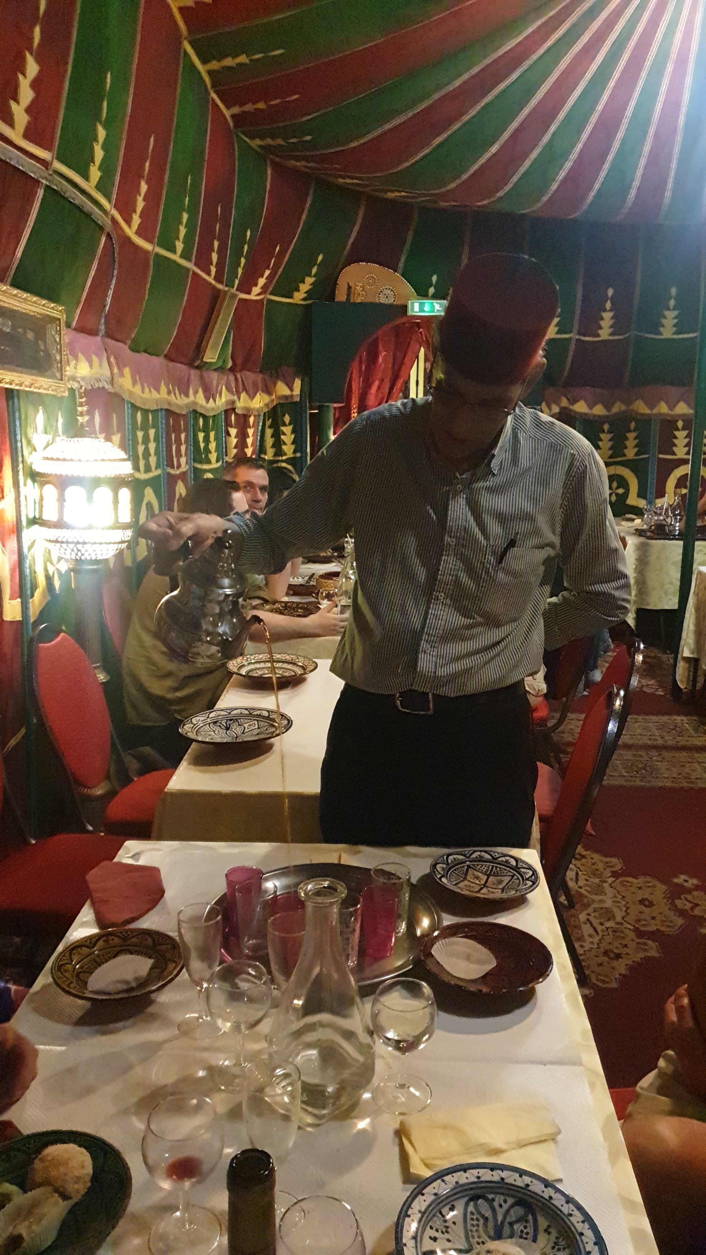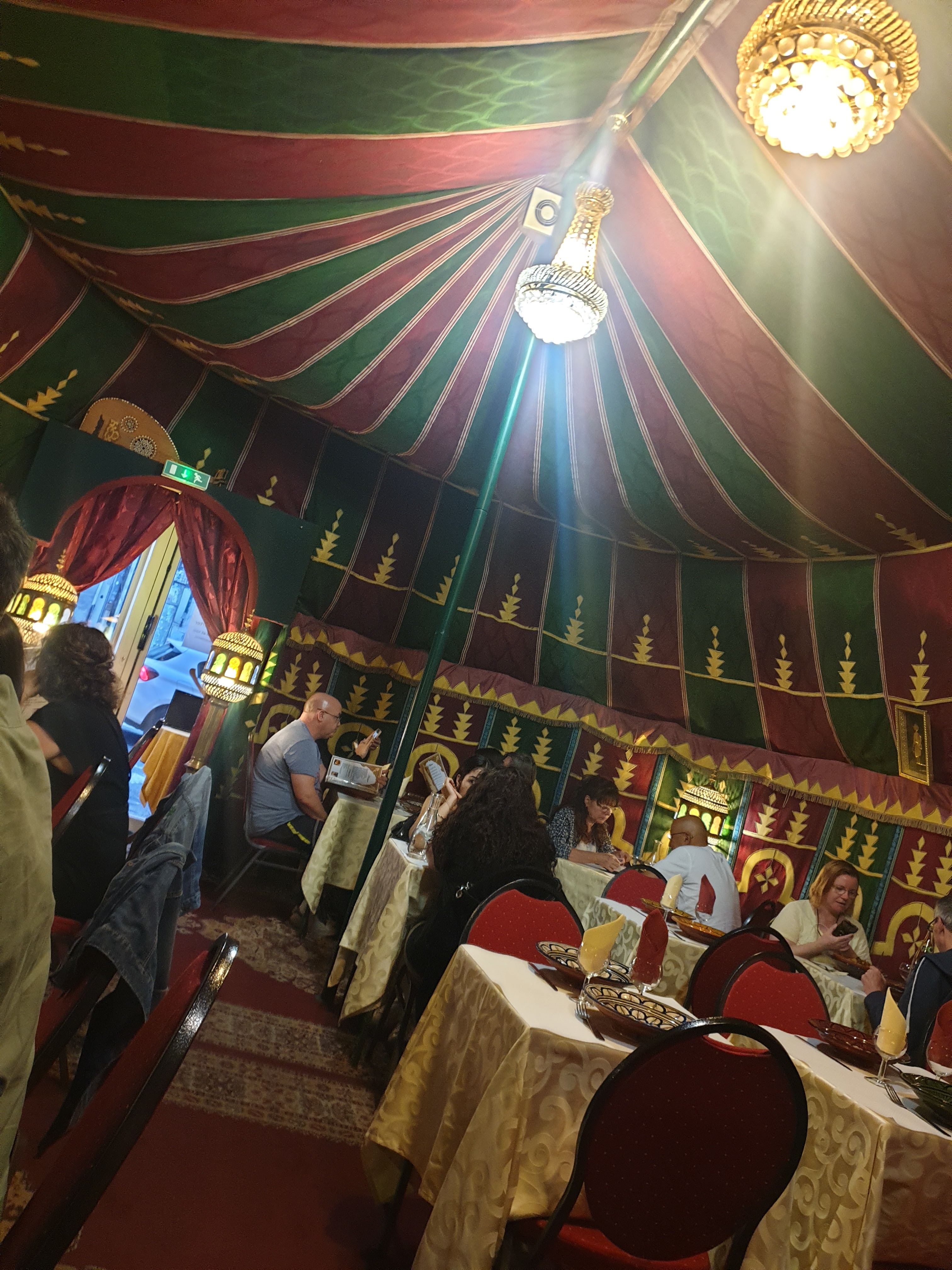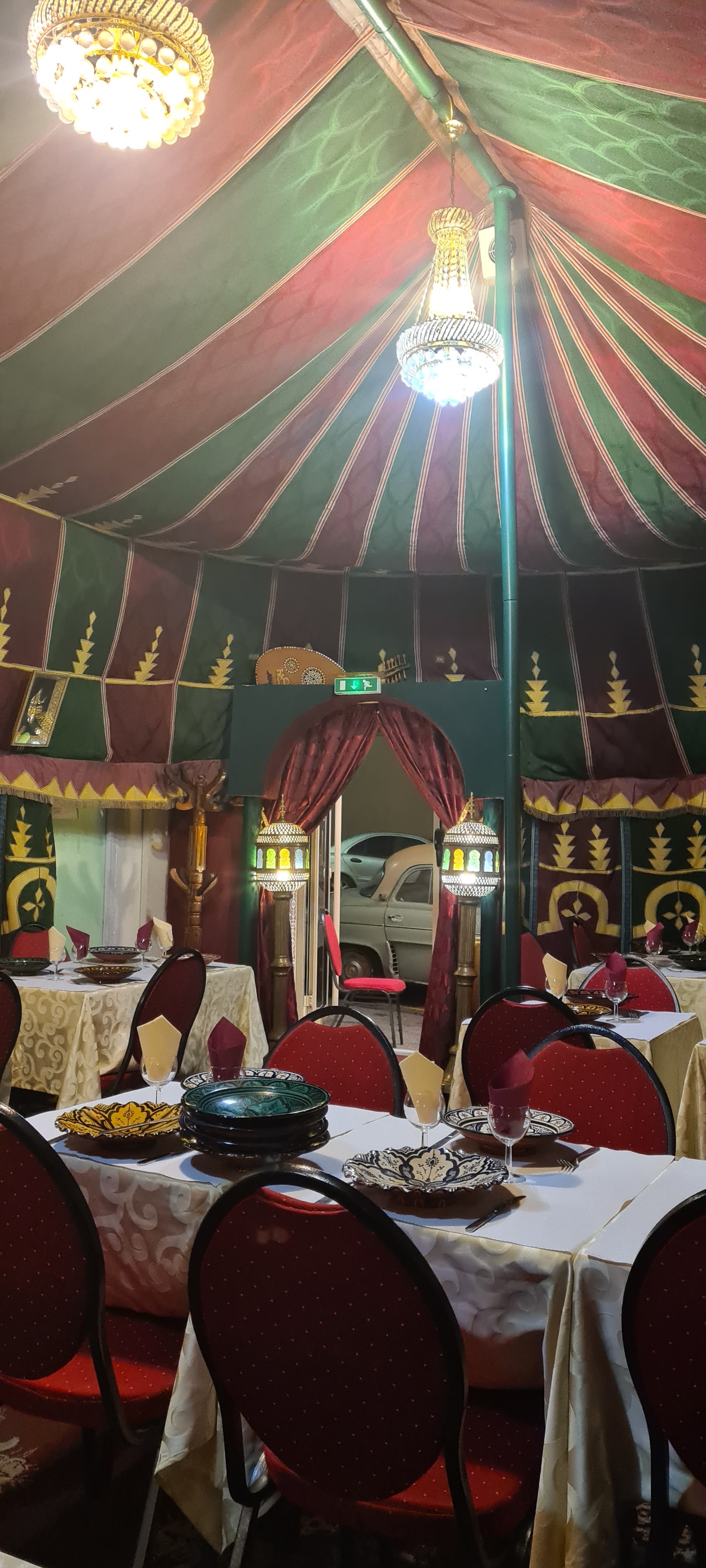1 restaurant magique grâce à son contexte. La nourriture est délicieuse et généreusement servi. Le décor est inoubliable, même la vaisselle, on se croit vraiment au Maroc. A essayé en couple ou entre amis, vous ne serez pas déçu ! Dépaysement garanti. 1 régal pour les yeux et les papilles !