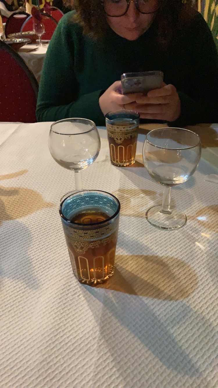 Couscous royal et tajine d'agneau tout simplement délicieux! Citrons et oranges givrés en dessert fabuleuse et thé à ma menthe pour clore ce magnifique repas! Personnel adorable et très convivial 😊 Je ne vous parle même pas du décor: DE-PAY-SE-MENT TOTAL! Comme si nous etions dans une vraie tente berbère au milieu du Sahara et la vaisselle est juste sublime! Nous reviendrons c'est certain!