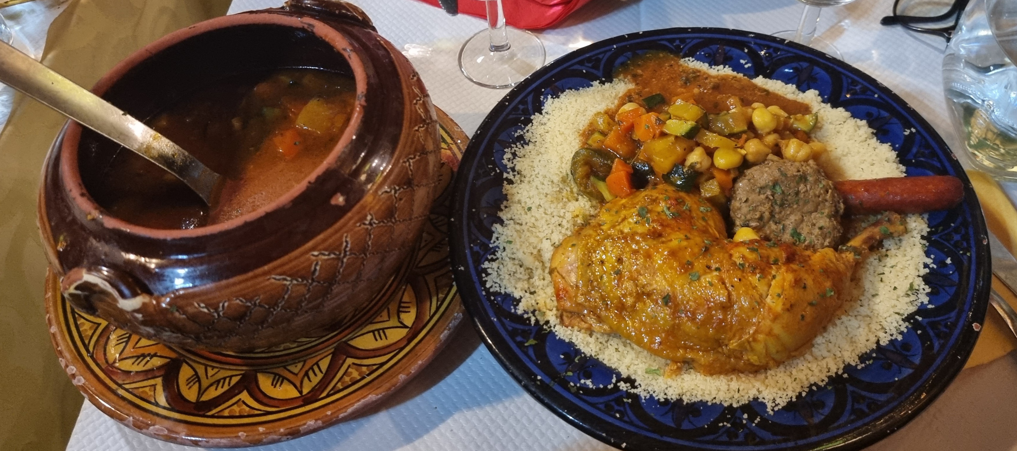 Une première dans ce restaurant le couscous tajine avec plusieurs choix de viandes: poulet , agneau etc le service et très bien ,le thé a la menthe bien pas trop sucré.
