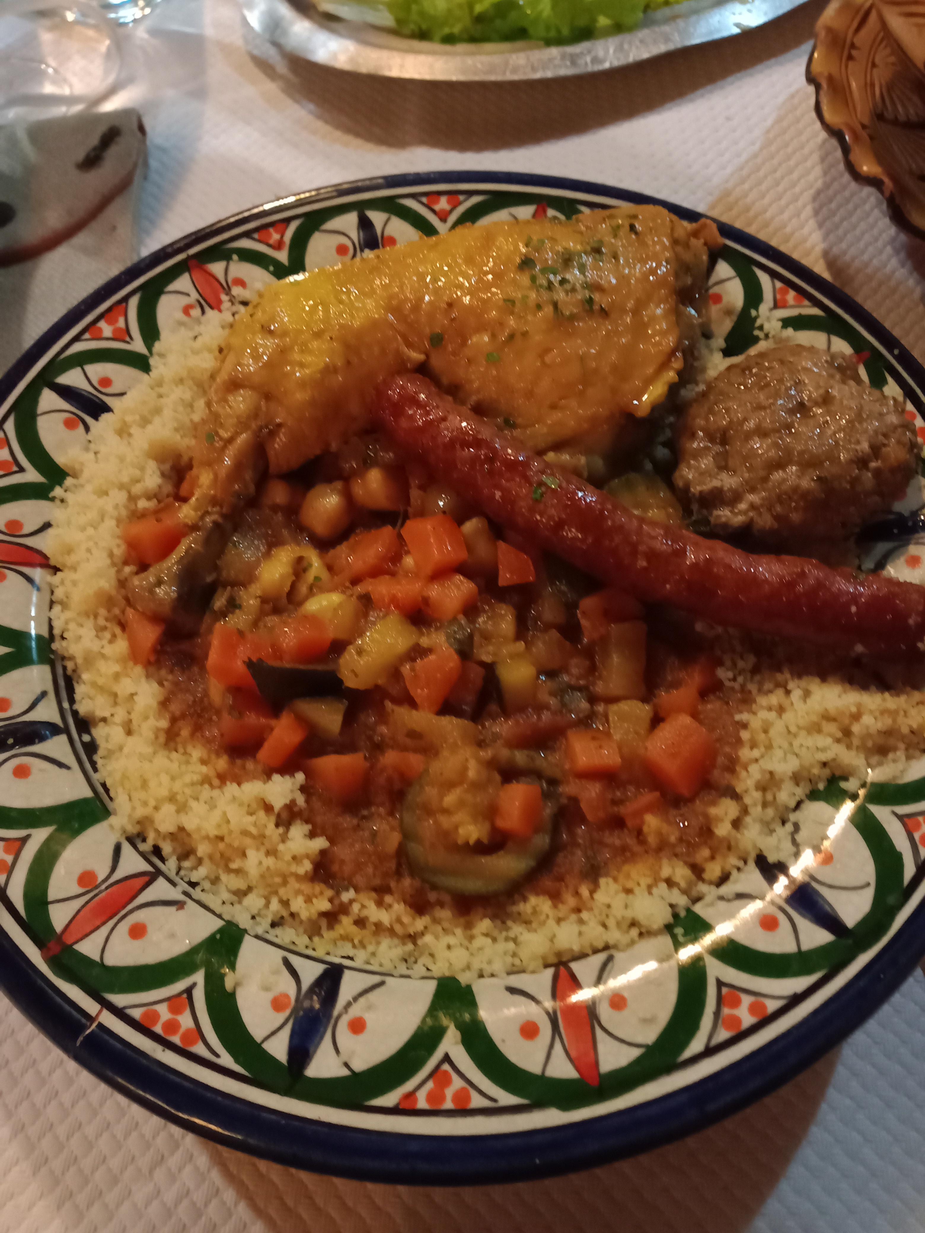 Que de superlatifs à utiliser pour décrire cet endroit . Le cadre , extraordinaire . 1 peu serré au début, mais tellement vite oublié tant on se sent bien . Le personnel , incroyable de politesse , d'écoute et surtout d'une gentillesse et d'une affection hors du commun . Les couscous ( pas essayé les tajines encore , mais ce n'est que partie remise) démontrent pourquoi ils sont et resteront les meilleurs de la ville . Merci à vous pour cette excellente soirée.