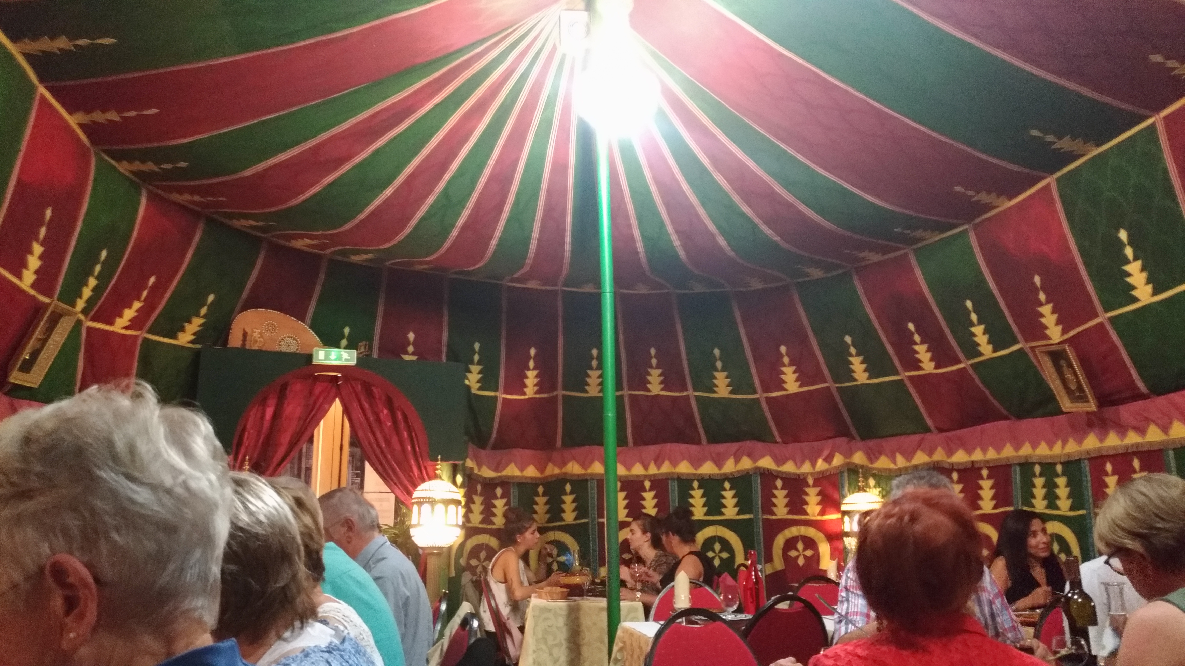 Excellent endroit que je recommande vivement. Le dépaysement est assuré. L'effet de surprise est garanti: c'est une vraie tente ! Tout est chaleureux et coloré. Les hôtes sont d'une extrême gentillesse. Nous étions 10 copines. Tout le monde a été servi en même temps. Le repas était savoureux et copieux, coucous ou tajines. Les toilettes étaient propres, à l'entrée, en dehors de la tente, à peine visibles. Ce fut un moment convivial et restera un excellent souvenir. O