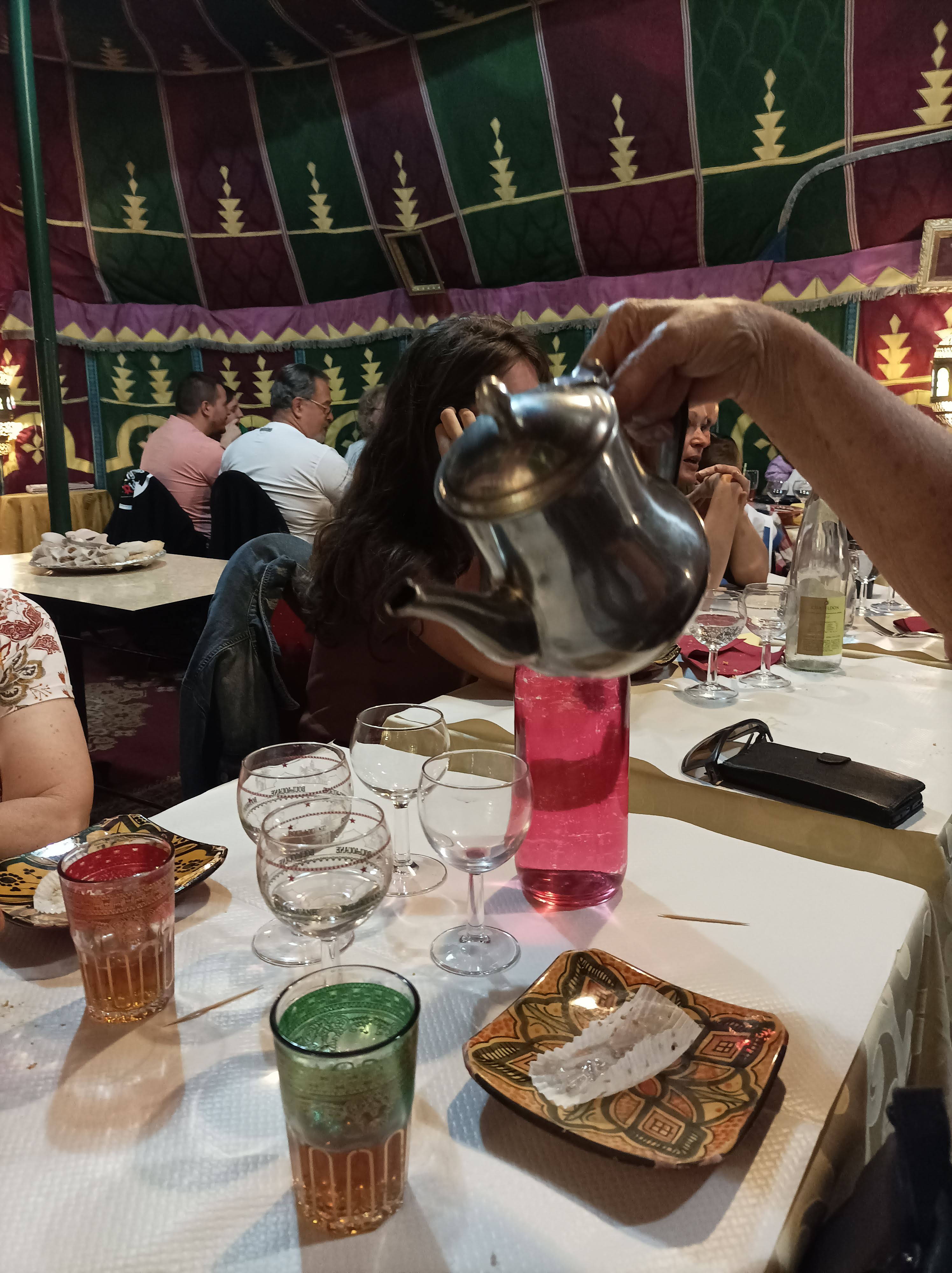 ,bonjour fiston Tous nos clients le savent, Couscous sauce légumes à volenter ,sans un centimes de plus ,tu fais le plein au même pris, Le thé à la menthe, le client il paie 1 verre c'est tout, et le reste à volenter, Vraiment restaurant la tente Berbère est généreuse, nos vrais clients le savent. Merçi.