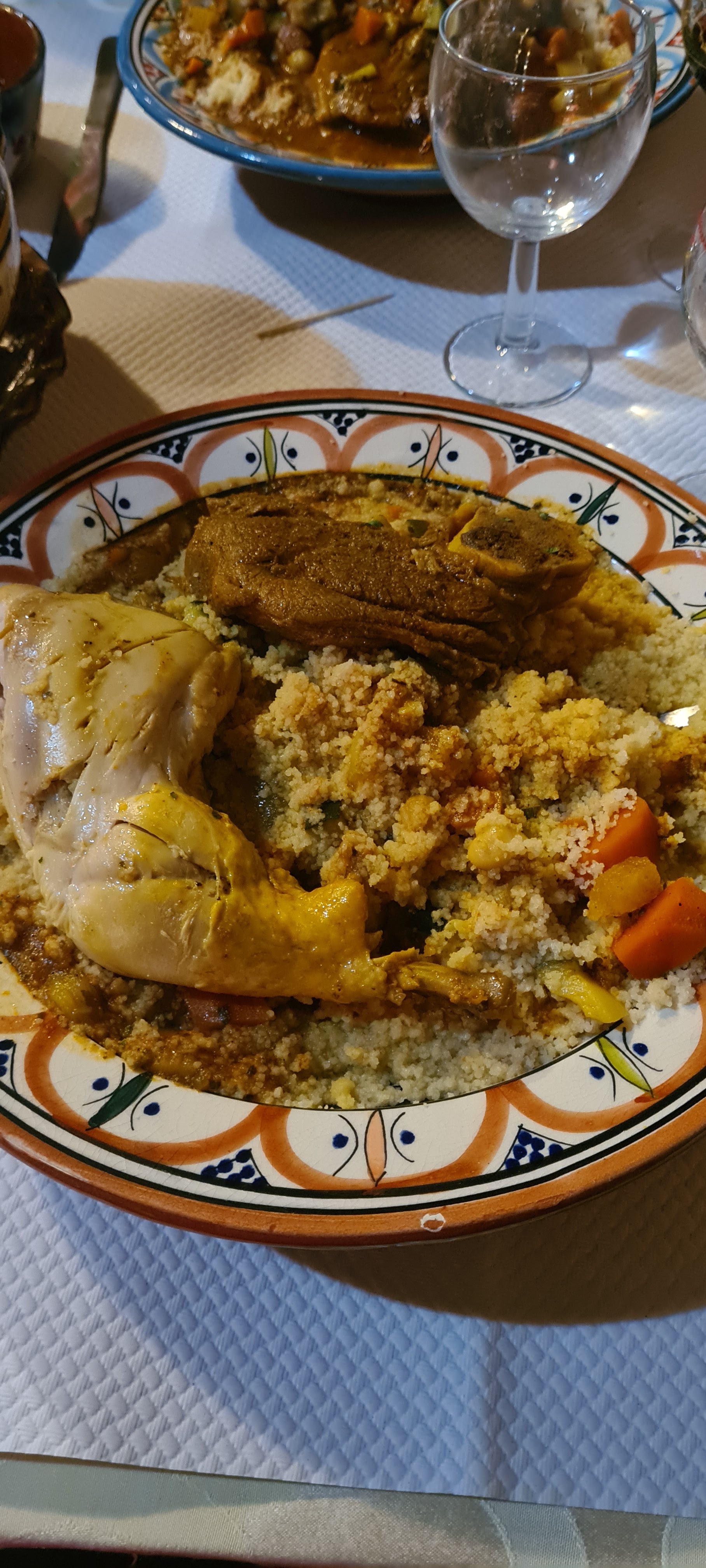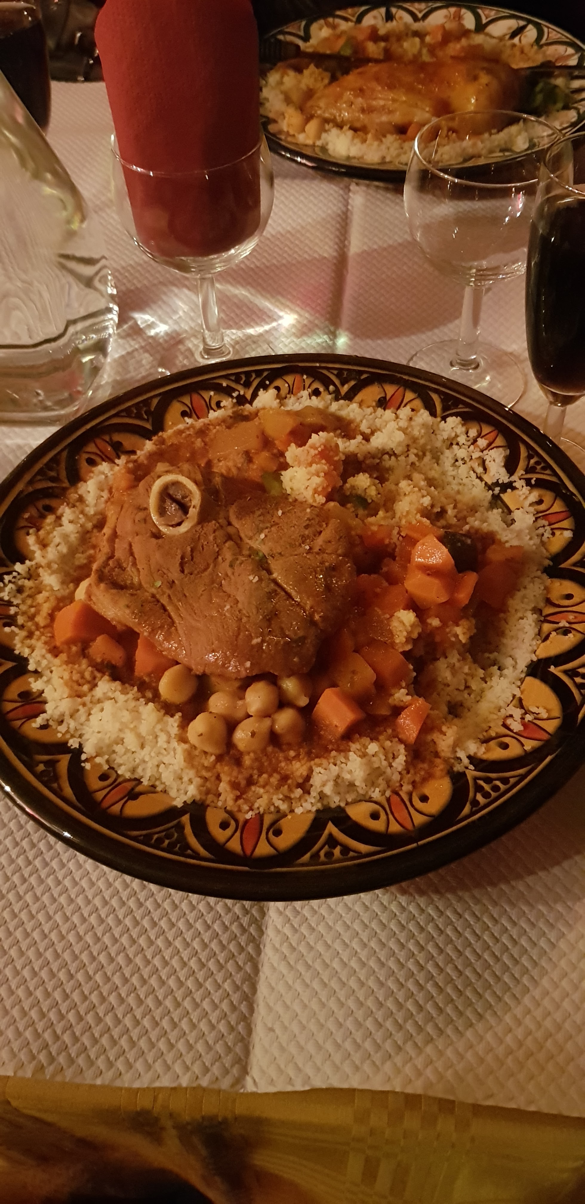 Un moment incroyable passé dans ce restaurant si atypique. Attention ! Couscous royal seulement pour les plus déterminés mais aussi les plus gourmands !! Les quantités sont dingues Merci à tous le personnel pour sa sympathie et au(x) cuisinier(s) et à bientôt. Pour avoir testé leur tajine à emporter vous aurez de quoi faire pour plusieurs repas...